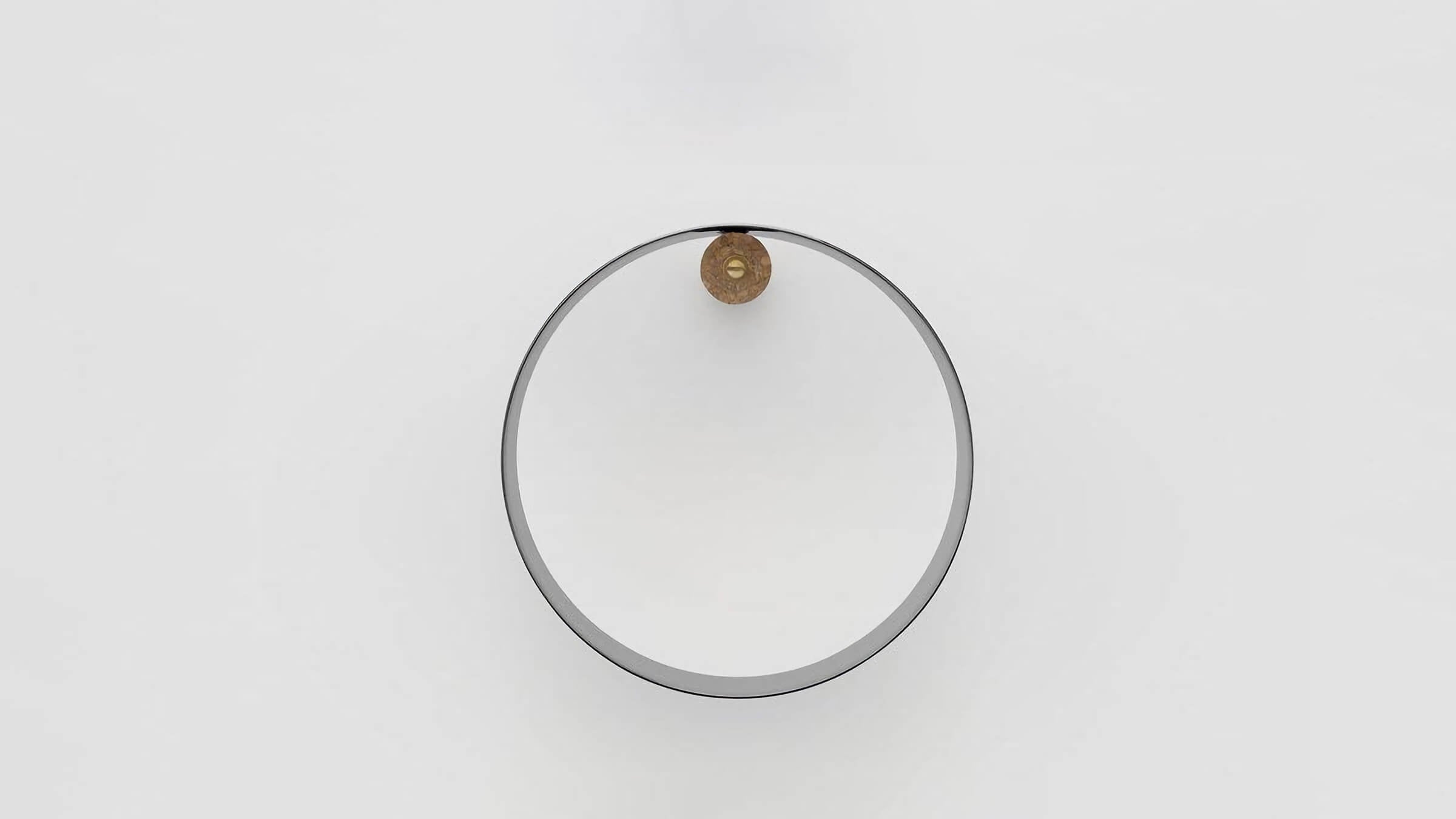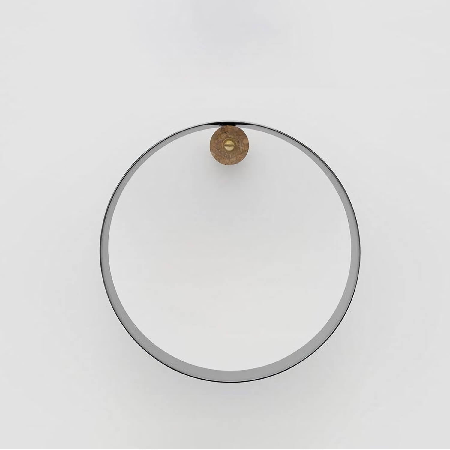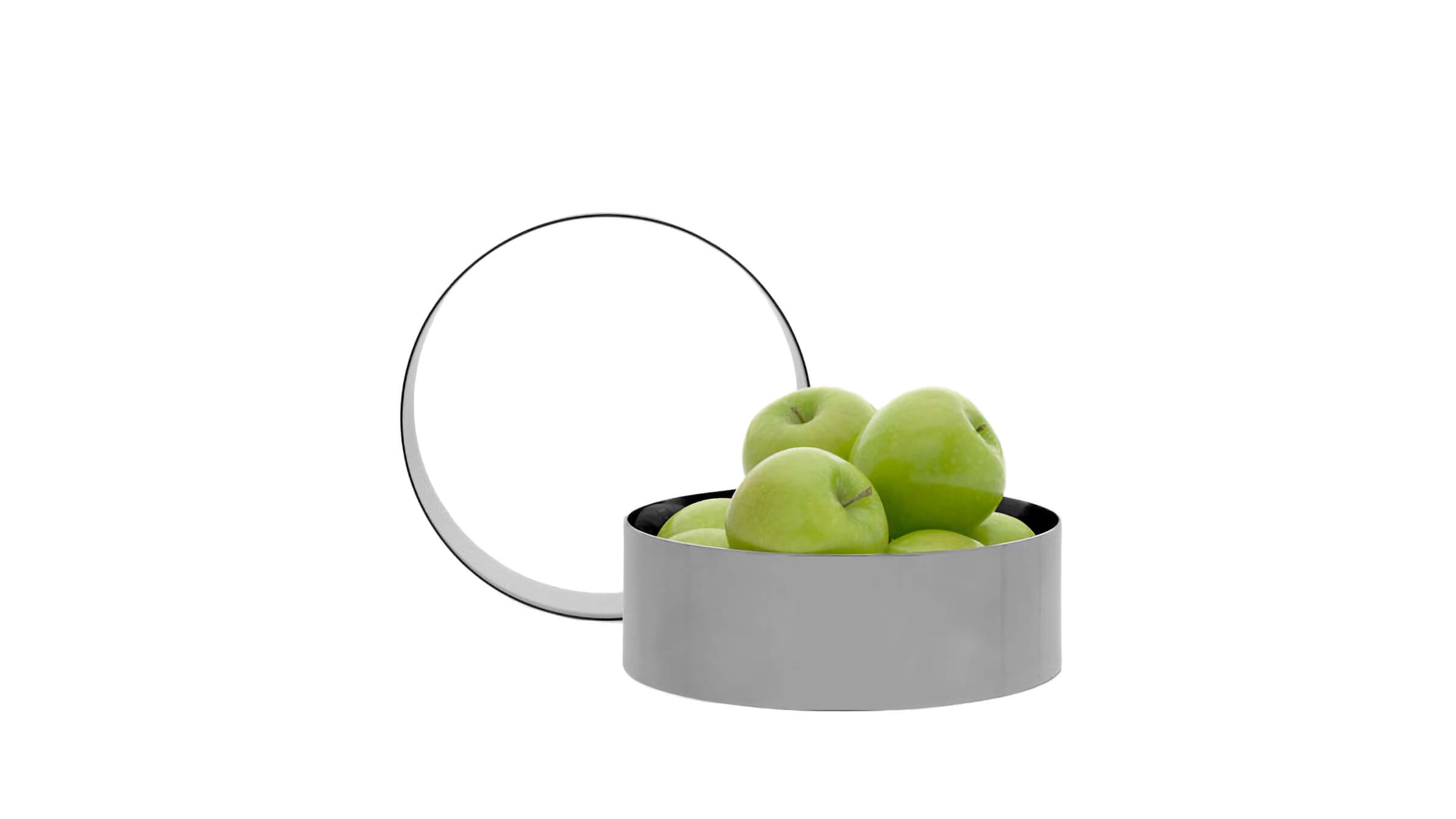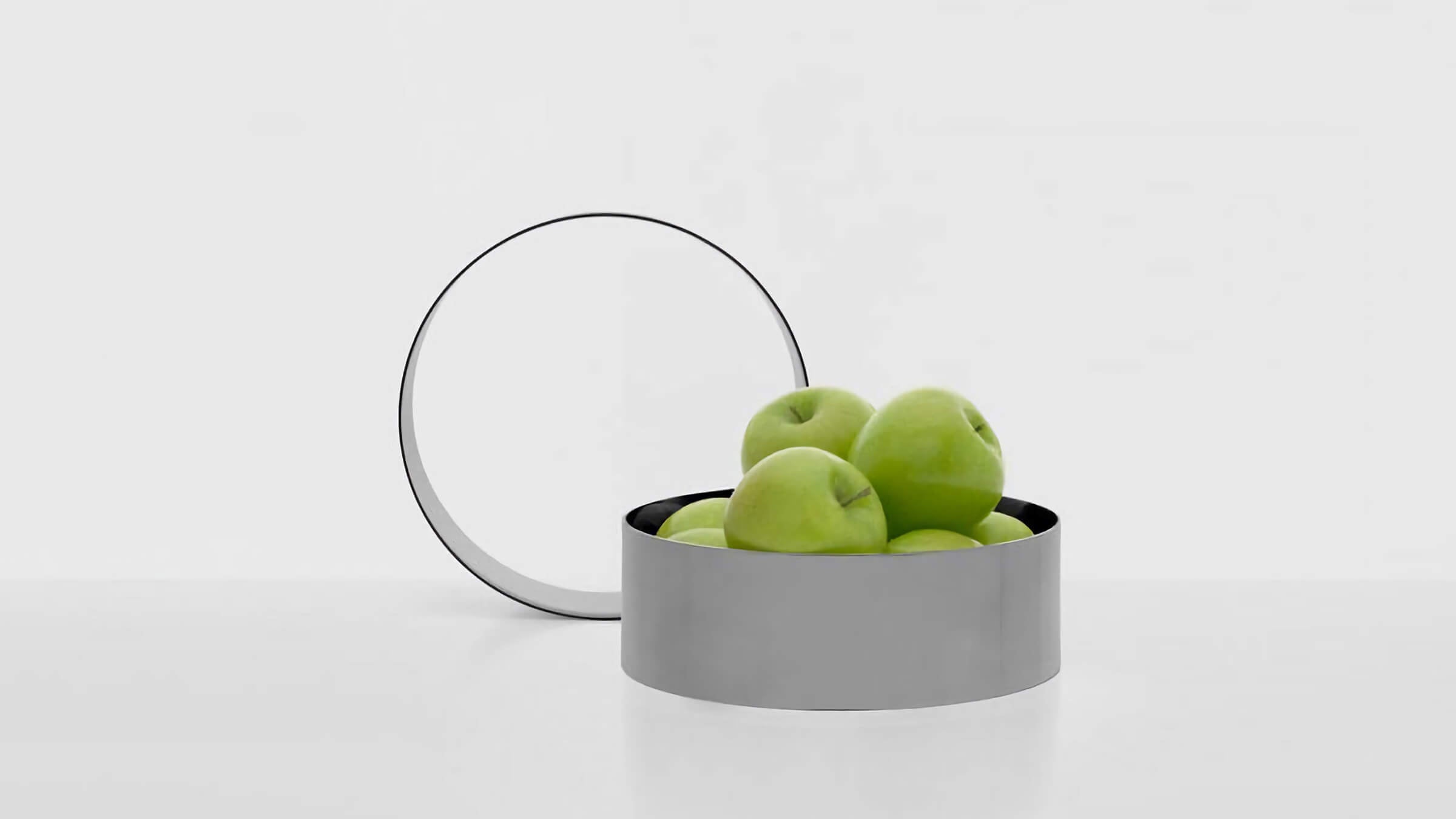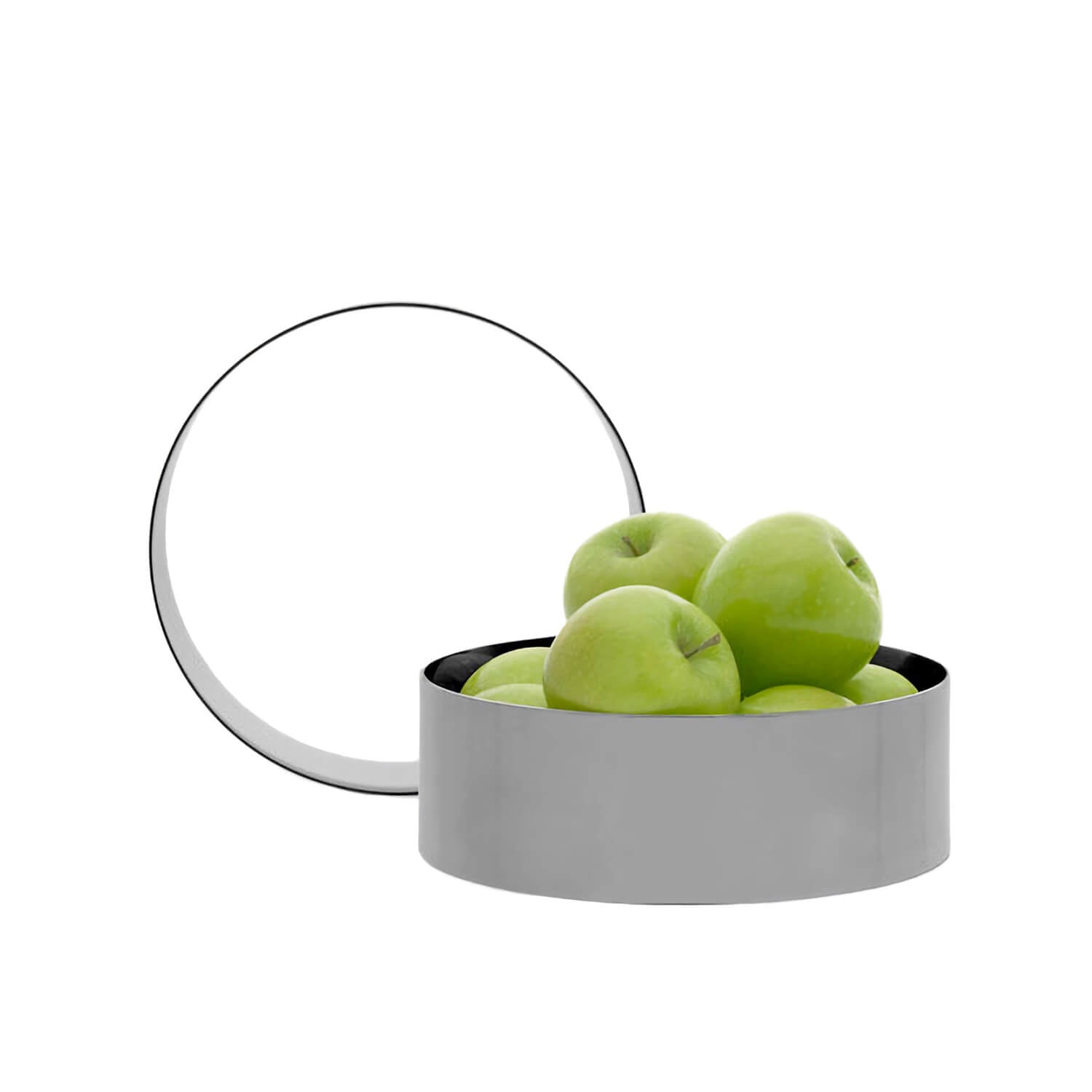 A seamless ring of solid spun brass, Minimalux's Black Band Centerpiece is an object reduced to its utmost essence. This striking centerpiece "fences" in fruit and vegetables when placed on the table.