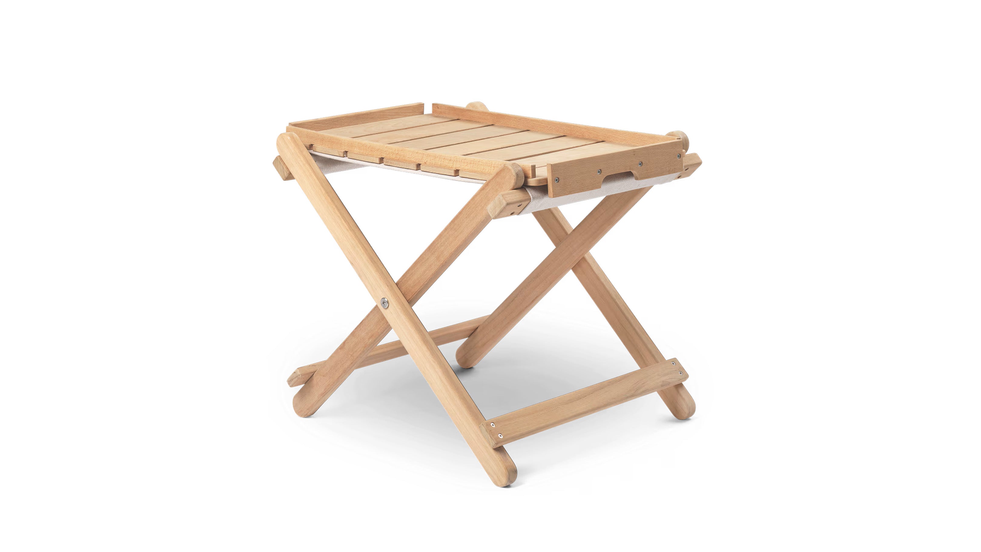 The BM5768 Deck Chair Footstool, designed by Børge Mogensen for Carl Hansen & Søn, is a thoughtfully crafted companion piece that enhances outdoor relaxation. Constructed from untreated, FSC®-certified teak, it features a clean, slatted frame paired with a weather-resistant cushion for added comfort. Designed to complement Mogensen’s iconic deck chairs, the footstool also functions beautifully on its own as a flexible seating or lounging option. Its timeless design and durable materials make it a stylish and practical addition to any outdoor setting.