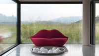 Bocca, the iconic red sofa shaped like giant lips, was born from a single private customer's request and has since graced the covers of dedicated magazines and found a home in the most unconventional houses worldwide, as well as renowned museums. Inspired by Dalì's 1935 Portrait of Mae West and the luscious lips of Hollywood stars, Studio 65 architects created a masterpiece with a pop DNA, sensual allure, and a touch of provocation. Bocca is a sought-after and imitated gem of home furniture, with the 1970 original exclusively by Gufram, its natural beauty reflected in the subtle asymmetry of its corners, mirroring the uniqueness of human lips.