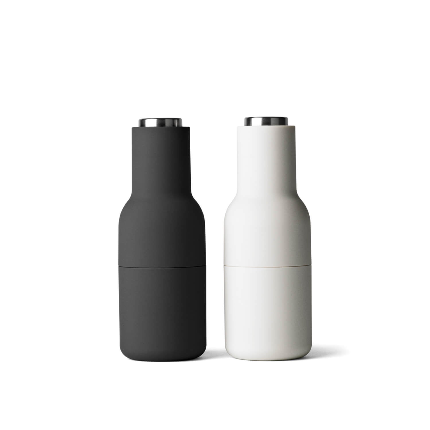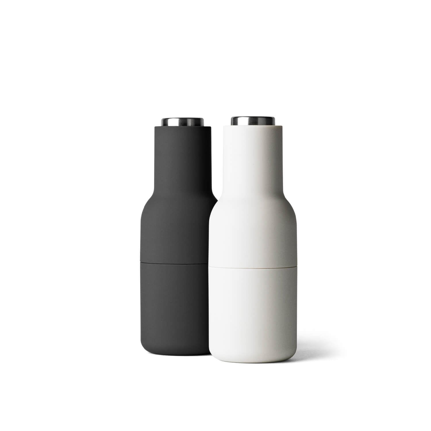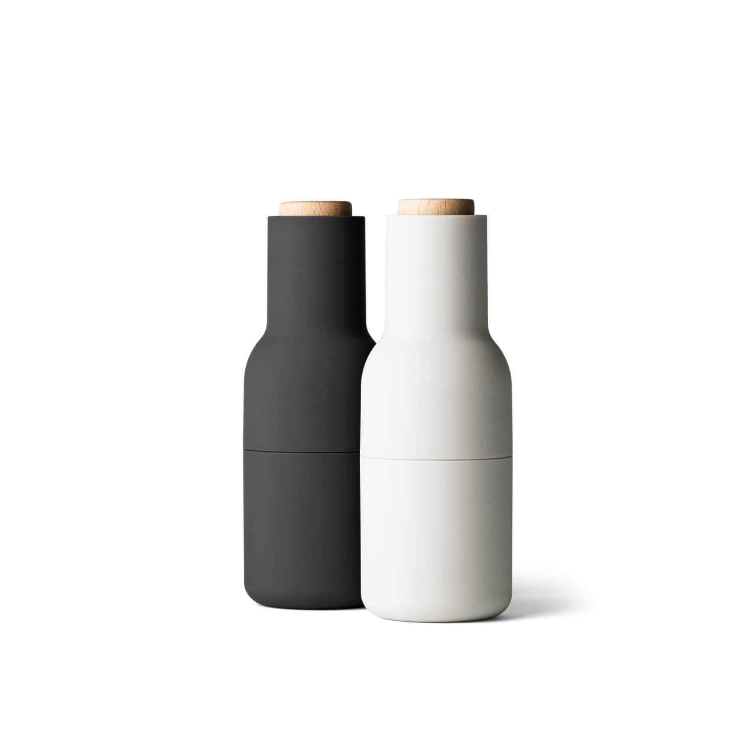 The minimal grinder form is universal, but with the Bottle Grinder, Norm has turned it on its head: the ceramic salt or pepper grinder is located on the top and does not spill on the table. The Scandinavian design references the archetypal form of a water bottle.