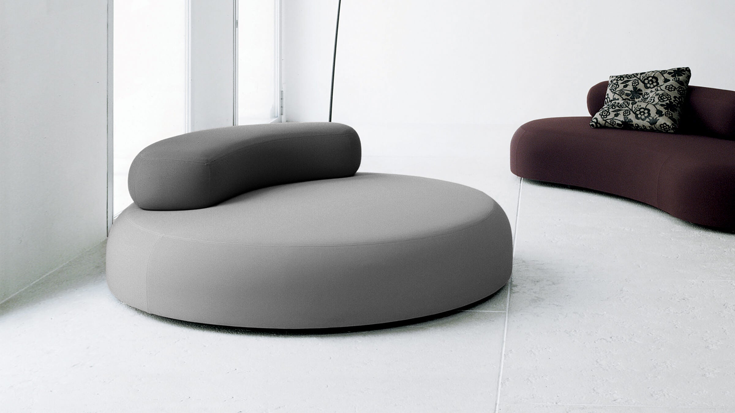 Not a sofa but instead an archipelago of seating and support surfaces. Beveled, asymmetrical and appealing shapes designed by Piero Lissoni as soft, padded islands to be used as required in every room in the home.