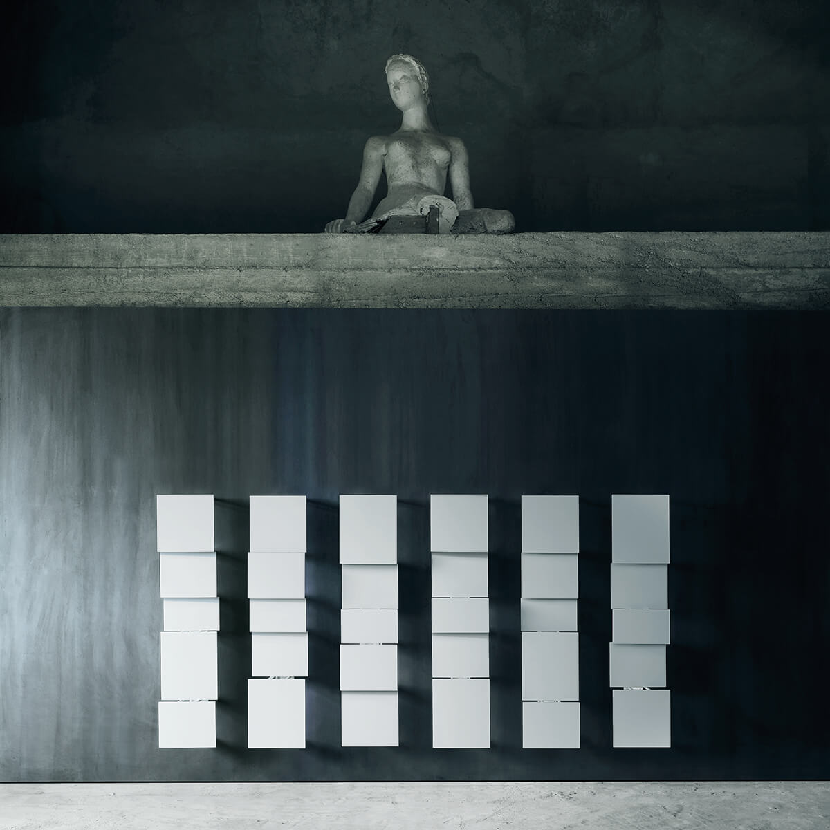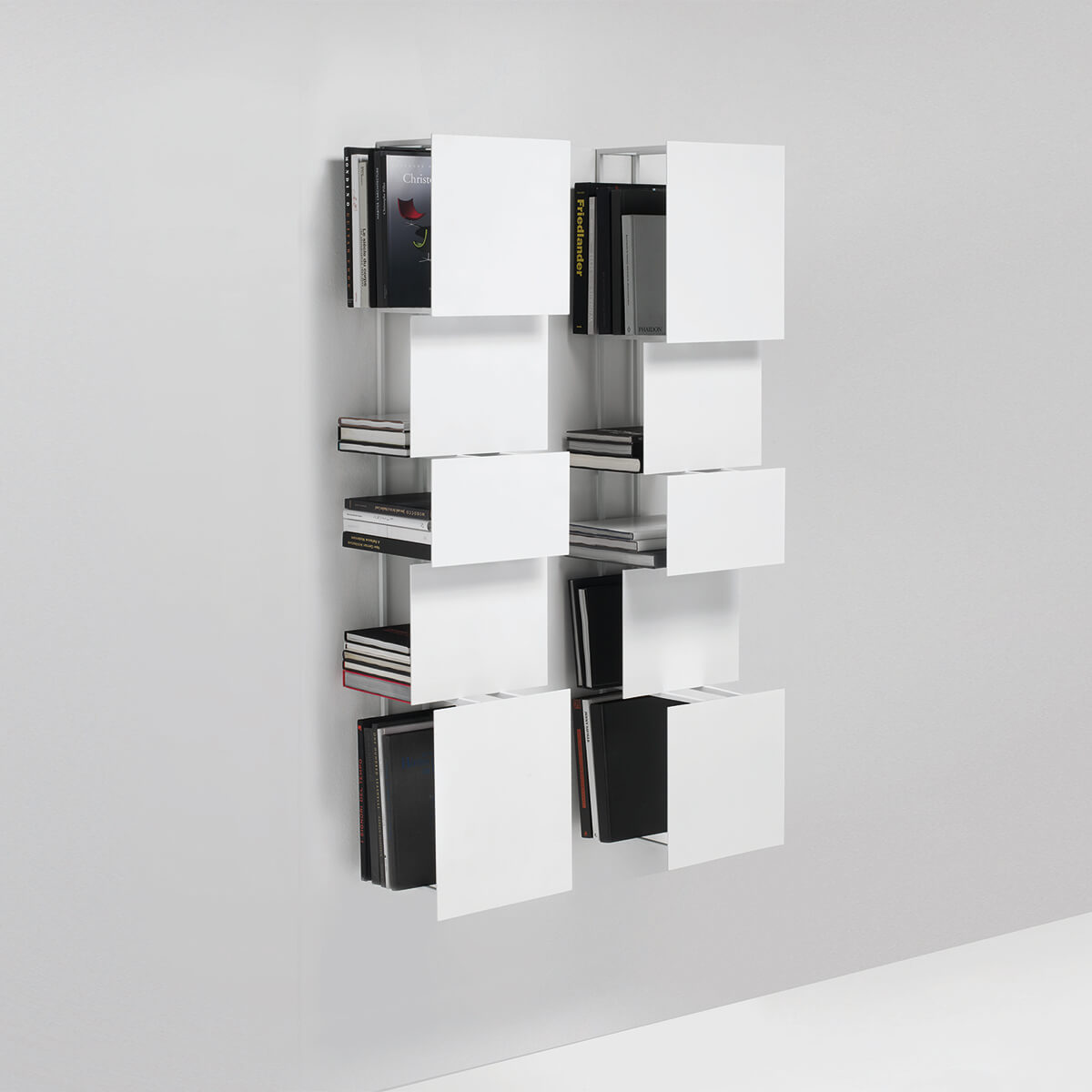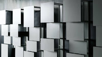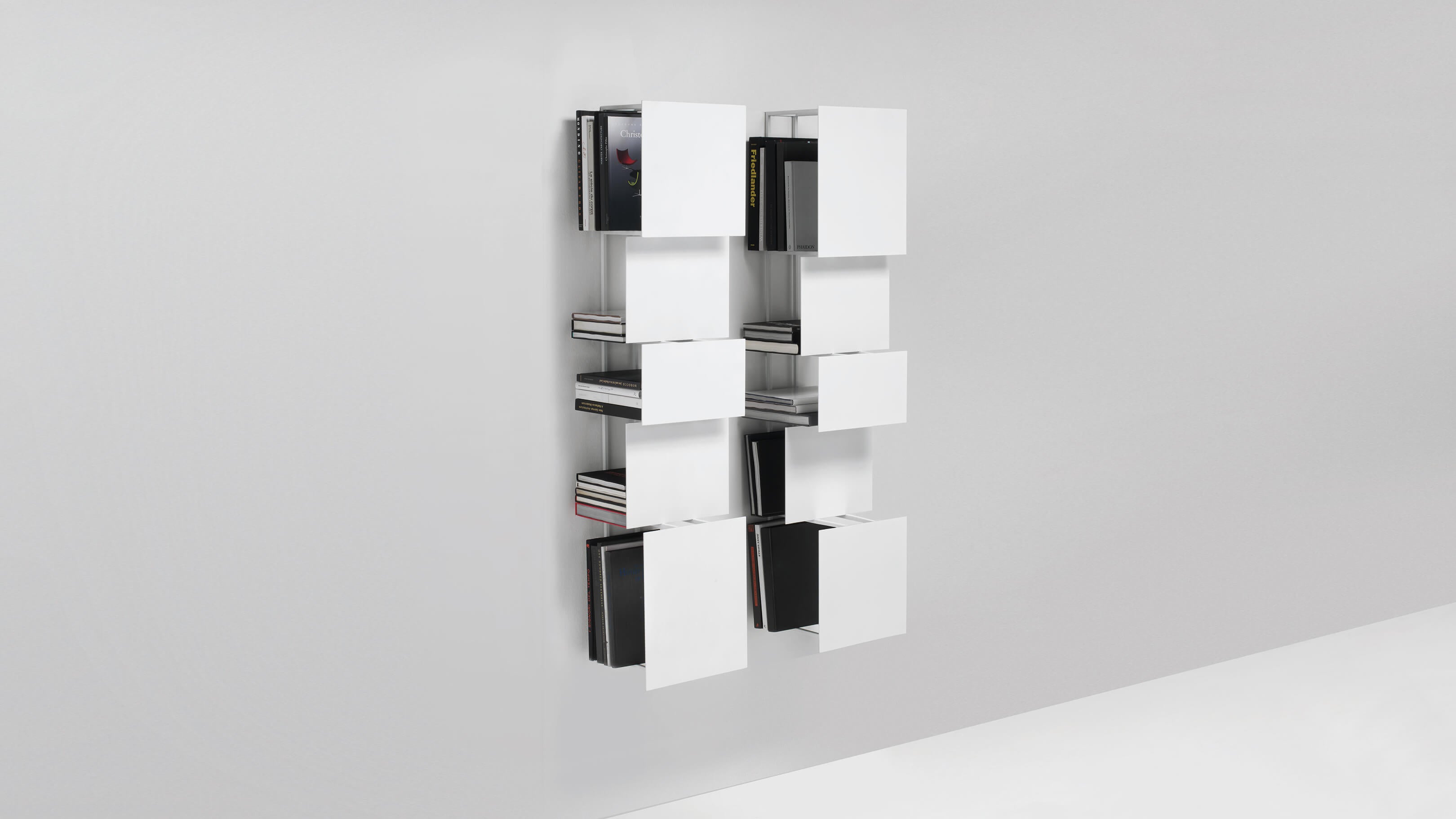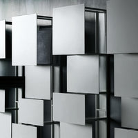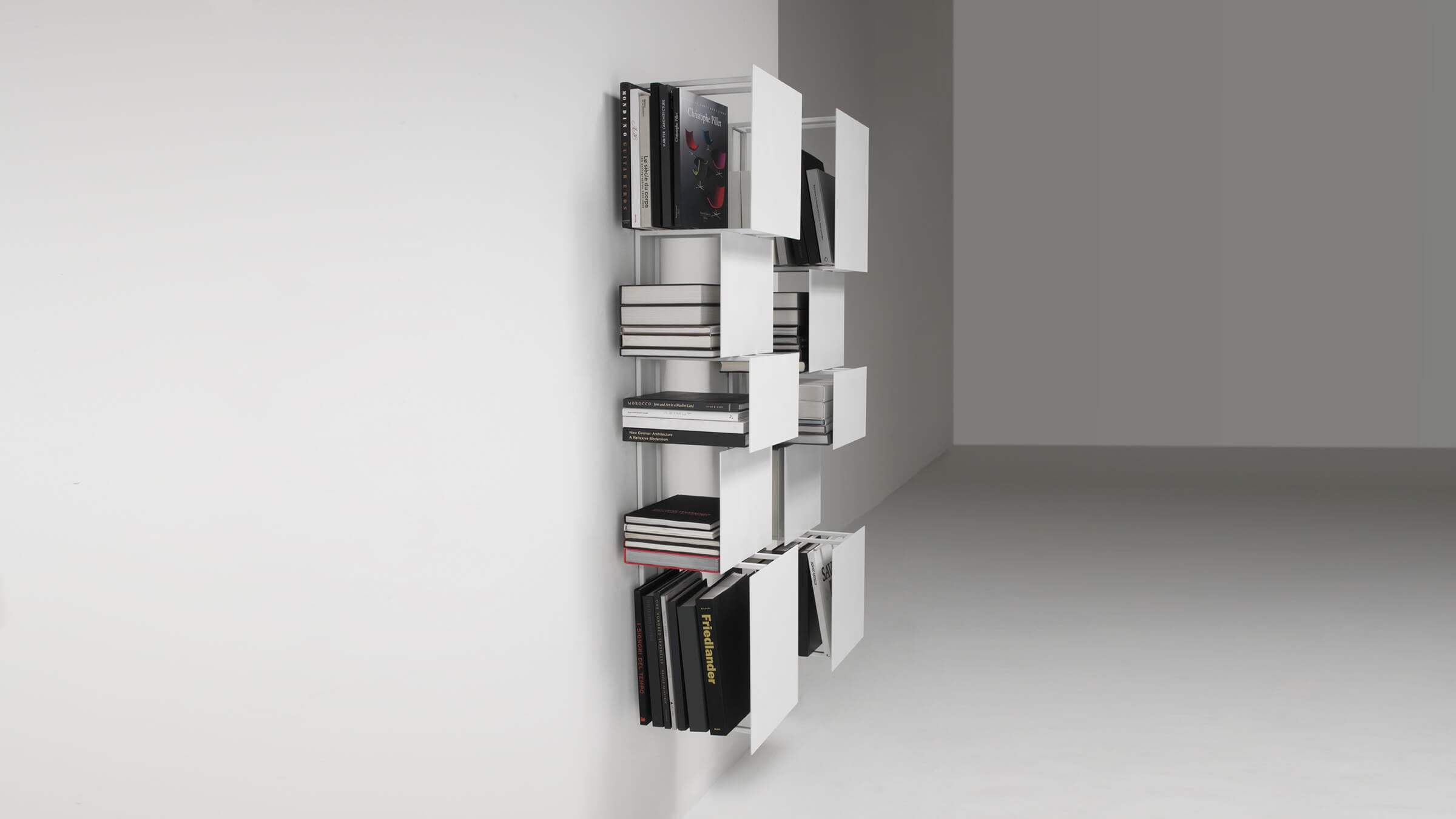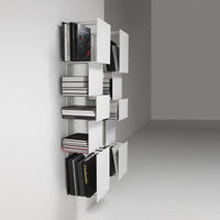 A highly sculptural alternative to typical bookcases, young designer Victor Vasiley's Bukva gives the impression of a work of art hanging on the wall thanks to its square, detached and tangent elements. Vasiley design for Living Divani serves as an opportunity to create a dynamic moving surface that breaks up the fixed image of the wall.