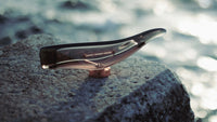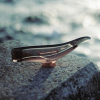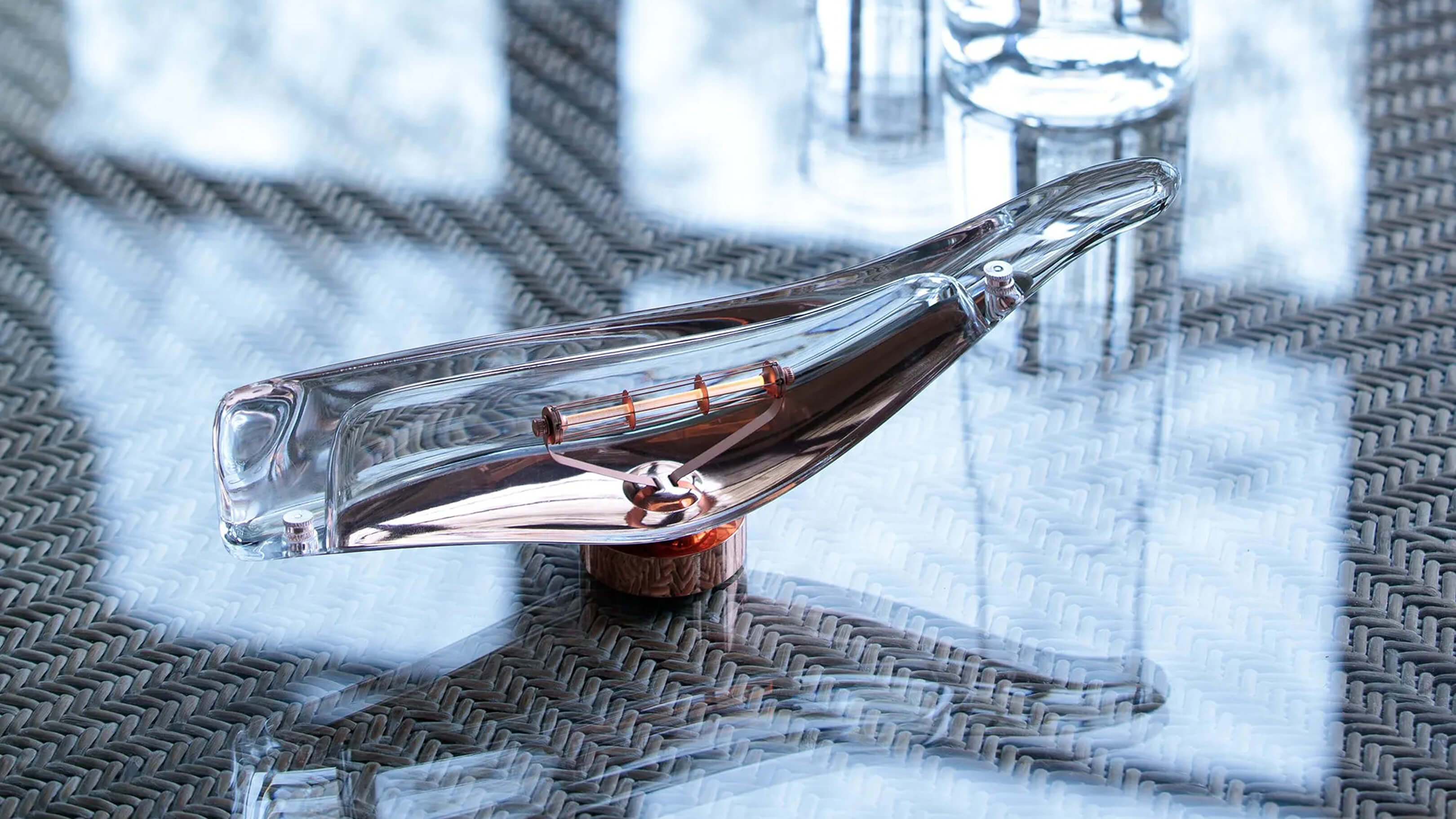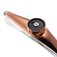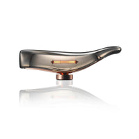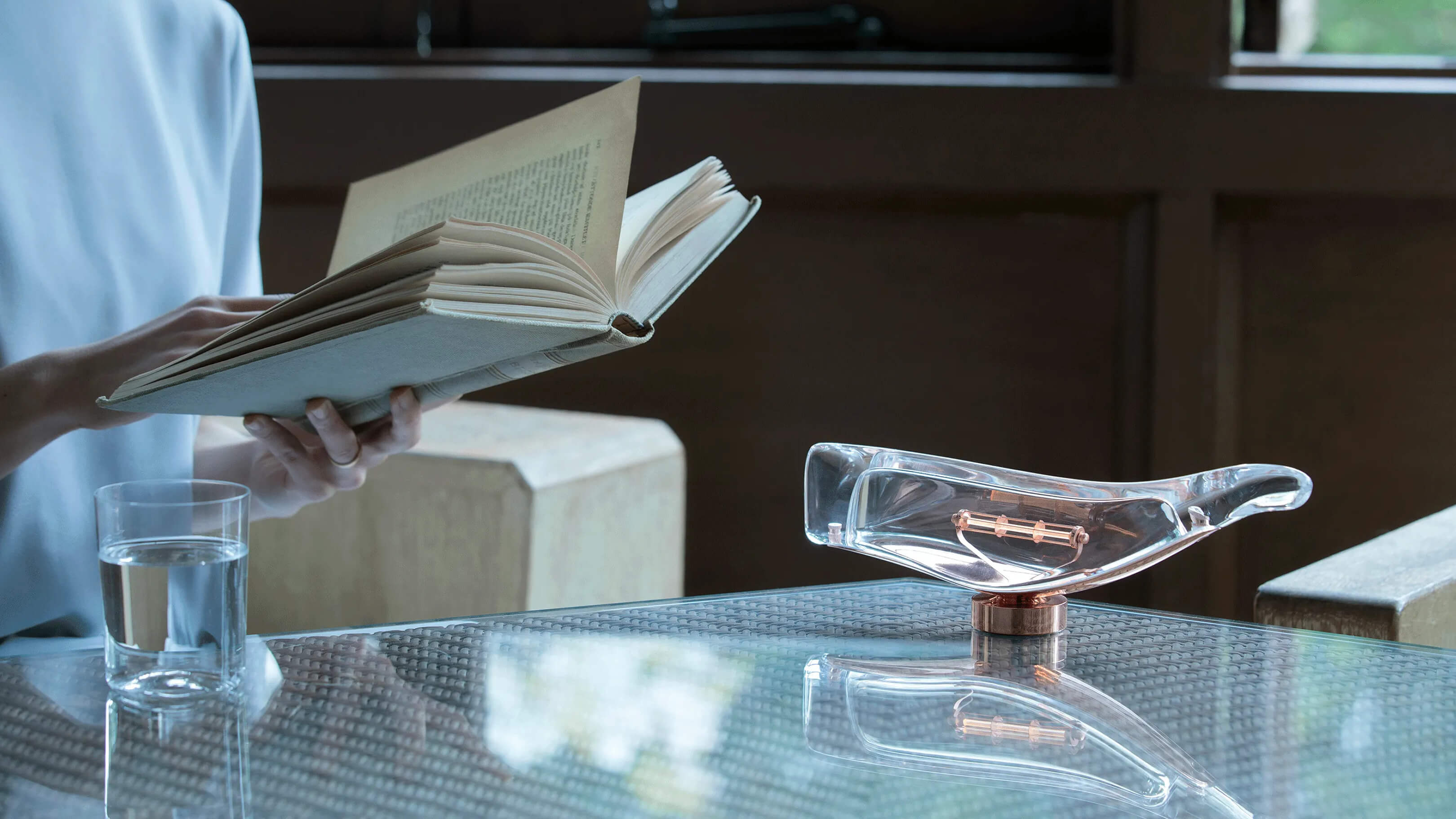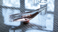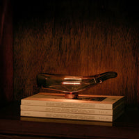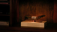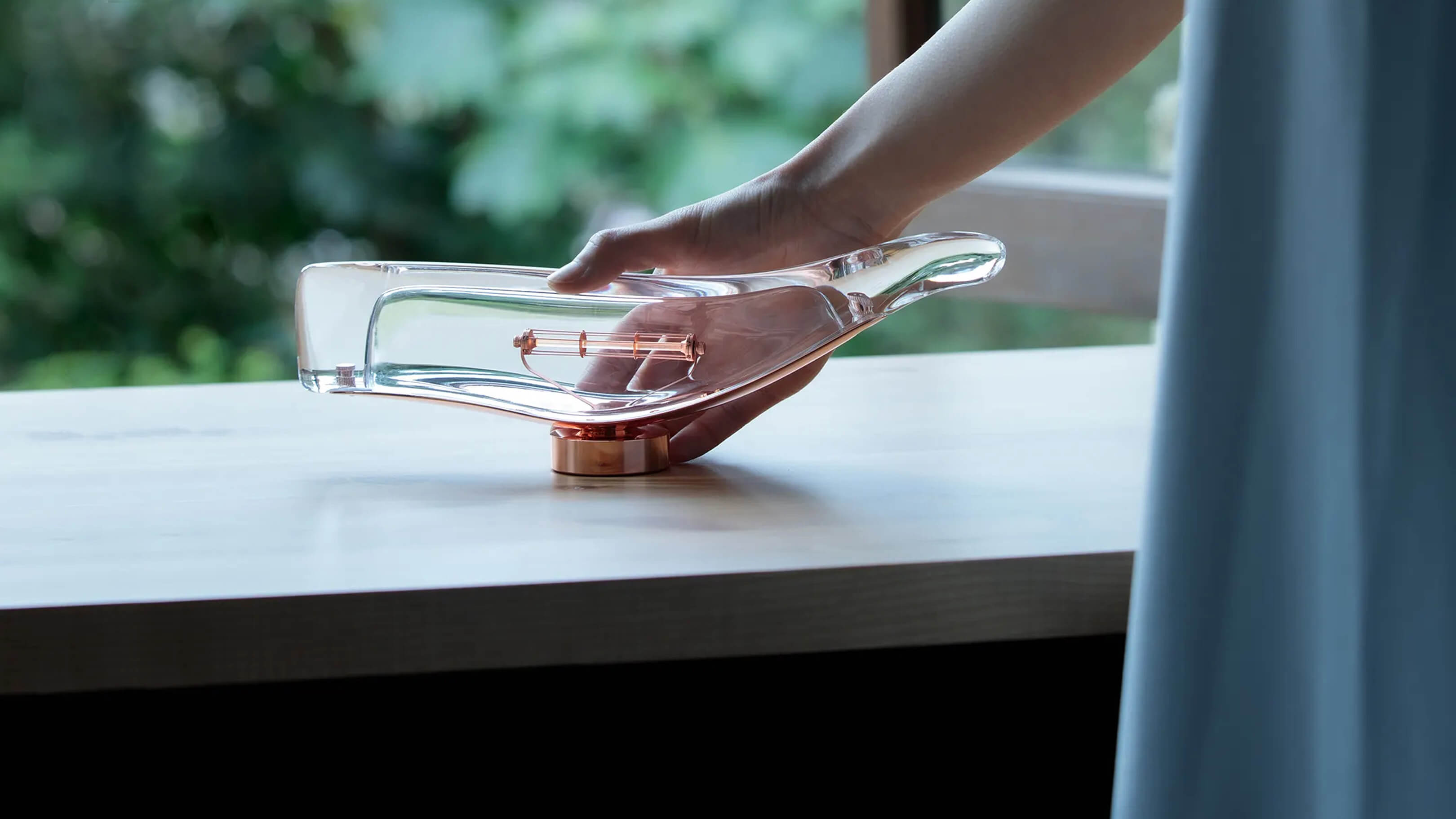 Portable, wireless, and rechargeable, these lamps appear restful and elegant sitting charmingly on a bedside table, on a bookshelf, to accompany a blissful meal at the dining table, or resting contentedly wherever a tender light is welcomed. With a base made of die-cast zinc with a warm copper finish, and a shade made of enduring acrylic in clear or dark grey, the Cachalot is visually arresting and emotionally comforting, an inviting addition to any room where sensuous congeniality meets modern charm.