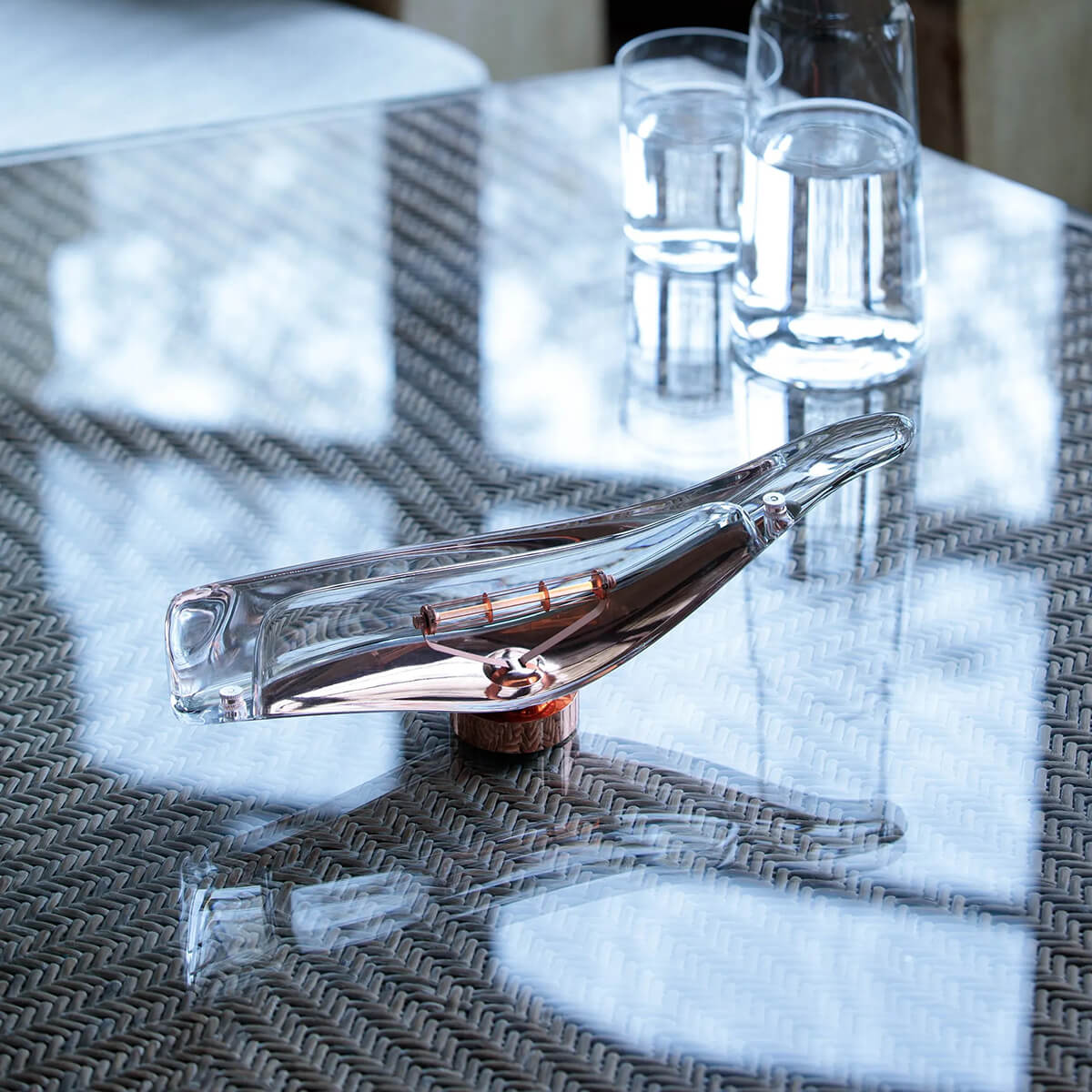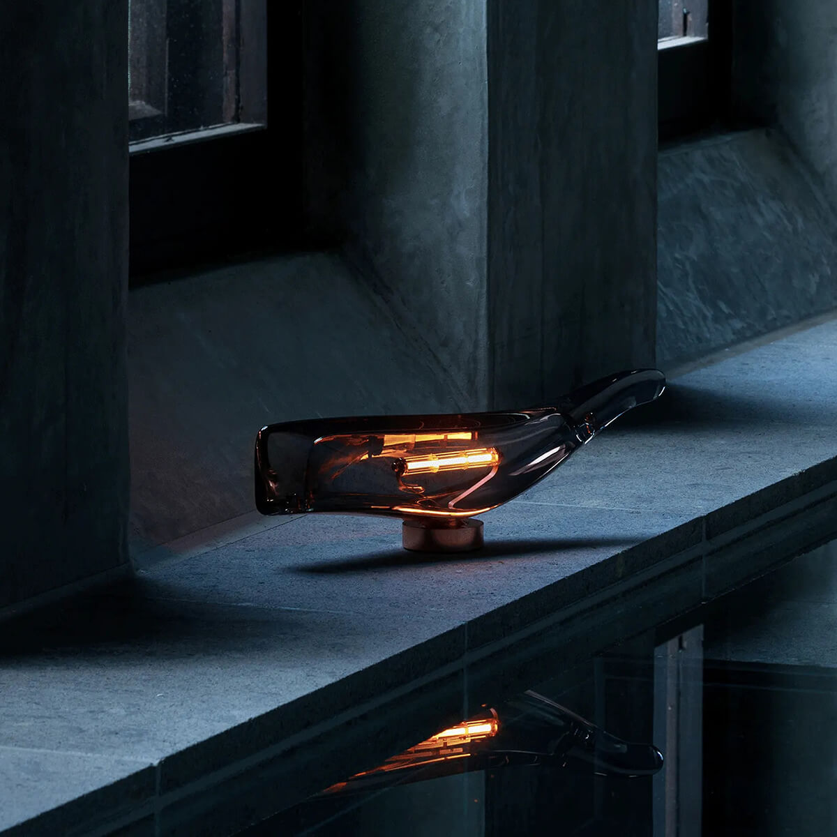 Just as the dignified sperm whale moves through the sea with grace and effortless elegance, a warm light flows throughout the room and echoes into the night a sense of quiet peace and calm. Matsuyama designed the Cachalot LED Portable Lamp to not only resemble the whale in lissome form and fluid agility, but to behave as the majestic creature in crafting an atmosphere of comforting tranquility, with an innovative light that, like the whale, manifests power and fluidity while remaining warm and always gentle.