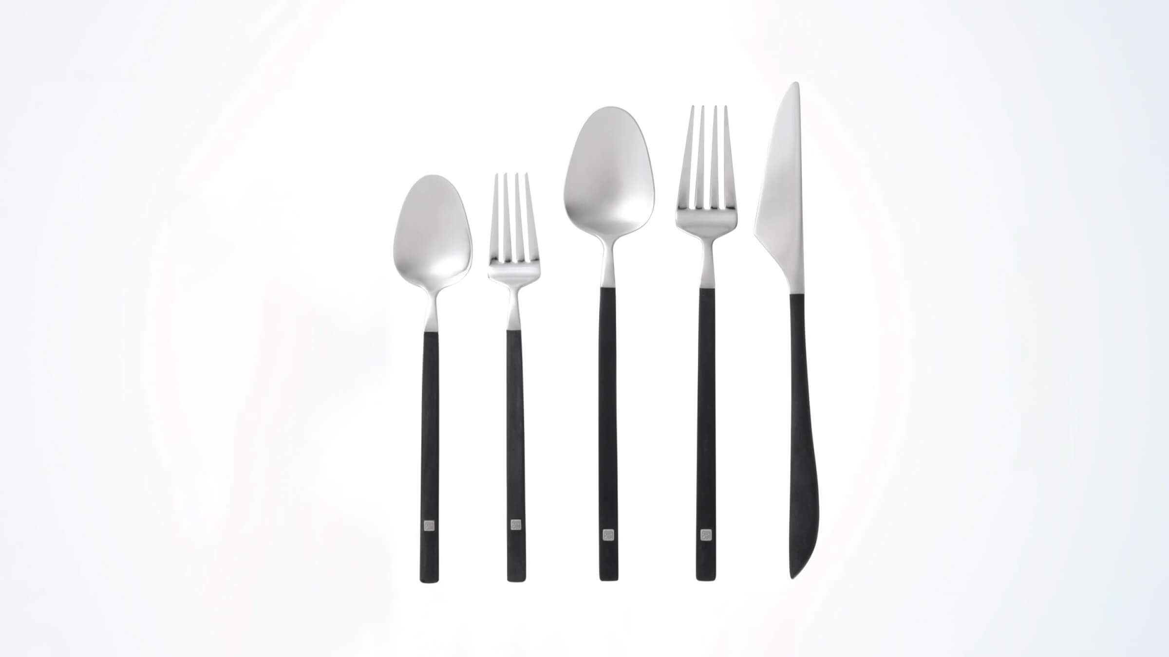 Designed by Kate Chung, the artful Calligraphy flatware set features forks, knife and spoons which each takes its form from the brushstrokes of Shou Jing Ti calligraphy, a font created by Emperor Song Hui Zong at the beginning of the 12th century. A crafted balance between the sturdiness of stainless steel with the art of Chinese calligraphy is created and the lines of the handles echo bold brushstrokes. This poetic set of flatware tools for the table adds character and excitement to the dining experience.