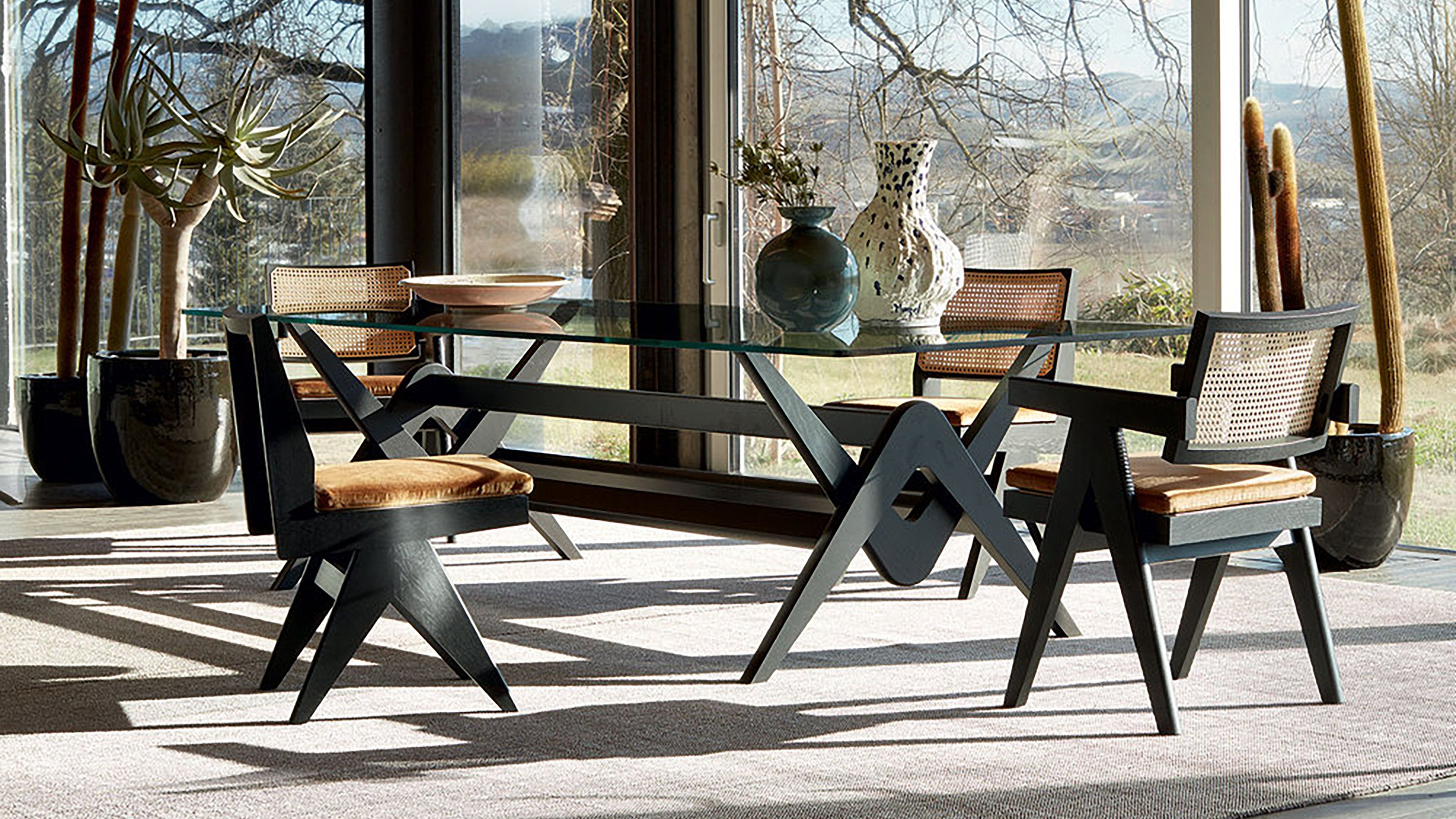 The Capitol Complex Table is a refined tribute to Pierre Jeanneret’s architectural legacy, originally designed for the legislative buildings of Chandigarh and now faithfully reissued by Cassina. This elegant table features a sculptural base with Jeanneret’s iconic inverted “V” legs crafted from solid wood, supporting a sleek rectangular top that highlights the natural grain of the material. Blending mid-century modern aesthetics with timeless functionality, the table serves as a striking centerpiece in both dining and workspaces. Cassina’s meticulous craftsmanship ensures historical authenticity with contemporary durability.