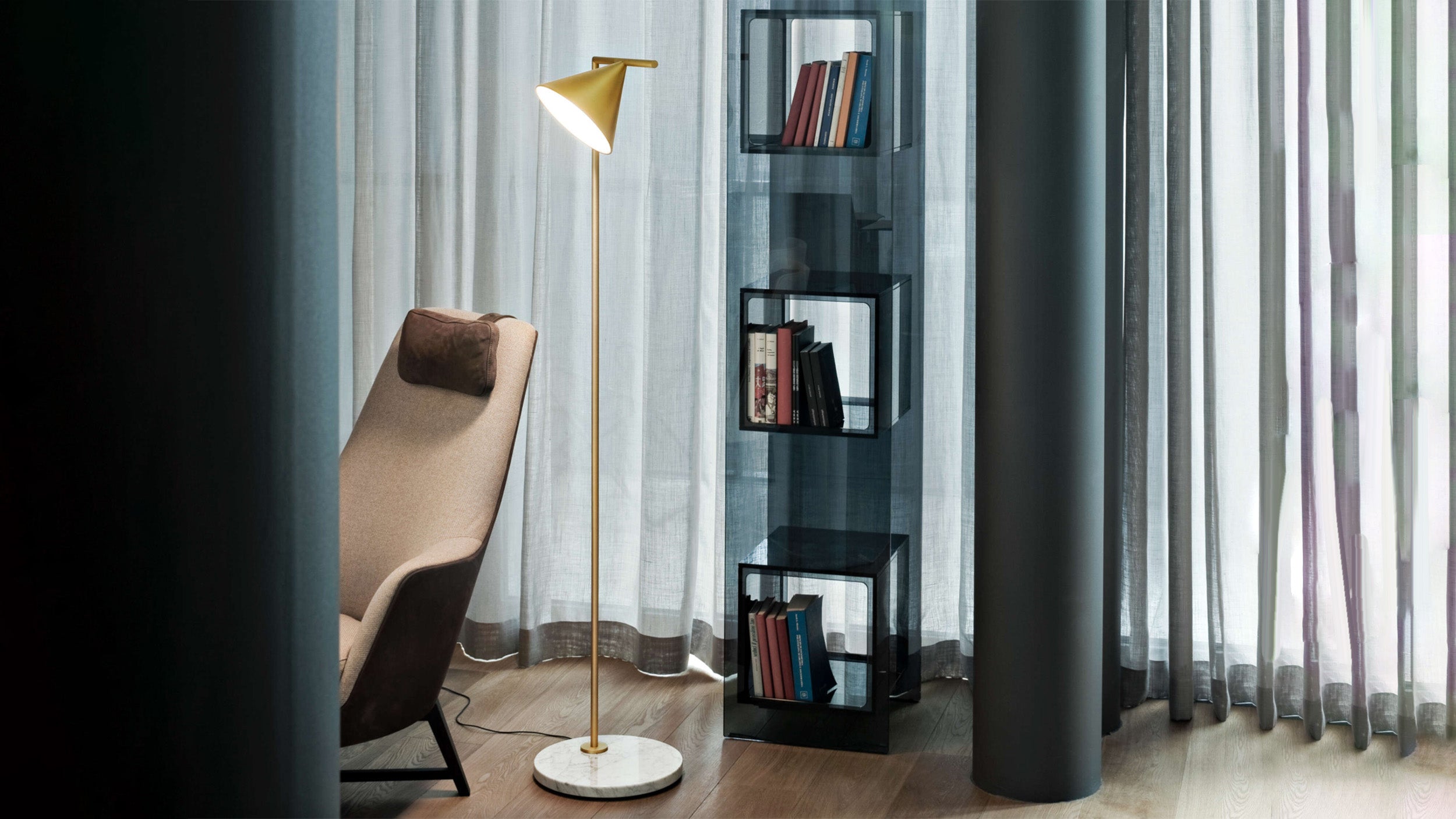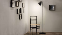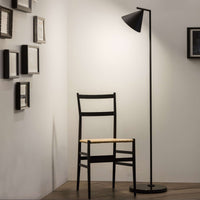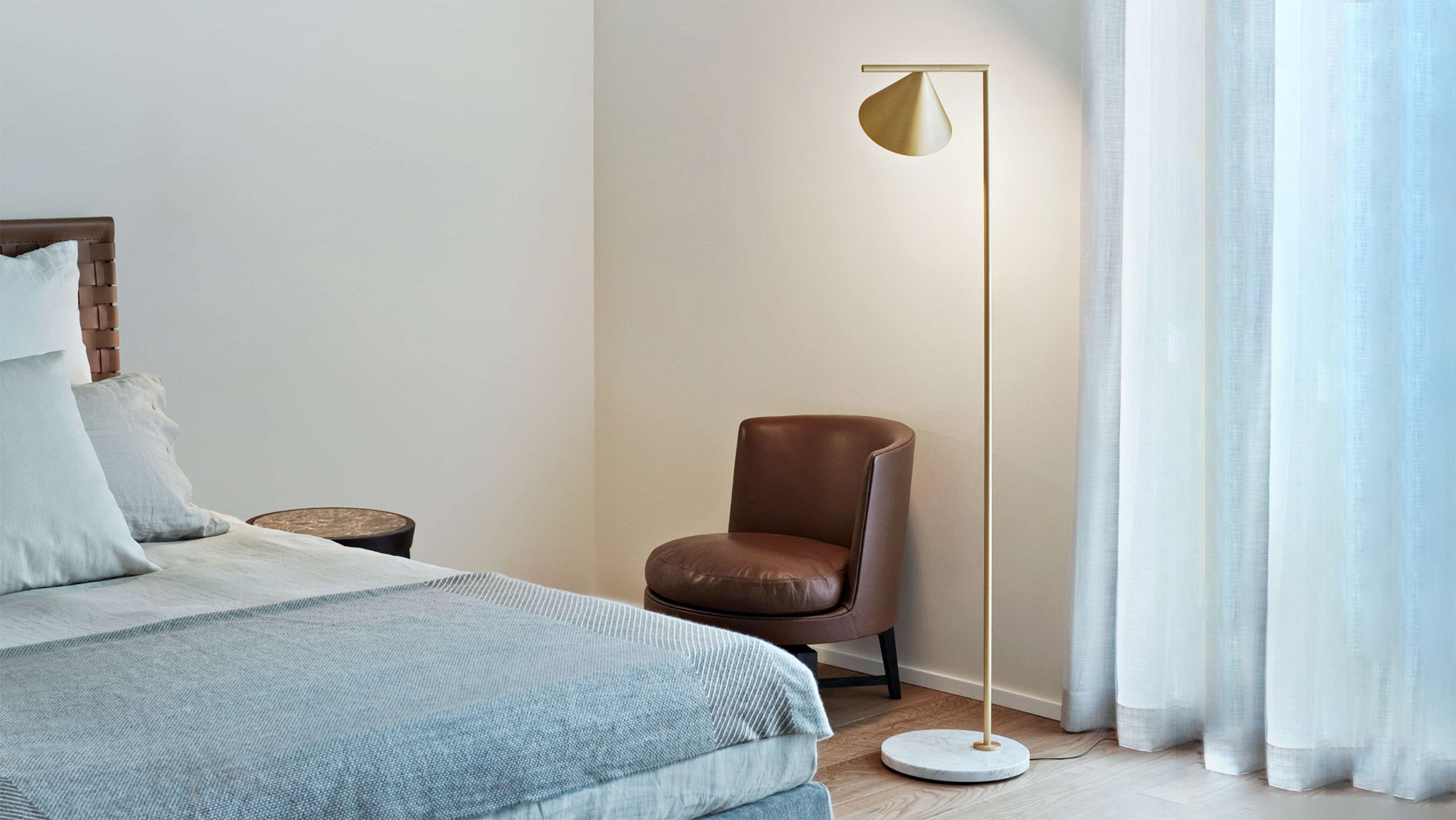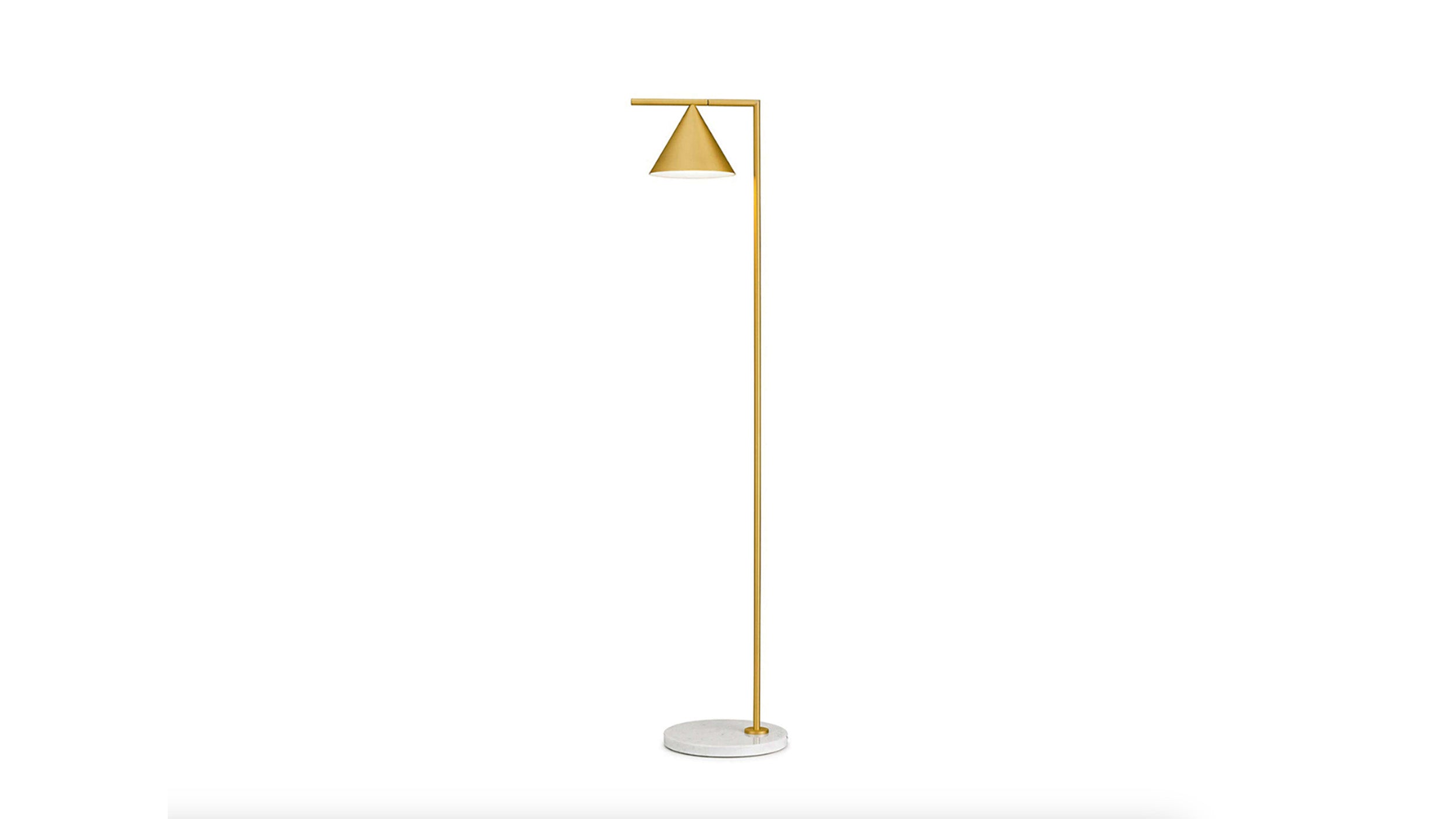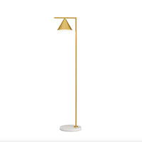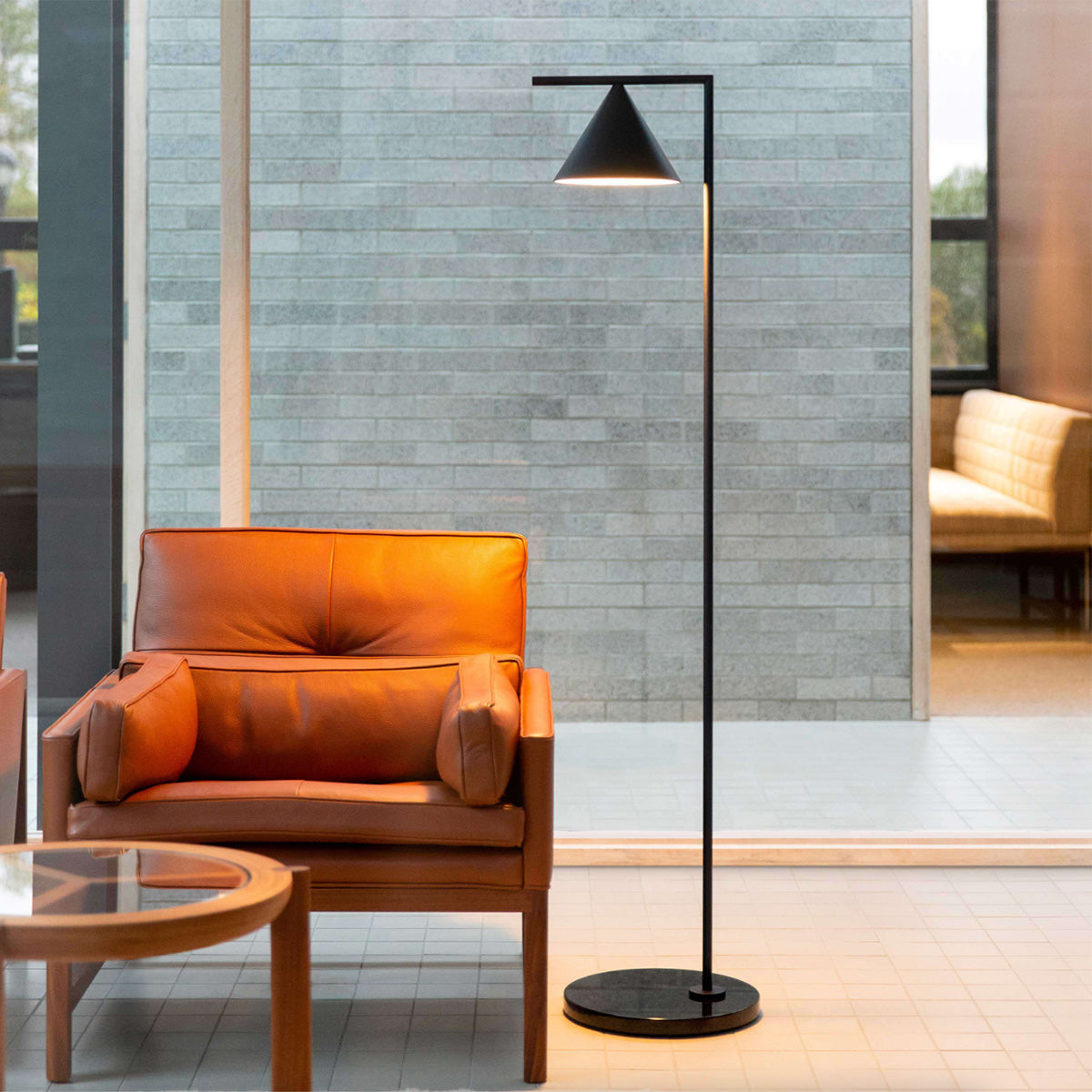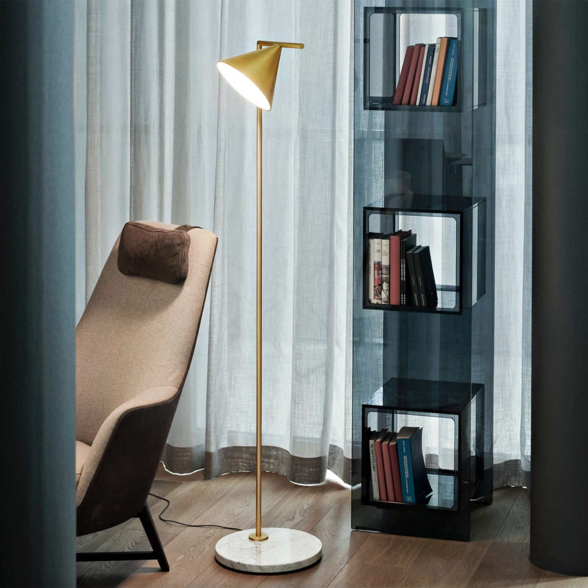 The Captain Flint Floor Lamp, designed by Michael Anastassiades for Flos, is a masterclass in refined balance and multifunctional elegance. Its rotating conical diffuser allows the lamp to function both as a focused reading light and a gentle uplighter, adapting seamlessly to changing moods. Anchored by a luxurious marble base and crafted in either painted steel or brushed brass, the design achieves a sculptural presence that feels both delicate and grounded. A foot-operated dimmer lets you adjust the brightness from soft ambiance to crisp task light with ease.