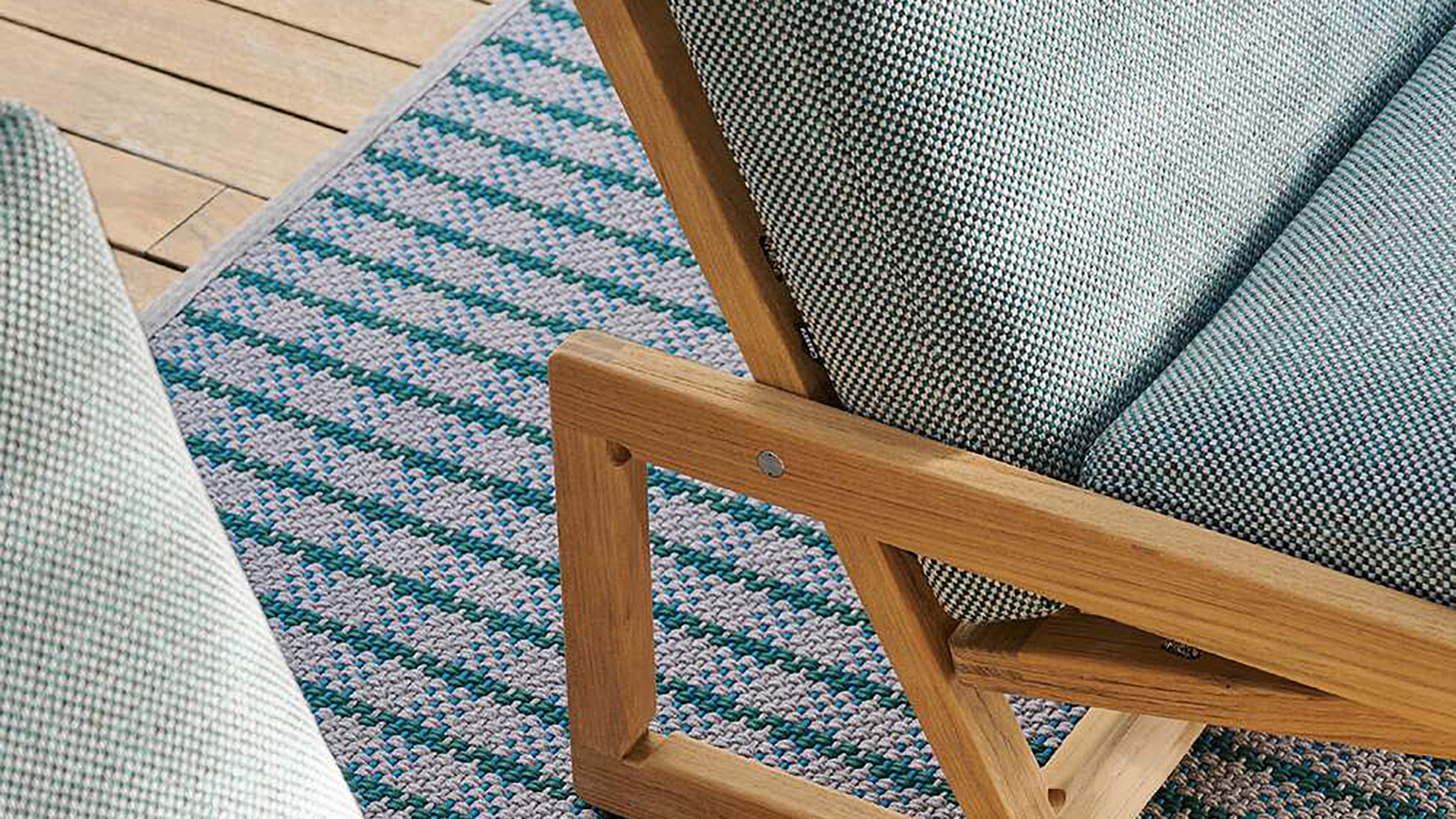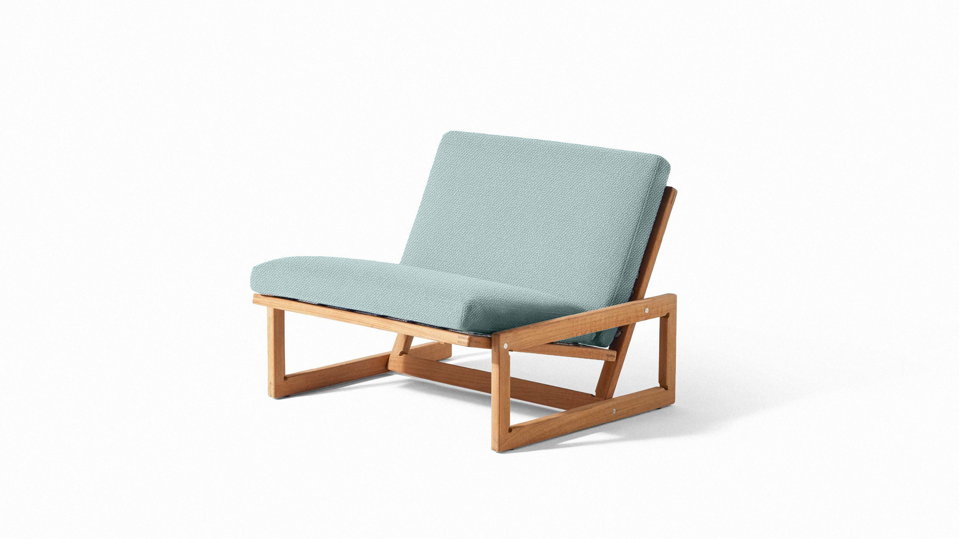 Available with natural teak frame, upholstered in 13E481 Elba Verde Grigio fabric. Inquire below for other options.