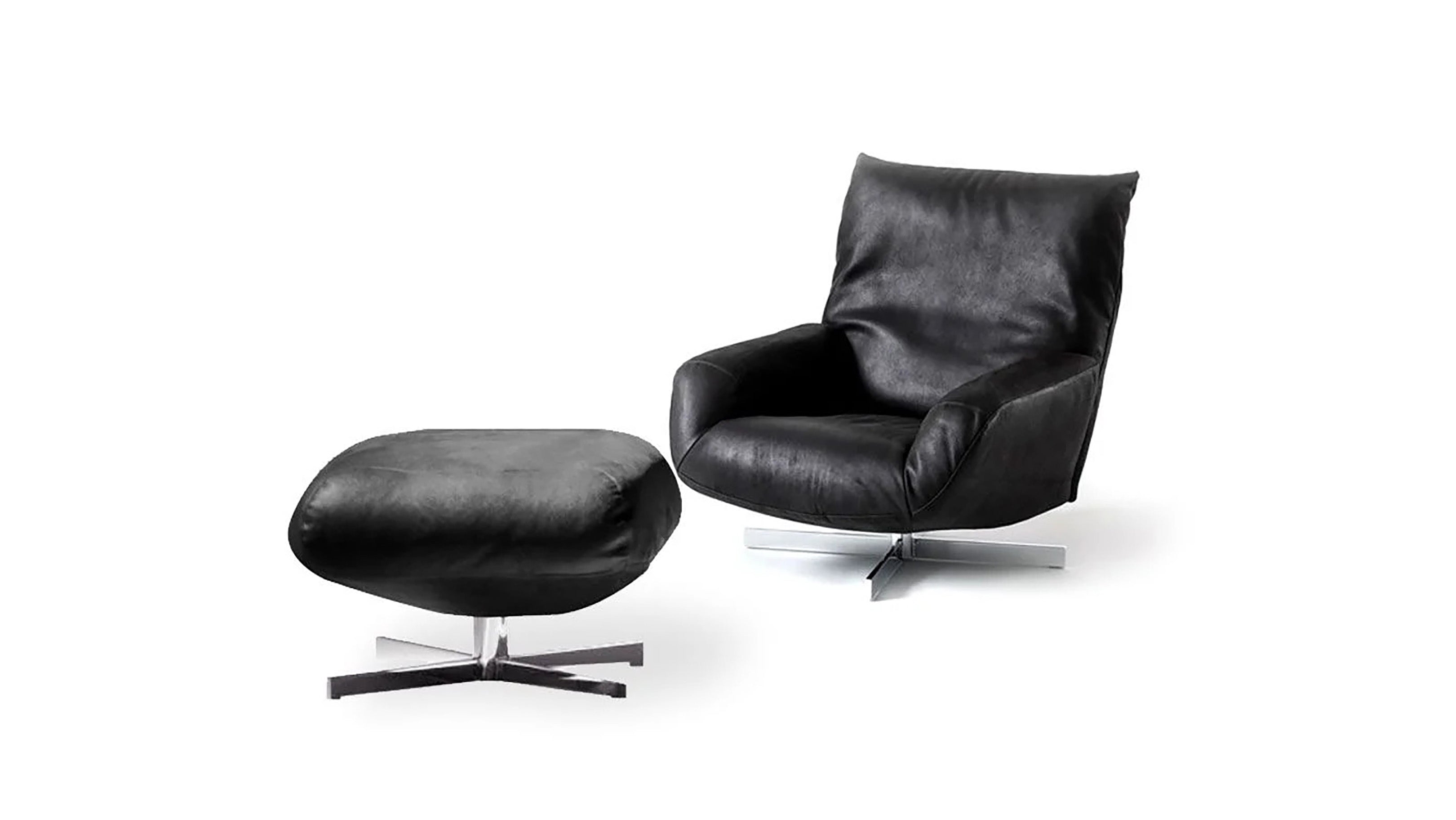Introducing the epitome of elegance, simplicity, and maximum comfort. This pure and absolute piece of furniture boasts a swiveling feature and is extremely comfortable thanks to its "smart" cushion that adapts to the backrest. It also comes with a footrest that enables you to stretch your legs and reach the ultimate level of relaxation.