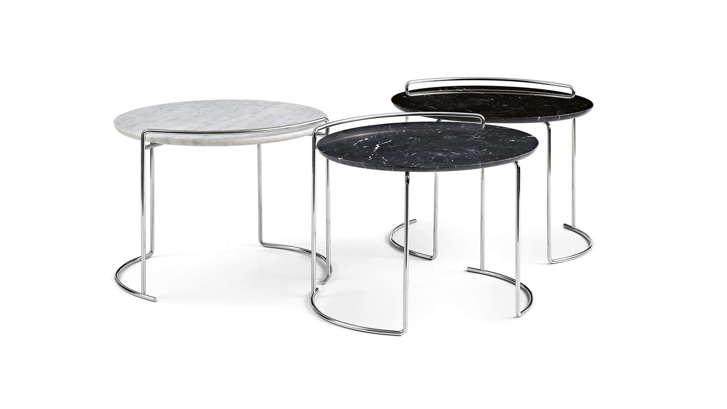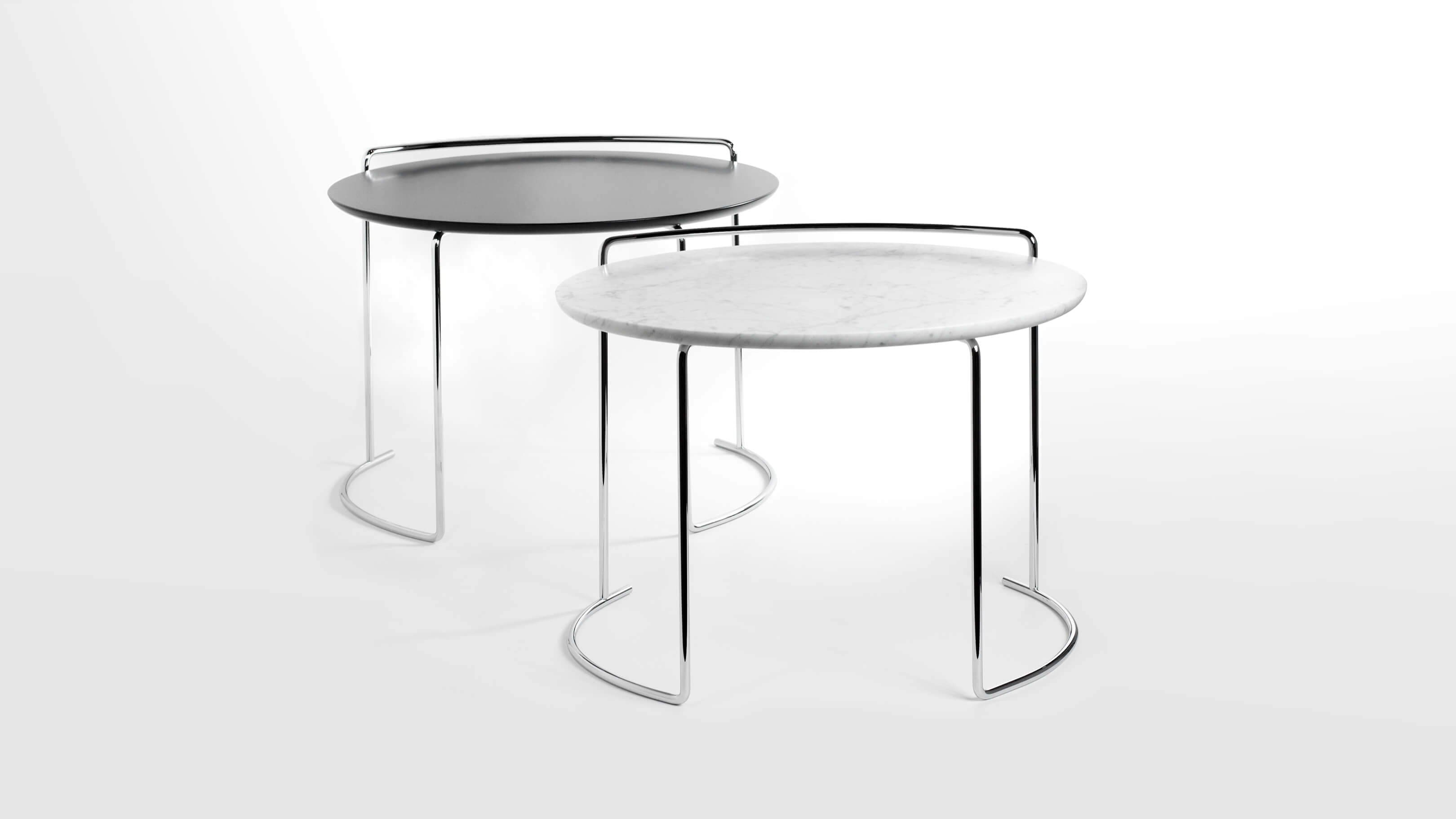 Recalling the modernist furniture of the 1920s with its monochromatic appearance and use of tubular chromed steel, Kazuhide Takahama's Djuna Side Tables made by Cassina exude a sense of quiet sophistication making them appropriate compliments to any interior. The tables, with their elliptical top and refined base, showcase the rigor and minimalism that the Japanese designer is known for. The tables also exude a poetic union of Eastern and Western cultures colliding to create a unique design language that reflects the designer's experiences around the world. The table is a available in four finishes - matte white or black lacquer, white Carrara marble, or Black Marquiña Marble. Each finish is complimented by the rounded chromed steel base which adds to the enduring quality of the design. The Dunja Side Tables may be used individually or grouped together for a dynamic composition of forms.