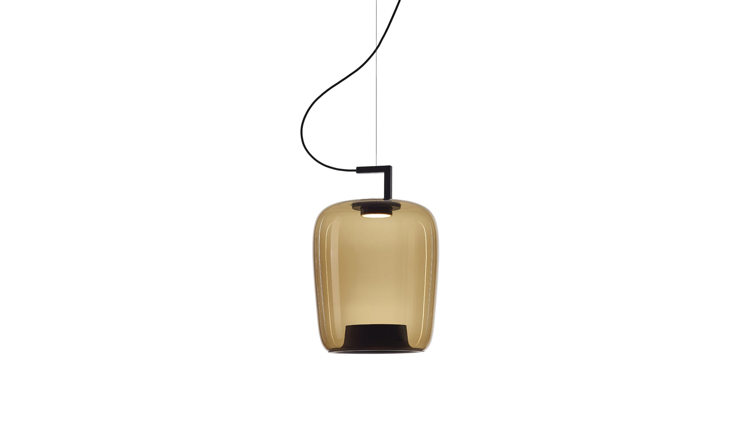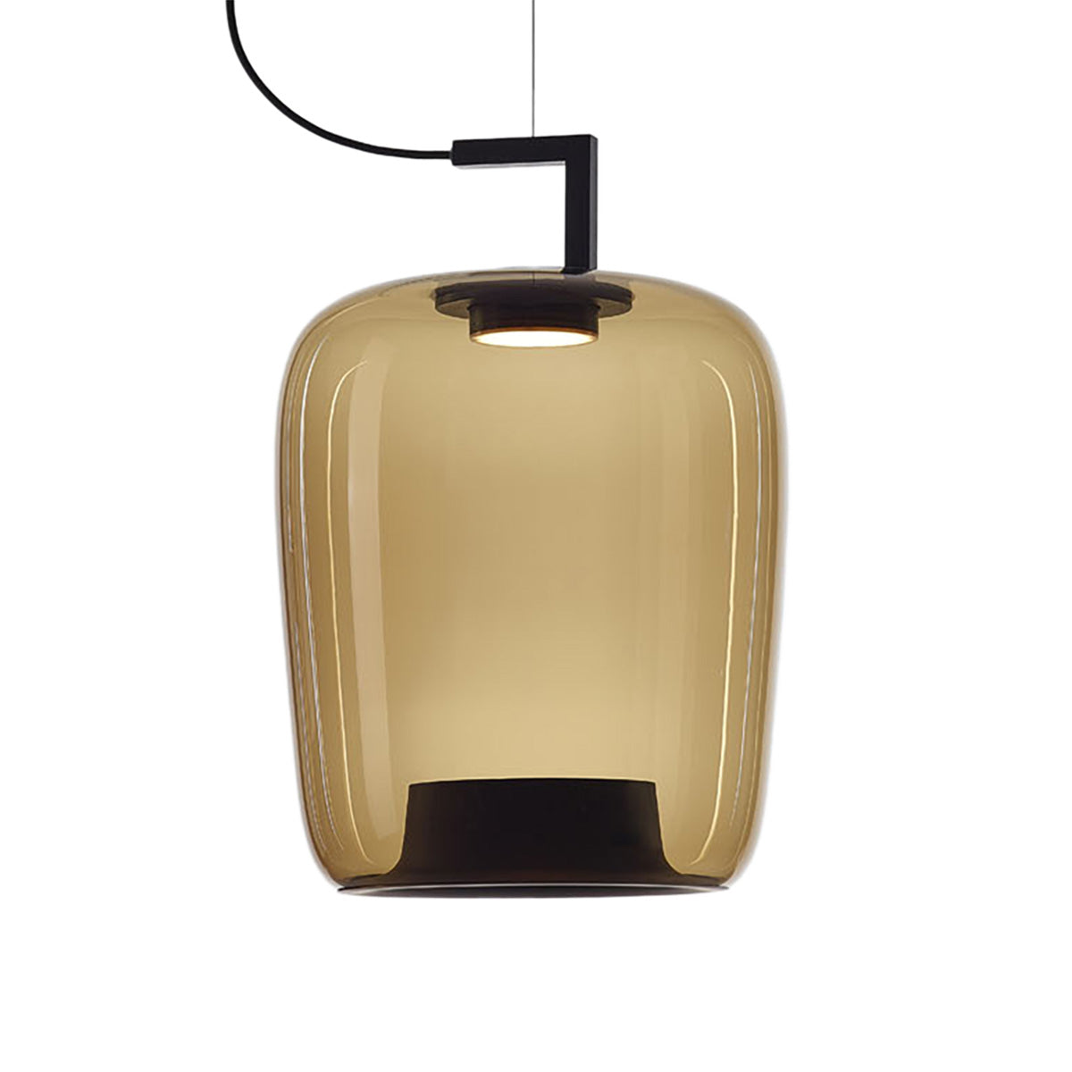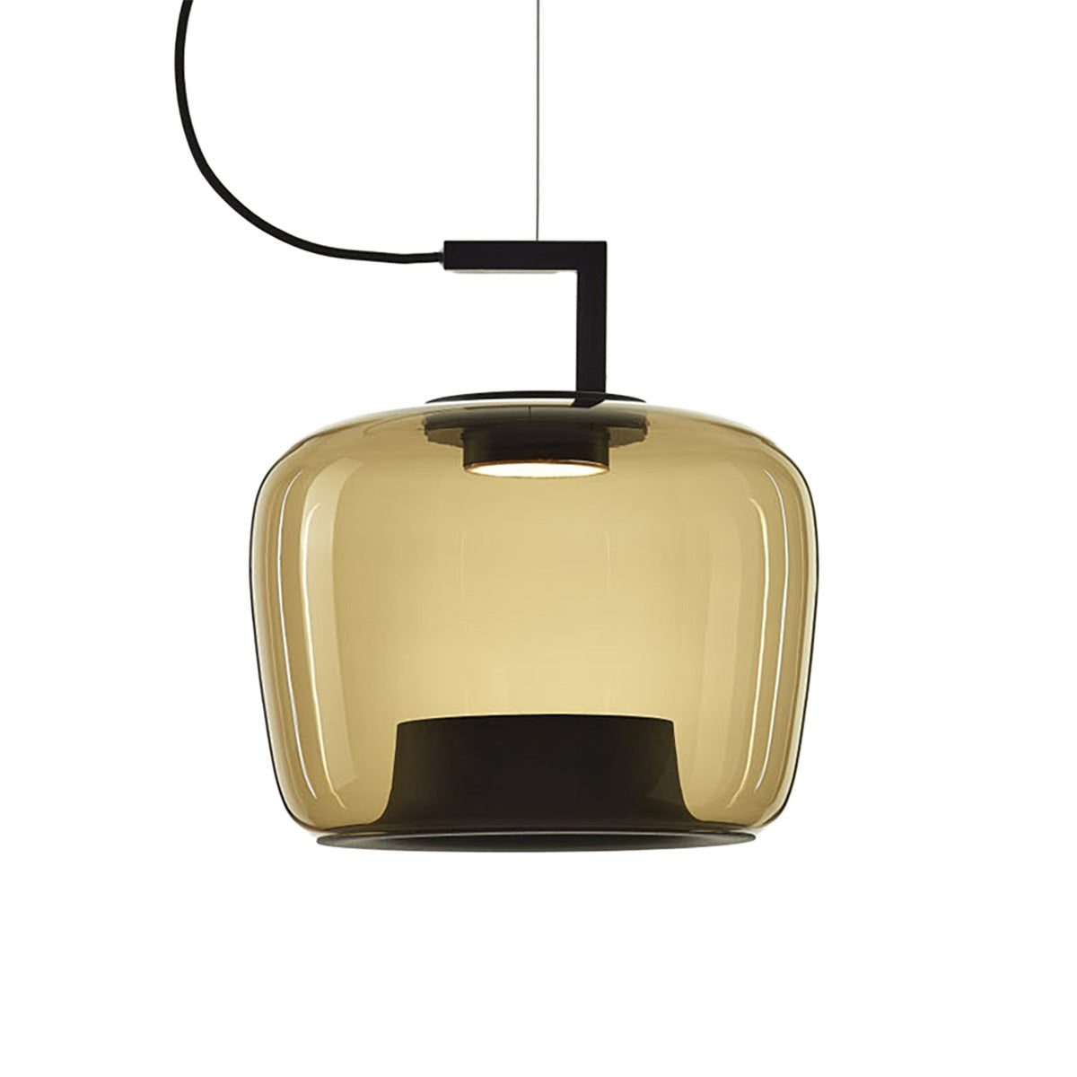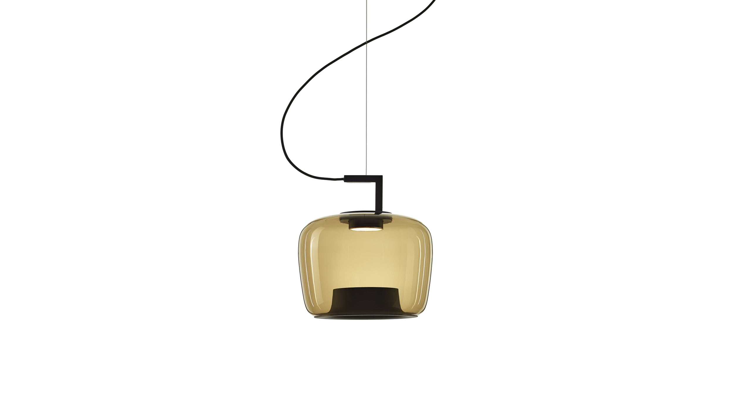 • Hand-blown glass shade paired with a matte black powder-coated aluminum structure