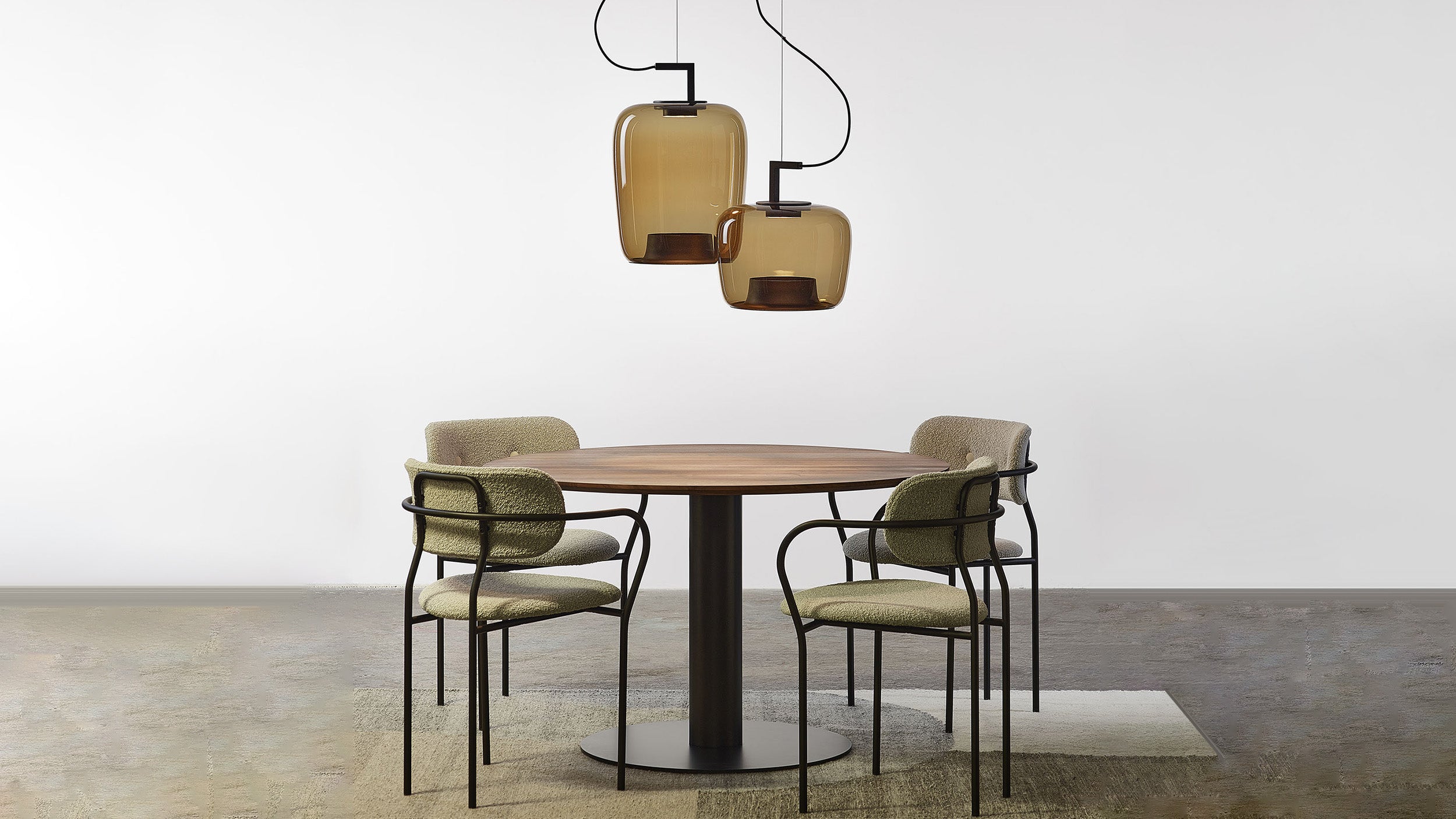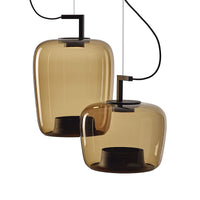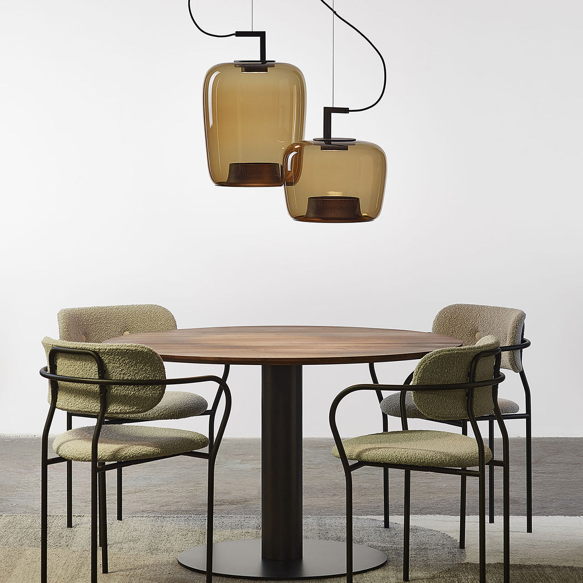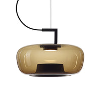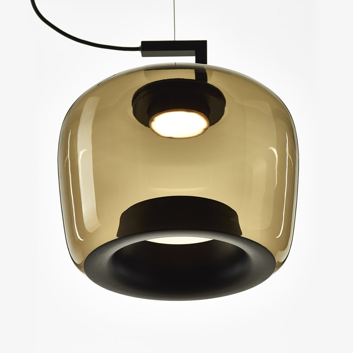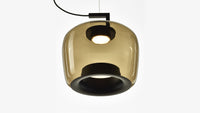 The Double Pendant Lamp, by LCM MARIN design studio for Brokis, elegantly unites handcrafted glass and lightweight aluminum to embody both utility and poise. The hand-blown glass sphere, suspended beneath a matte black metal ring and cable, houses an integrated LED diffuser that emits a soft and warm glow. Together, these elements achieve a serene balance of light and shadow, evoking timeless simplicity with industrial finesse. Available in various glass colors and size options, Double lends sculptural presence to solitary installations or layered compositions.