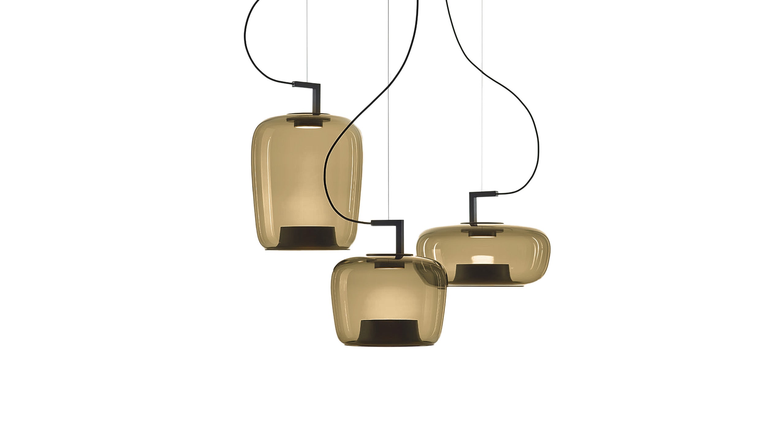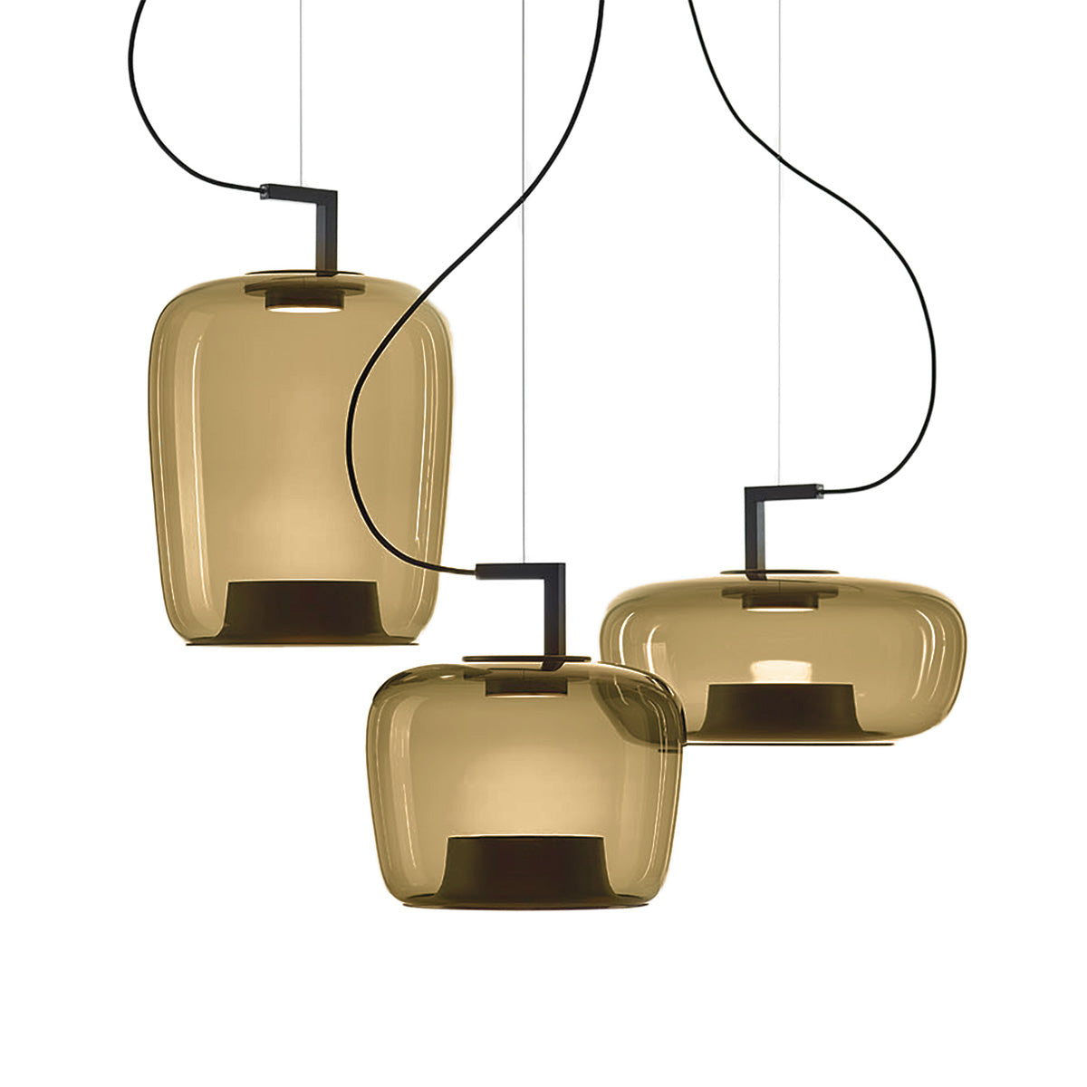 Available in three shapes with smoke brown hand blown glass and a matte black canopy and hardware. For additional colors and arrangements please inquire below.