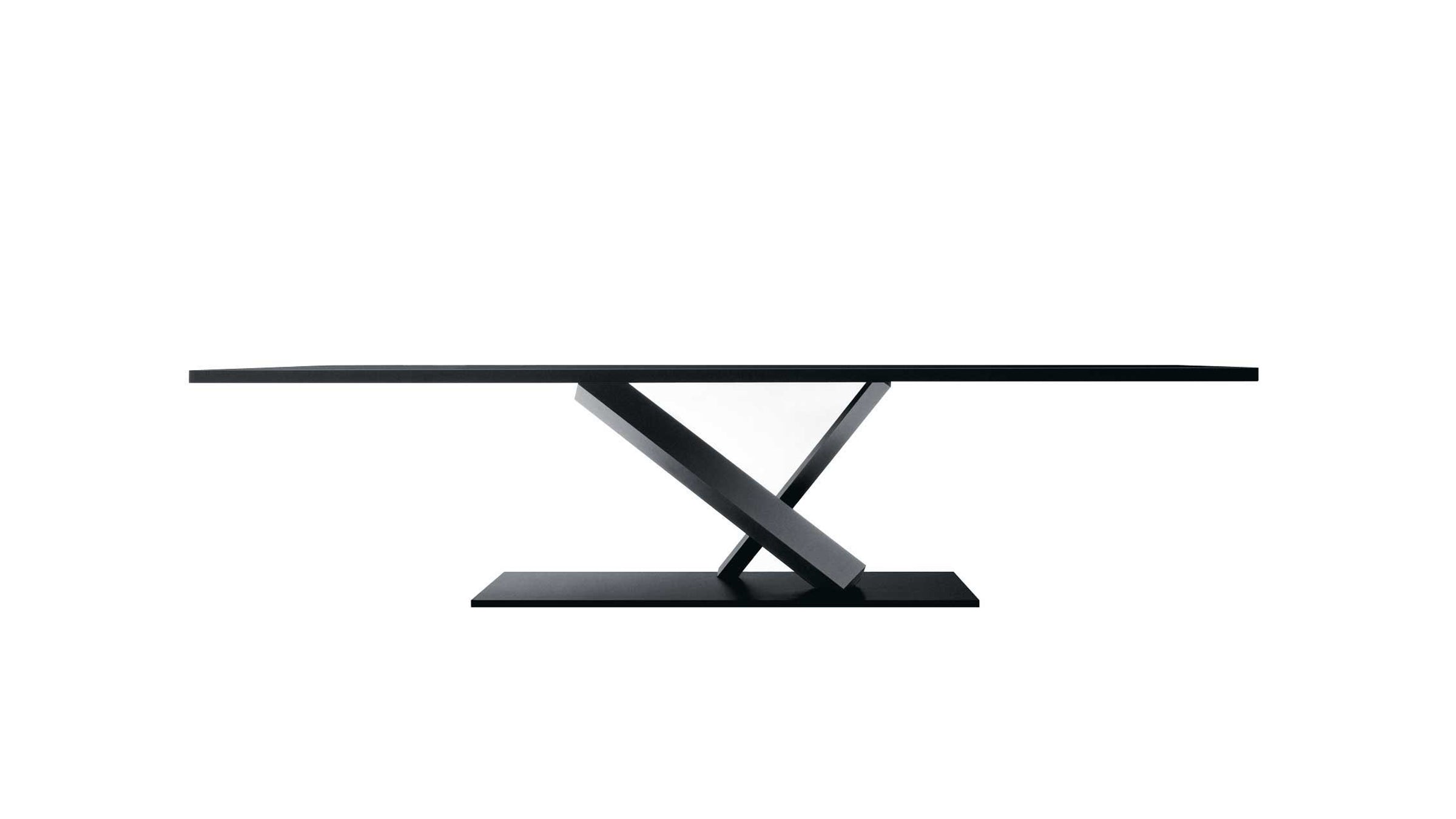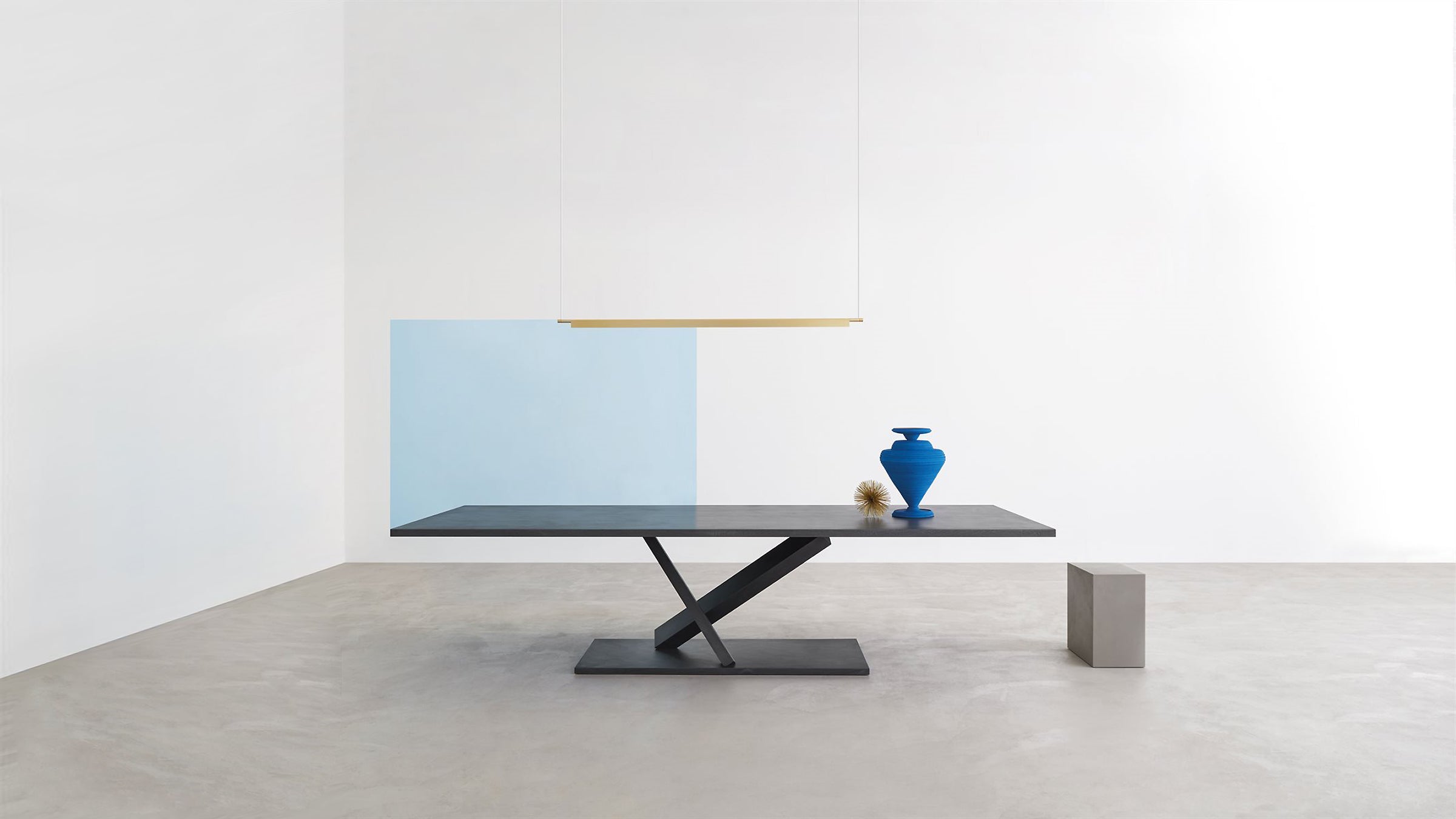 With a stunning range of products that eschew the traditional four-leg bases of tables past, the designer has worked to elevate the tabletop using only one or two rectangular prisms for support. Rather than standing upright, the oblong supports are tilted so one beveled corner touches the base while the tops of the Element tables teeter on another corner at the opposite end. The range of tables is available in a number of shapes and dimensions.