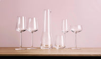 Believing that simple forms enhance the enjoyment of wine, Essence glassware is modern and minimal with a thin lip for sipping which is rare in the lead-free glass. The stems and bases are identical which express a remarkable sense of balance when the glassware is placed side by side. Sensually pleasing to grasp and handle, Essence makes fine wines even more enjoyable.