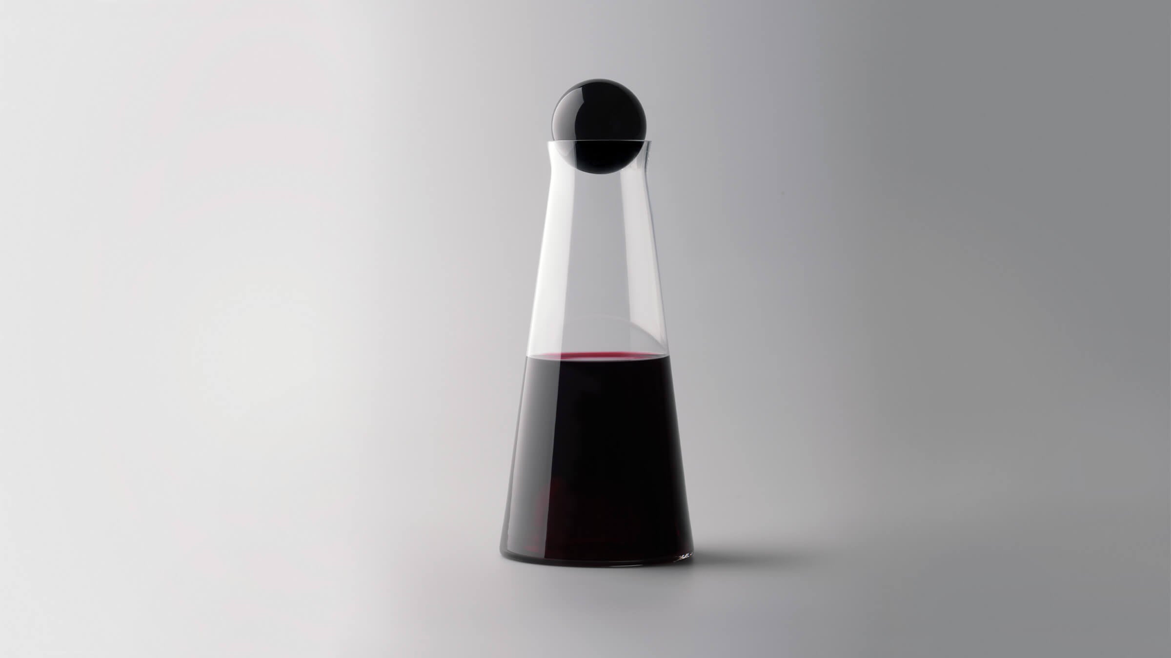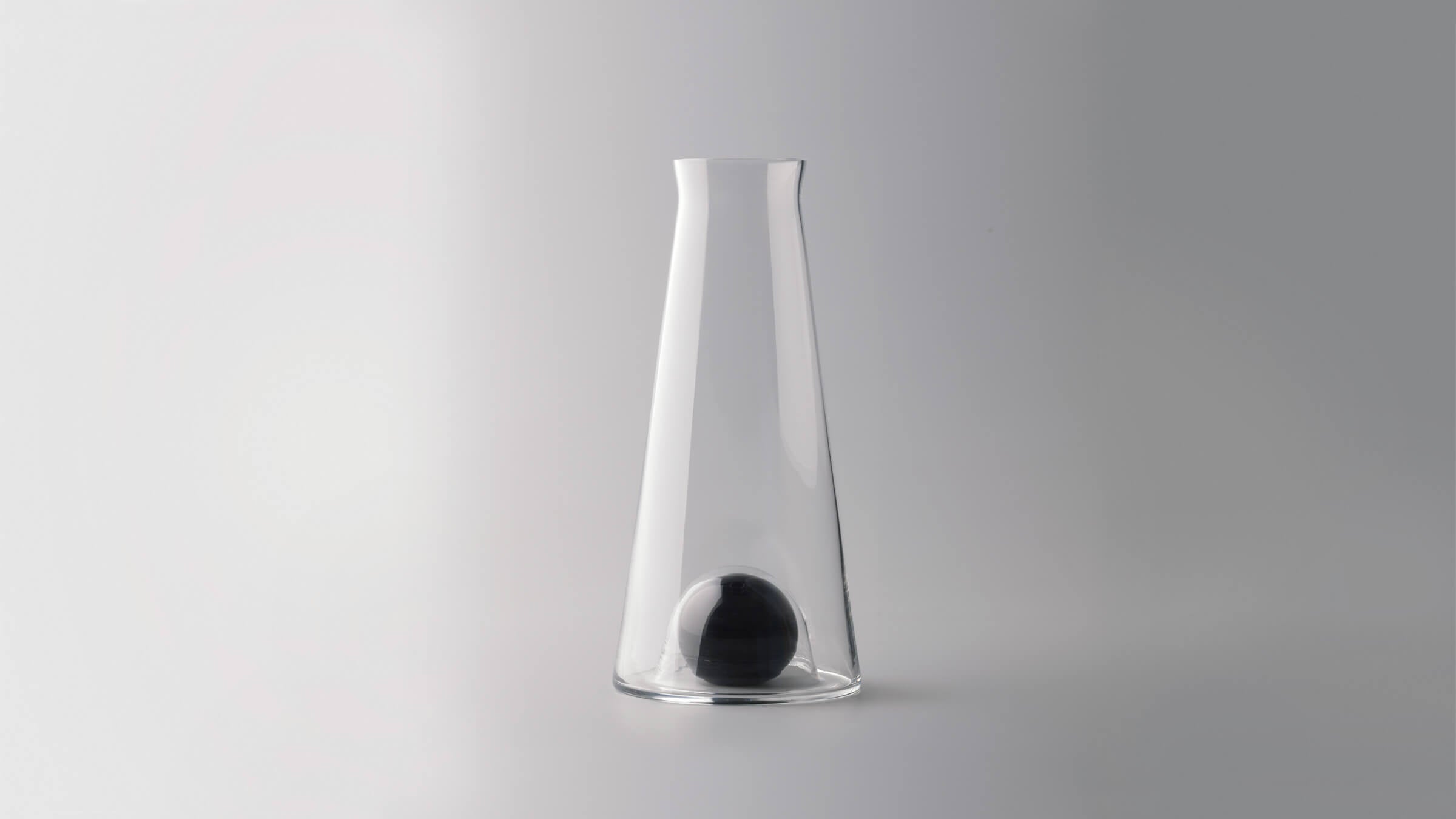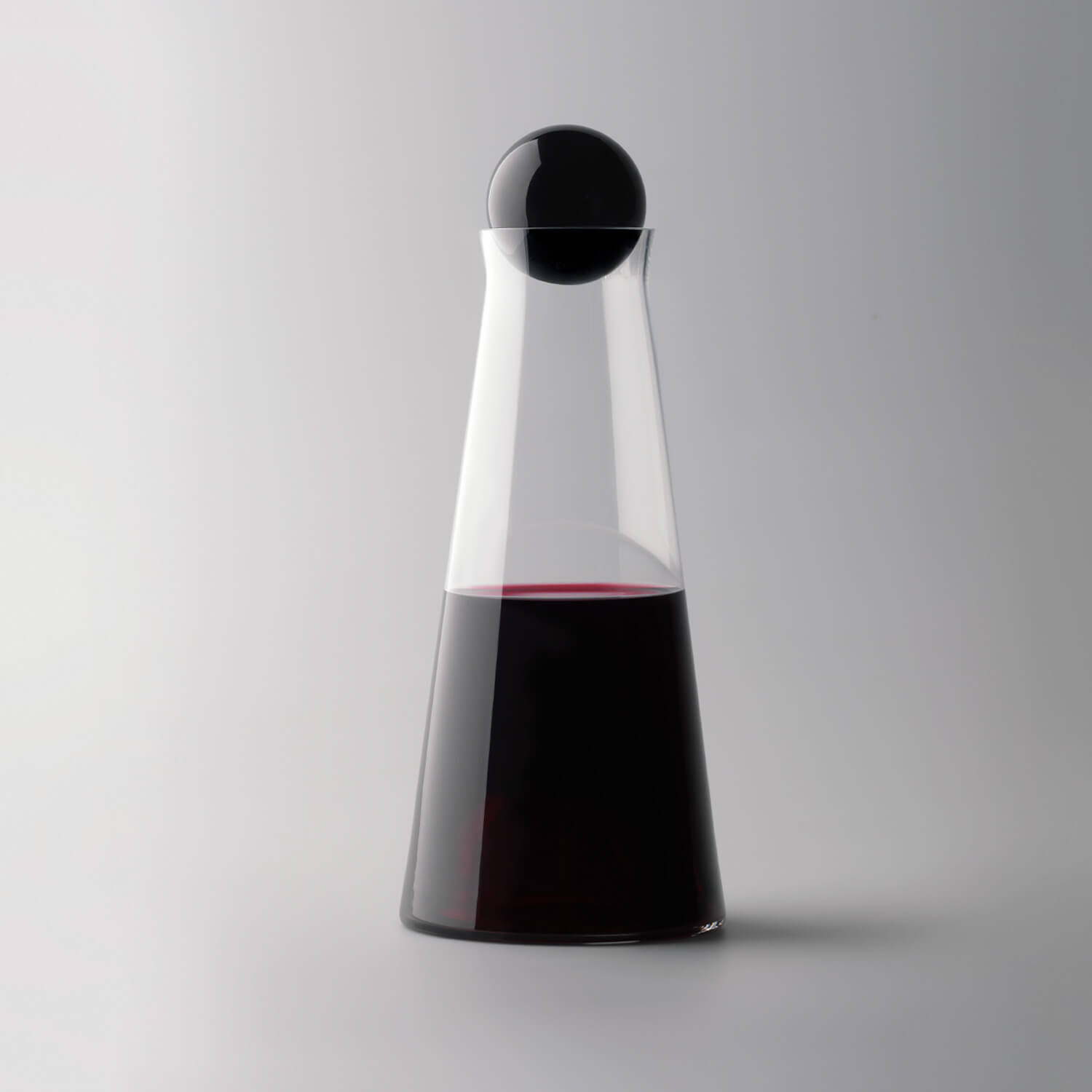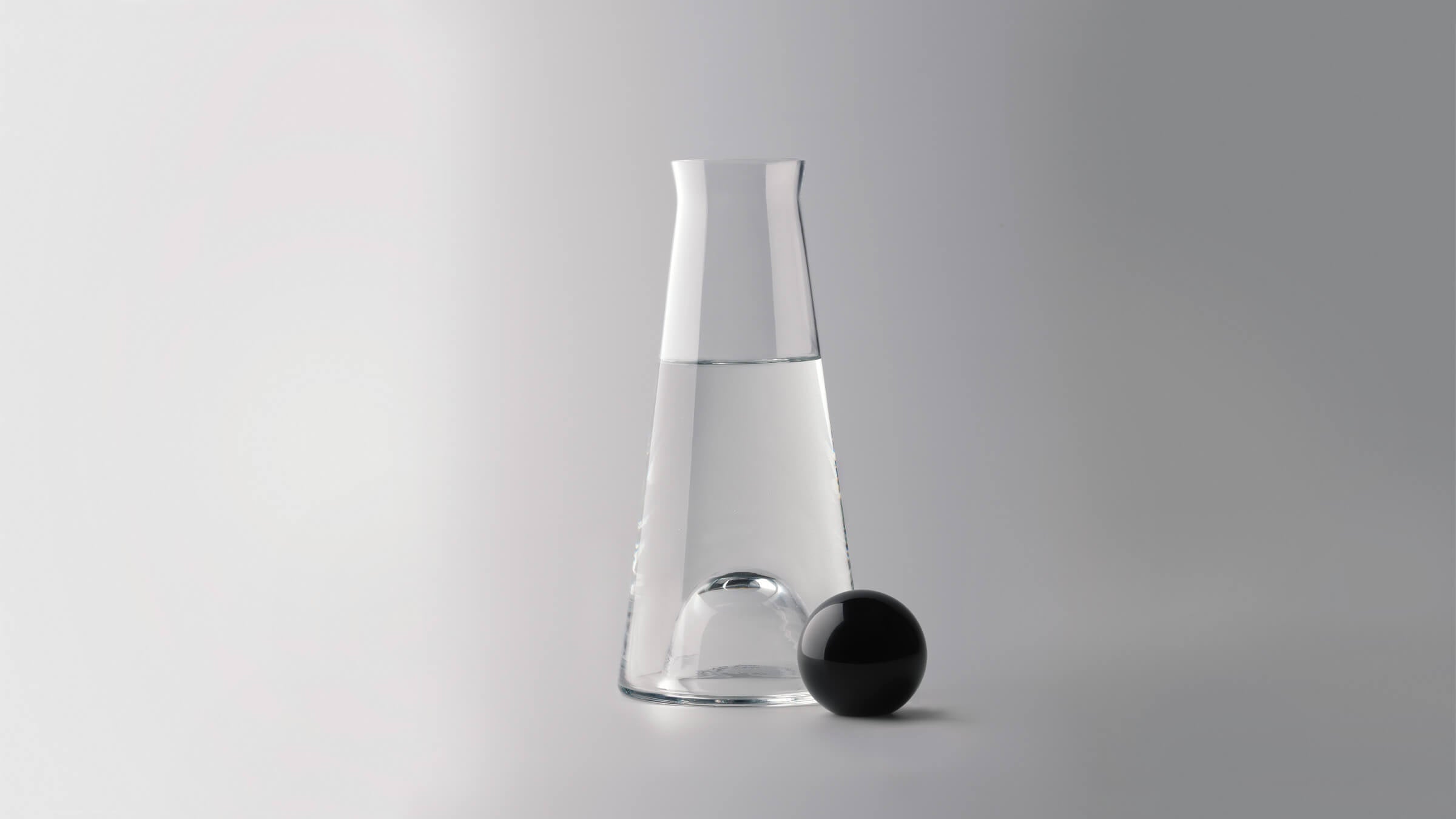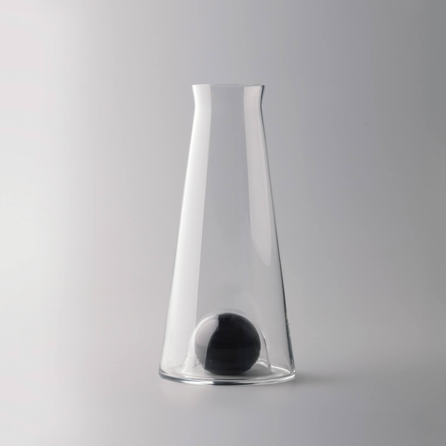 Seeking functional simplicity for the tabletop, Nina Jobs has designed the Fia Carafe, a straightforward vessel with sophisticated lines. For wine or water, the mouth-blown carafe's conical profile culminates with the playfulness of the sphere. Acting as a stopper, the glass sphere may be alternately placed in the recess at the bottom of the carafe.