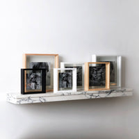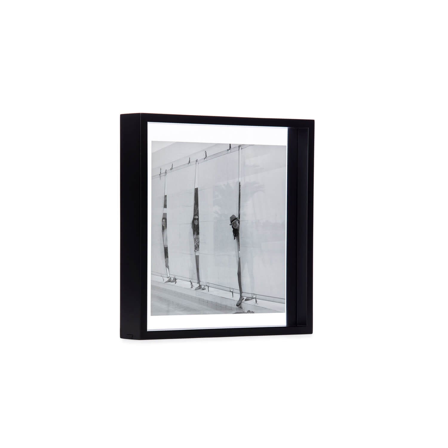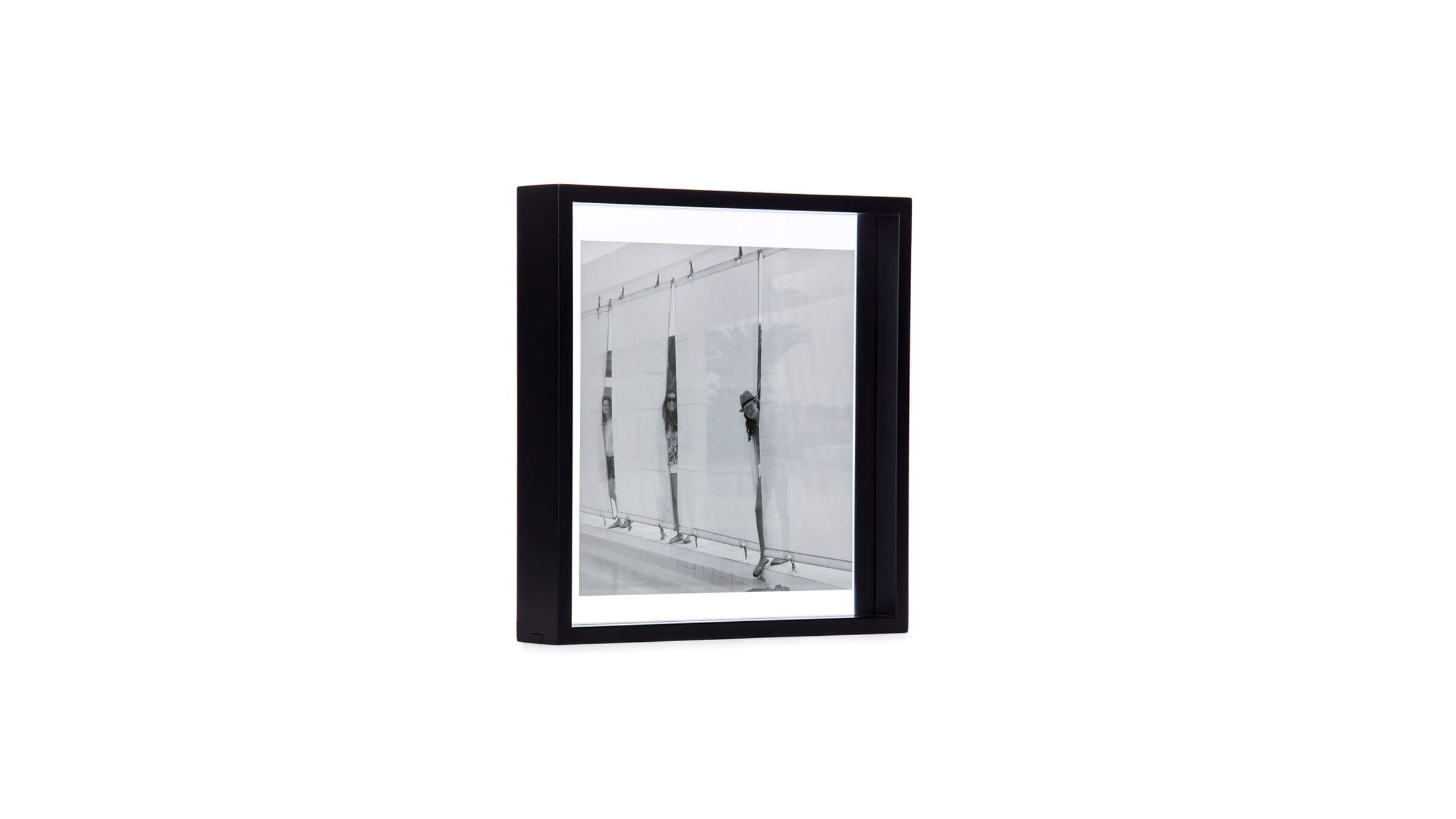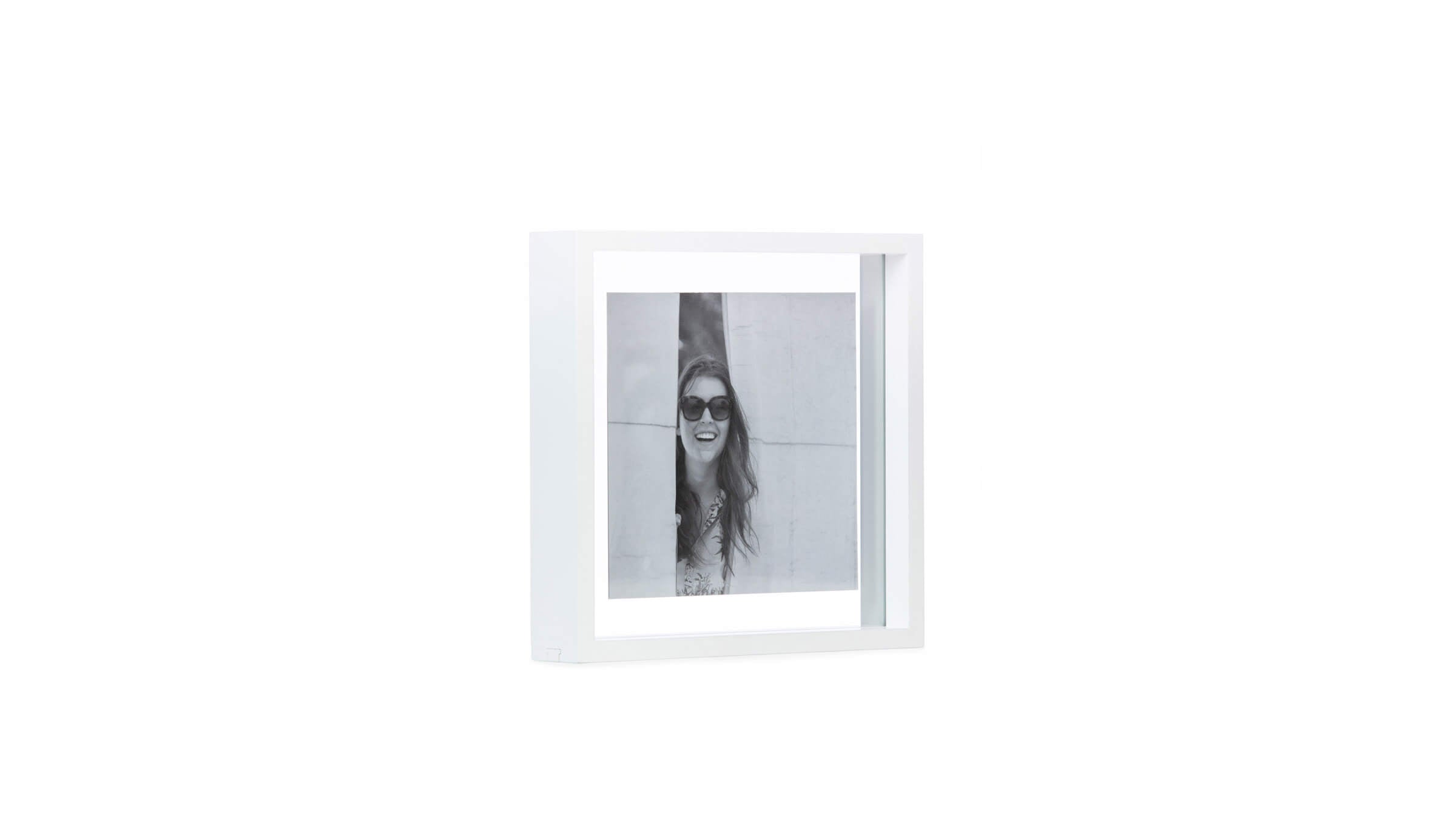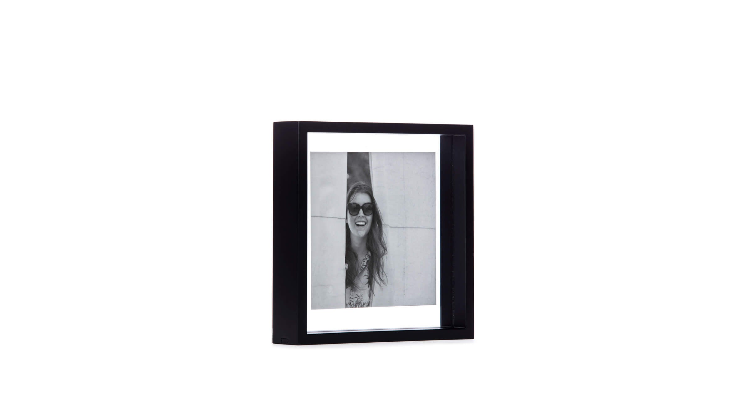 A unique approach that blends the function of a picture frame with the design of a window, XLBoom's Floating Box Picture Frame secures a photo between two panes of glass. Framed in lacquered MDF, the geometric frame allows the picture to float within, creating the effect of looking through a window. This effect works best when the photo is smaller than the overall dimensions of the frame, whether they are square to match the frame, or rectangular to offset the proportions.