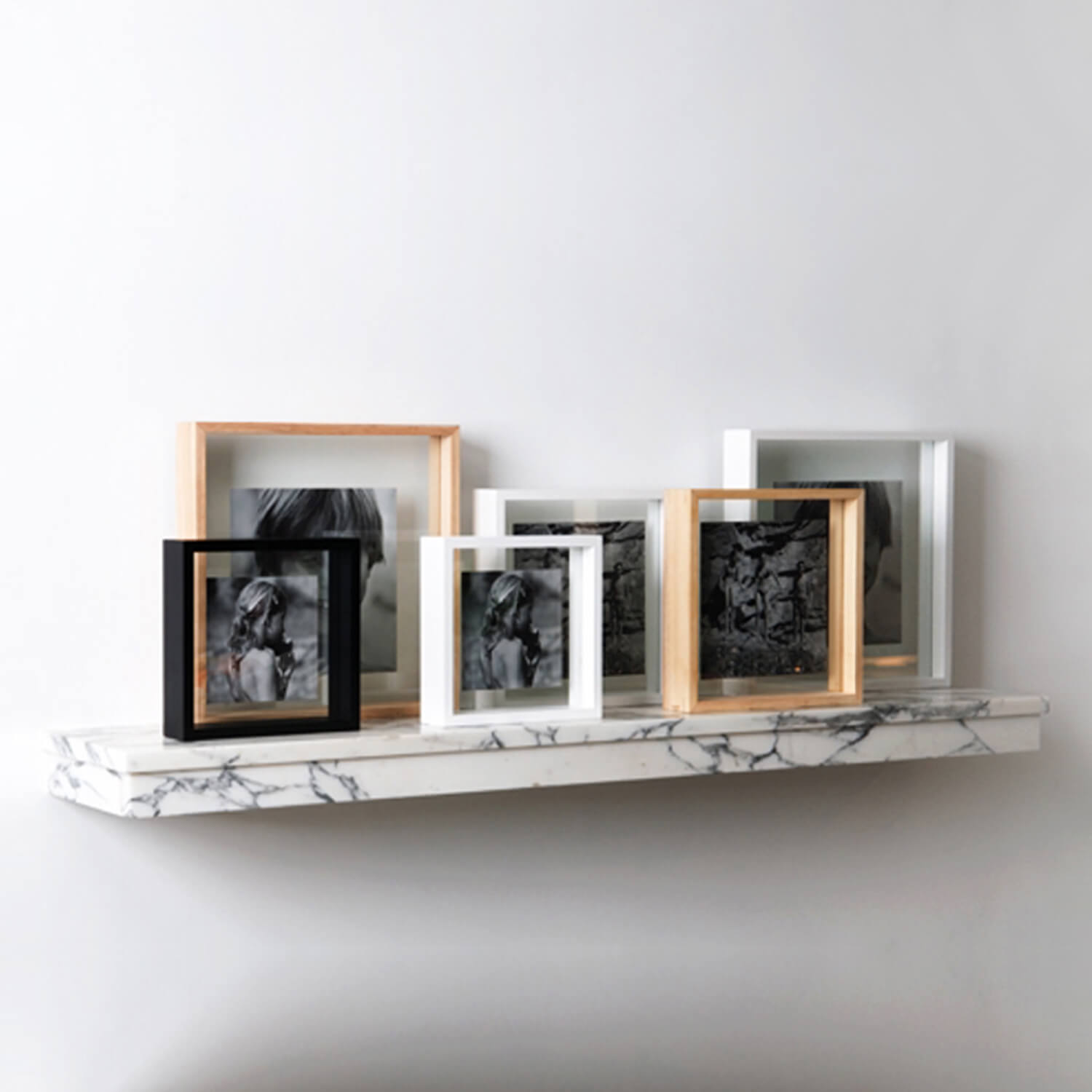 • A simple frame inspired by a window, the photo "floats" between two planes of glass