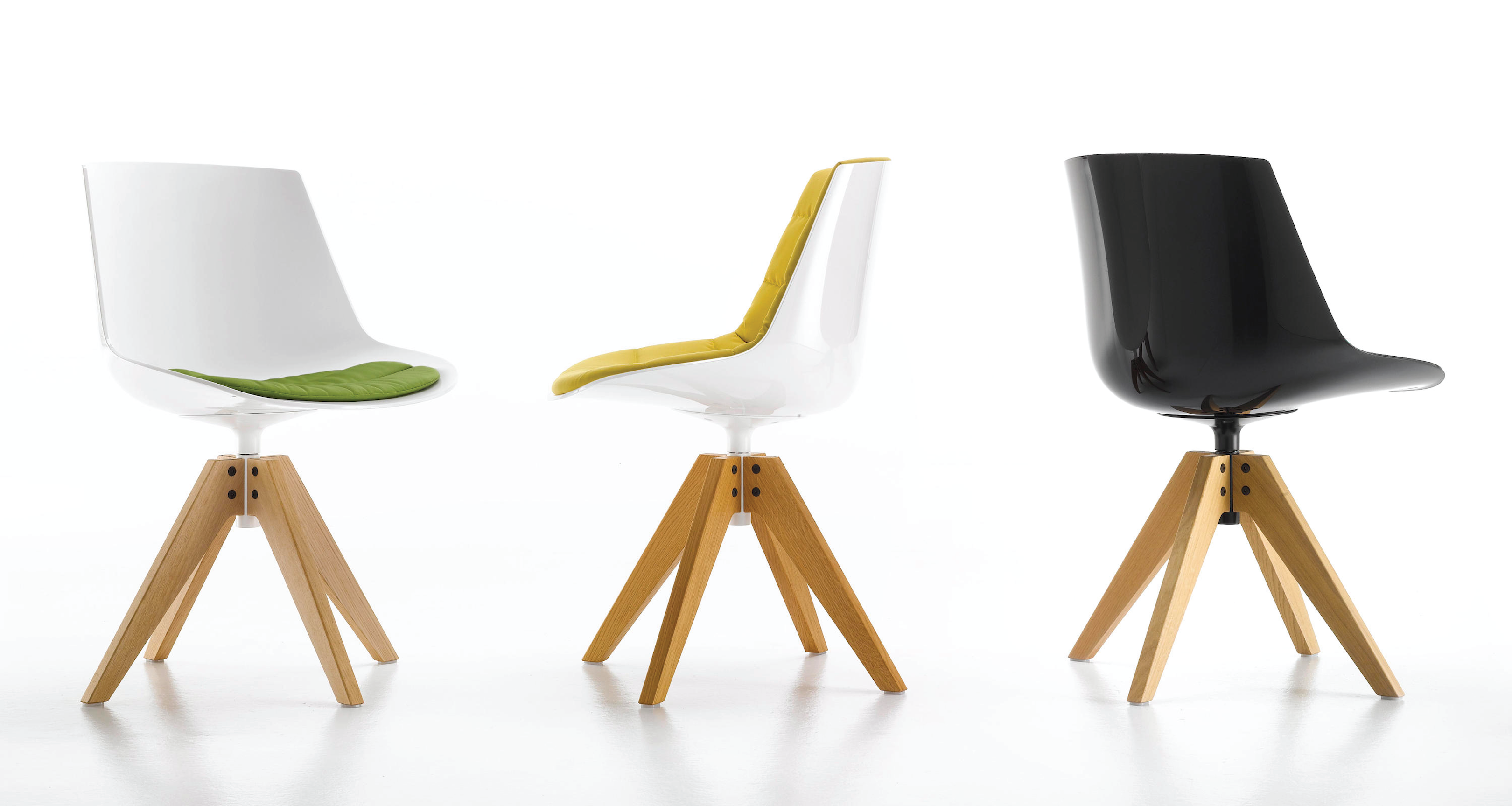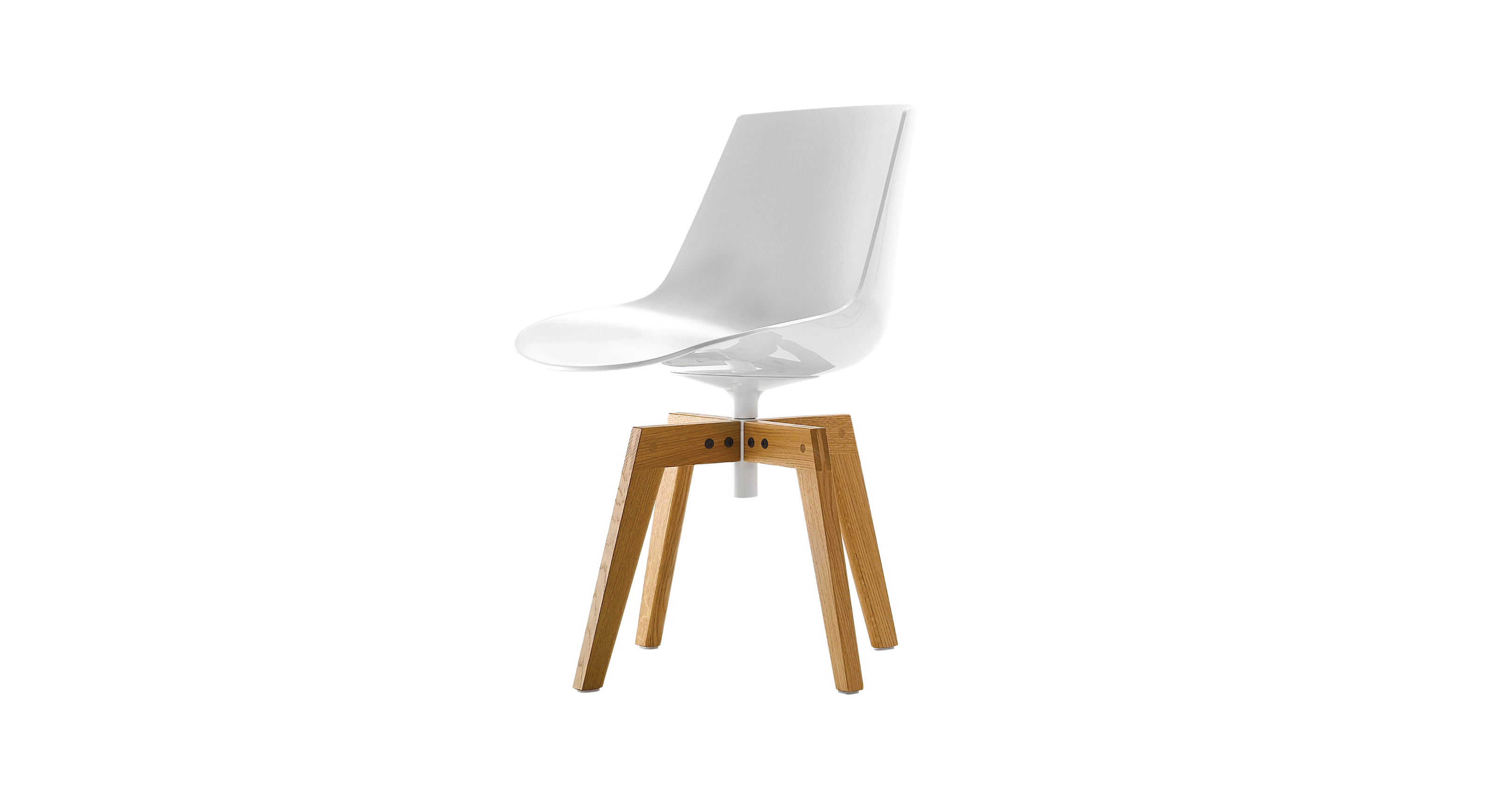 In a daring contrast of the natural and the industrial, smooth, solid Iroko wood with sleek, shiny polycarbonate, the Flow Chair Iroko from Jean Marie Massaud, a true composer of clean elegance, brings an iconic piece for outdoor use with materials that are weather, light, and temperature resistant as they are captivating to gaze upon and to touch. Designed for contract settings and residential homes alike, the Flow Chair Iroko features a swivel base and a seat that cradles the body in cozy repose, gracing any space with refined beauty and comfort.