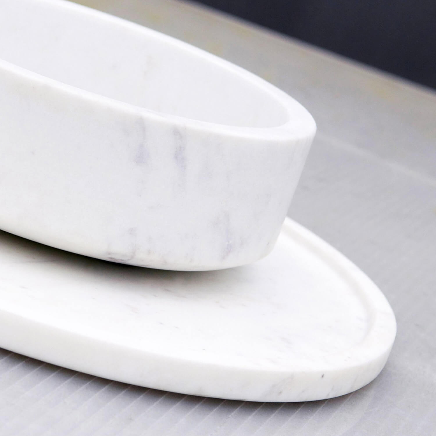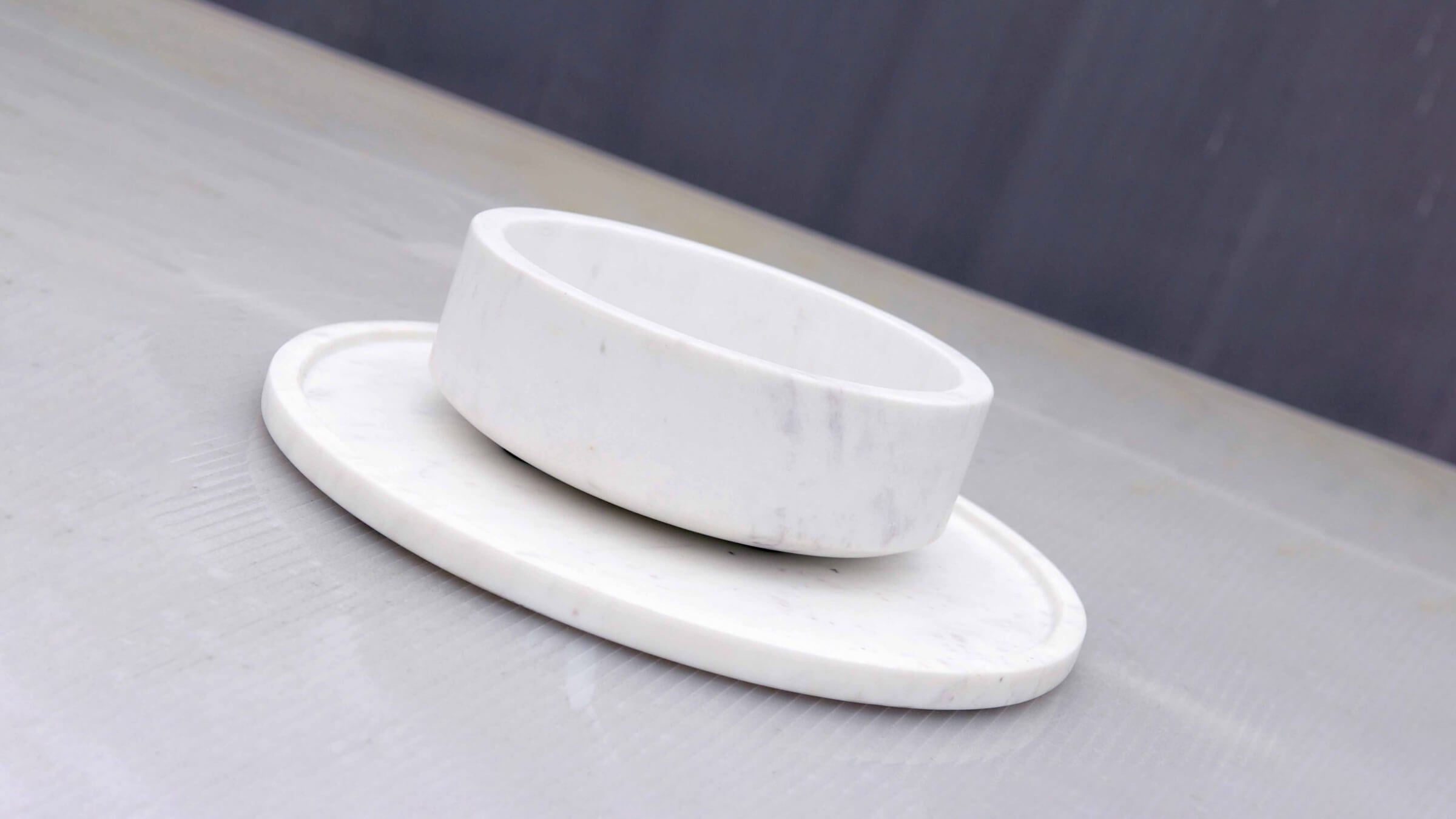 The Forte White Marble Bowl and Tray are objects that make a statement. The pieces are strong and heavy, showcasing the materiality of the white marble body and resulting in luxurious and classic items that are both stylish and functional. The bowl, available in three sizes, and the tray are each versatile and adaptable to many rooms in the home. The simple and classic shapes of the bowl and tray make the pieces suited to a multitude of purposes, whether used as an accessory in a dining room, to display fruit, to serve items such as bread, to function as catch-alls in homes or offices, and more. The Forte White Marble Bowl and Tray are produced by the Belgian-based design company XLBoom.
