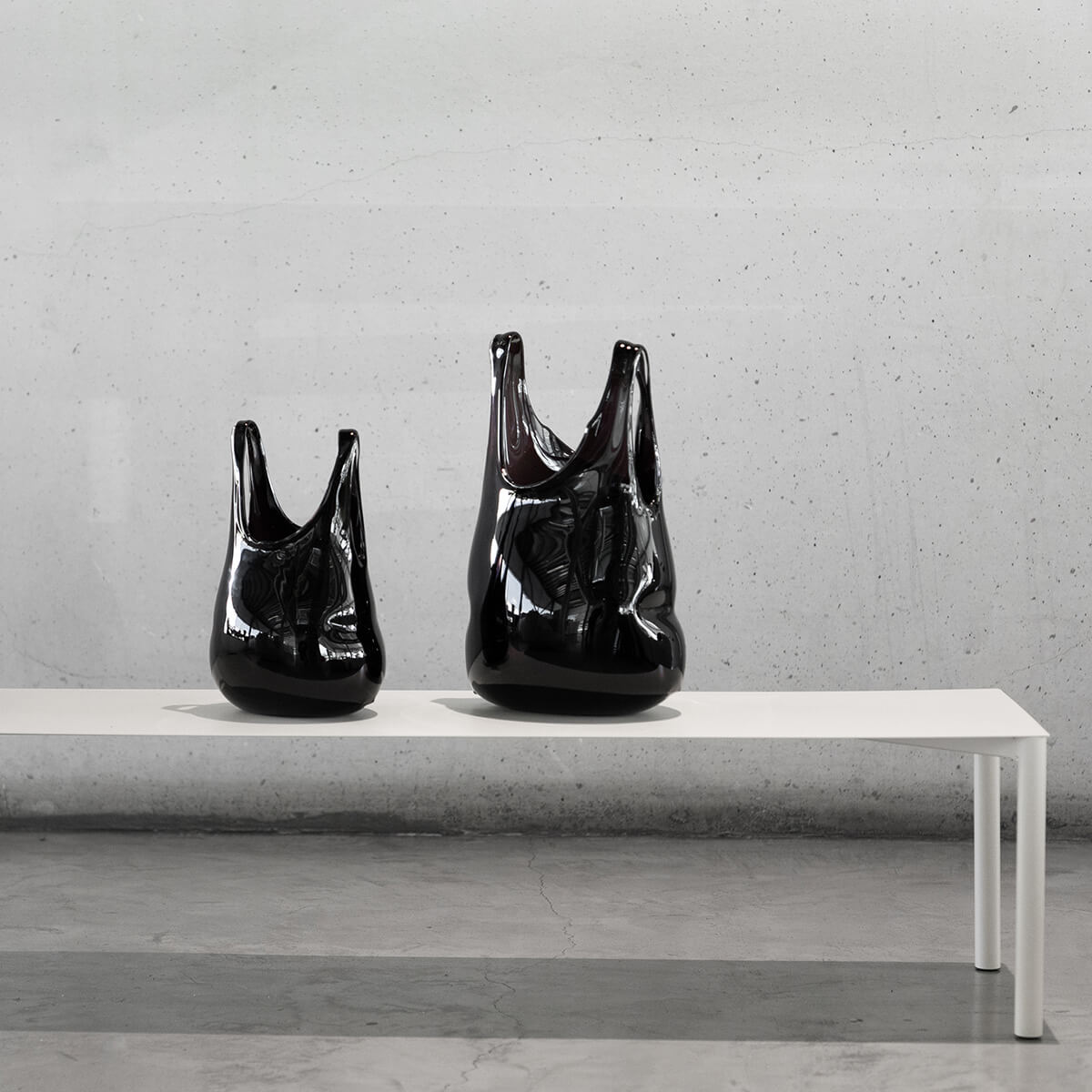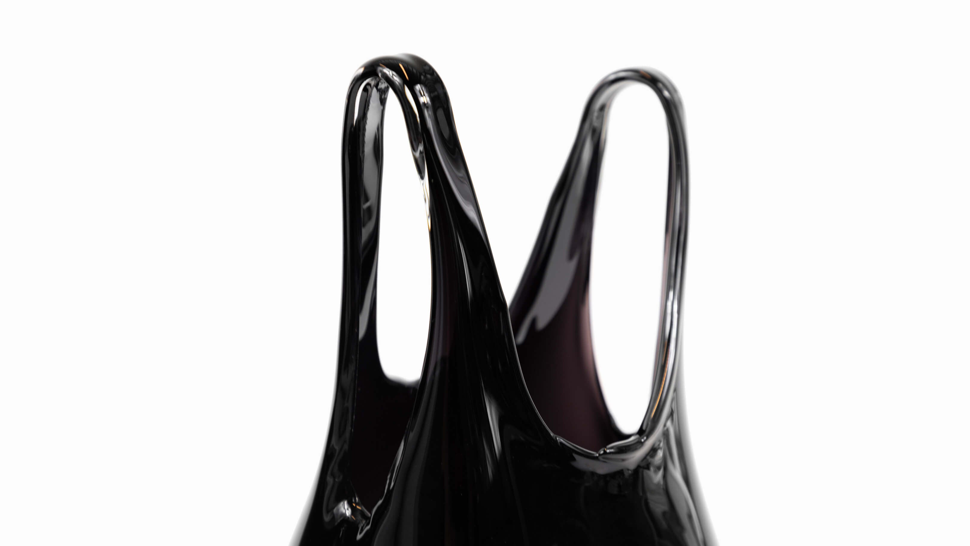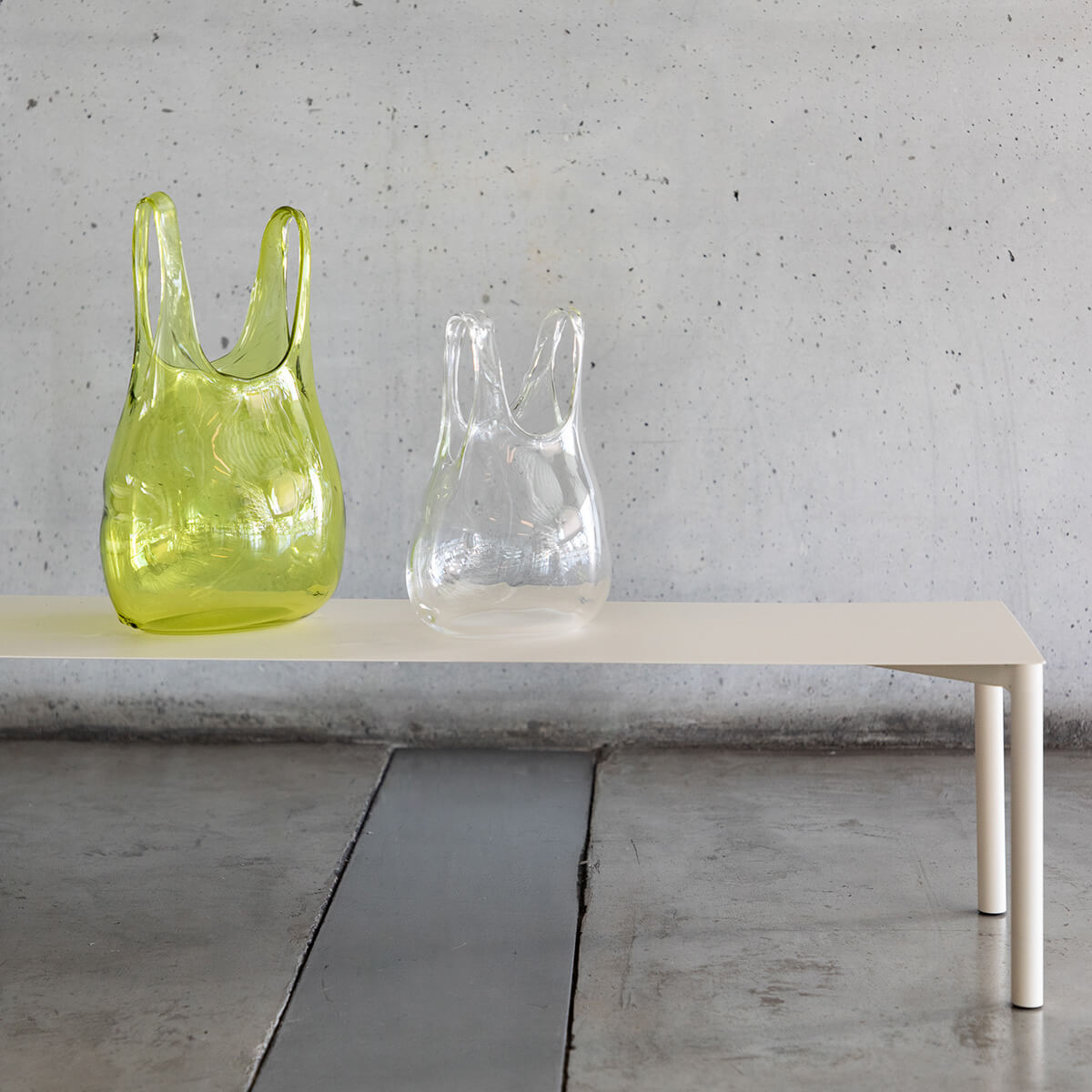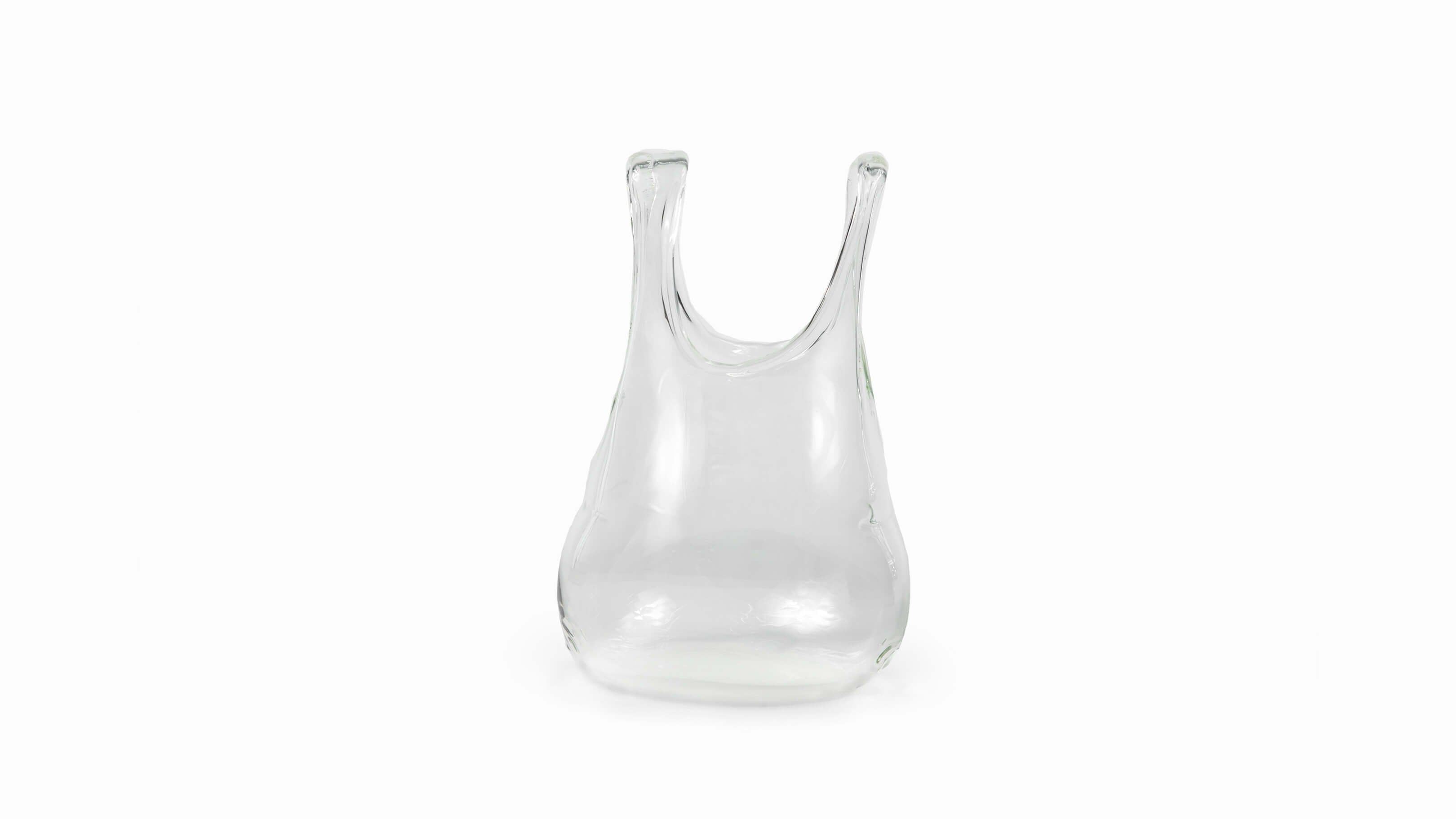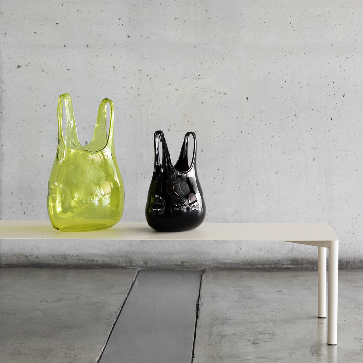 Elegant, statuesque and extraordinary, Atelier de Verre ANVI translates the everyday carrier bag into an object d’art.  Made of blown glass, the Glass Bag straddles both the steadiness of solid matter and the translucent fluidity of the liquid from which it is made.