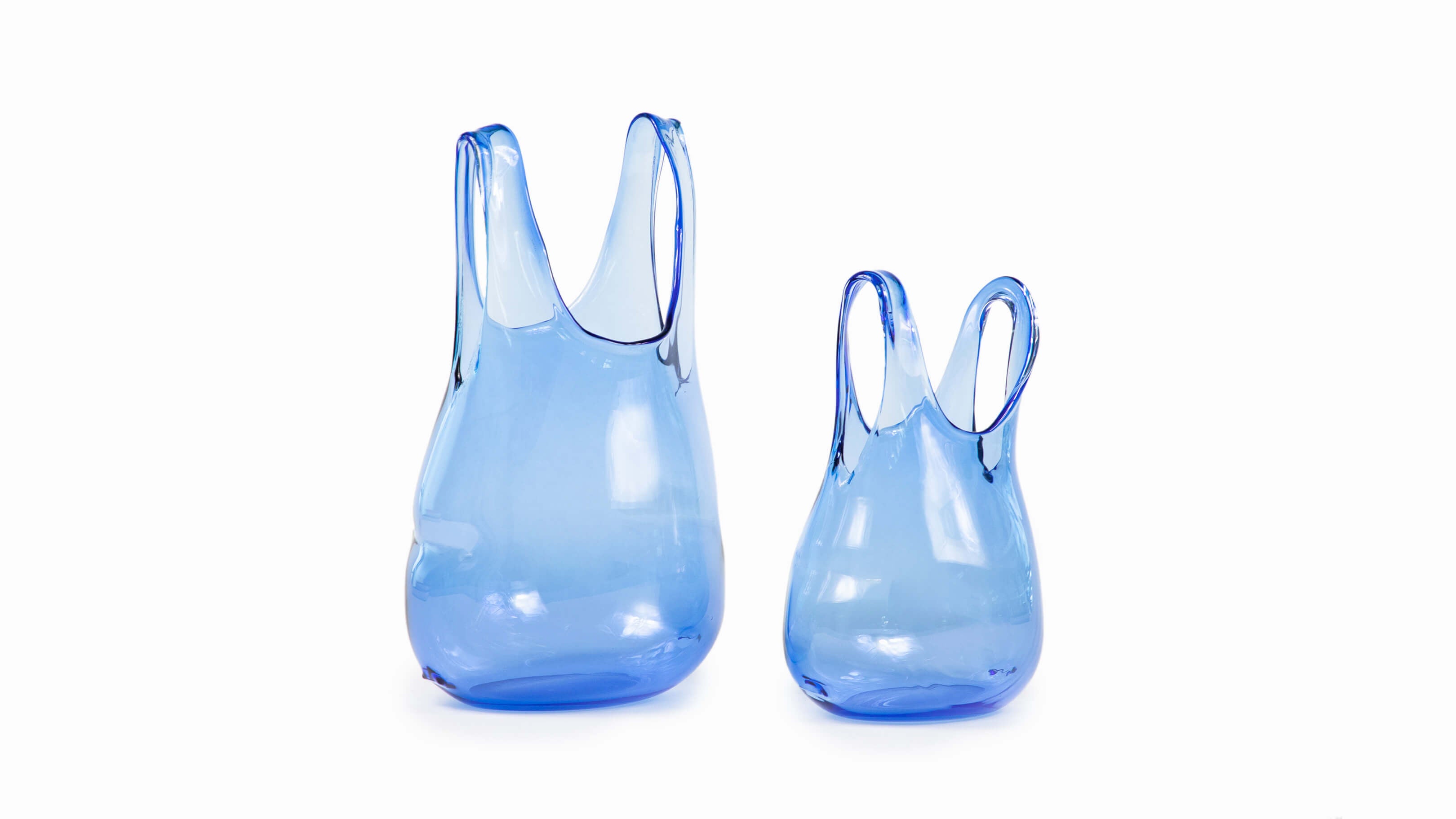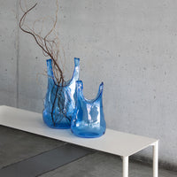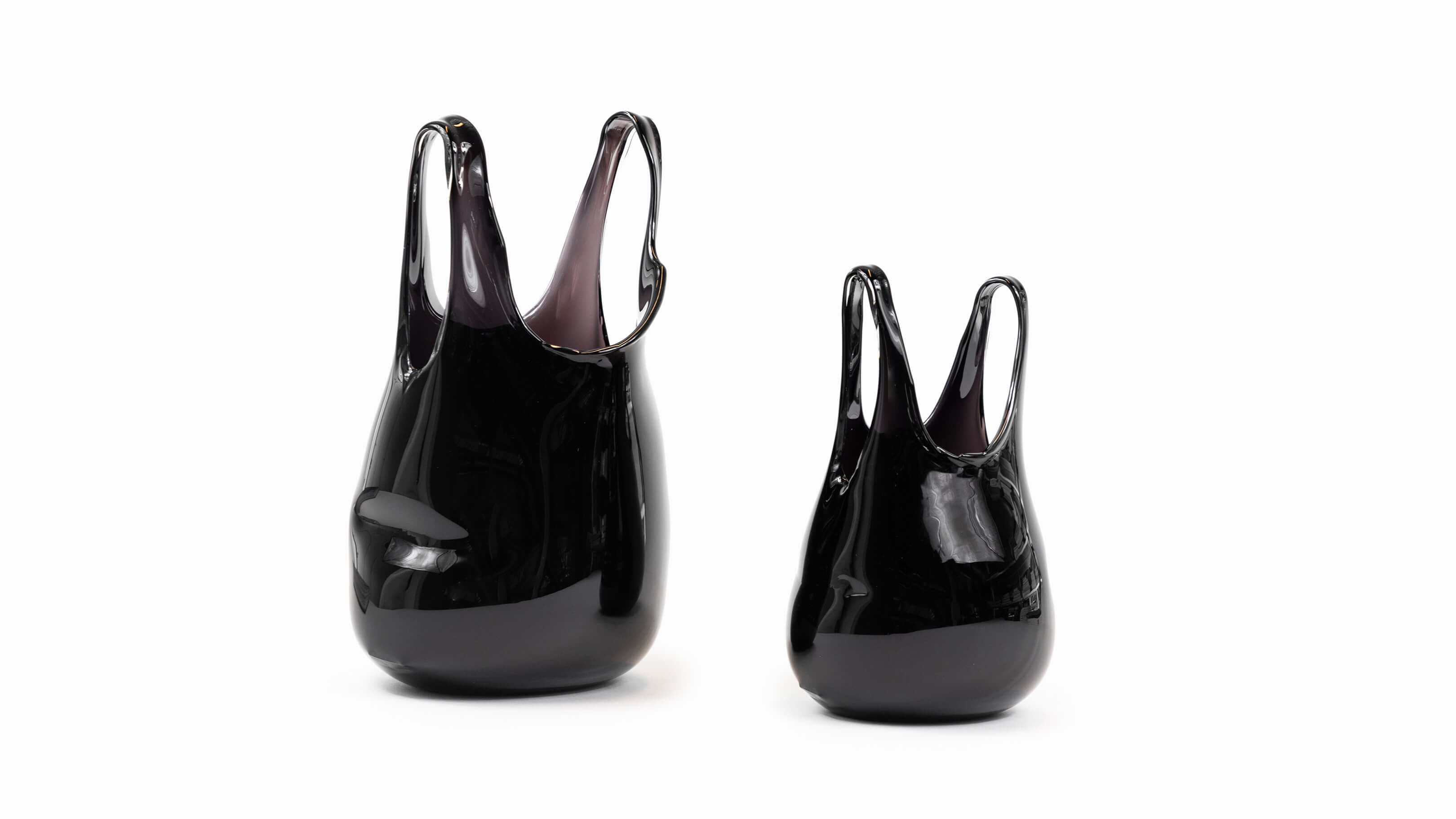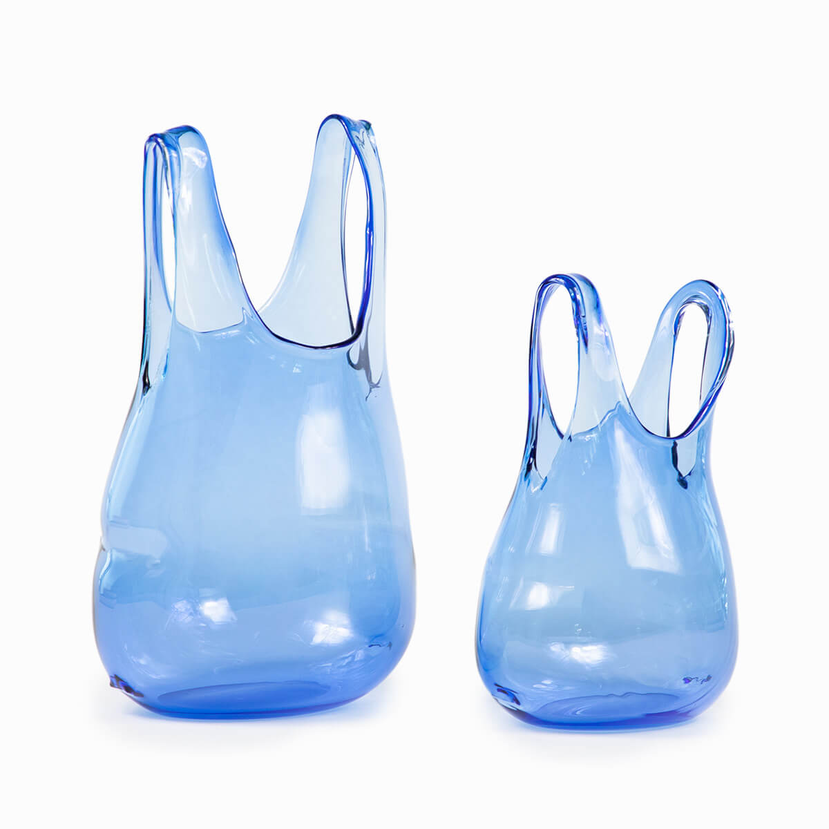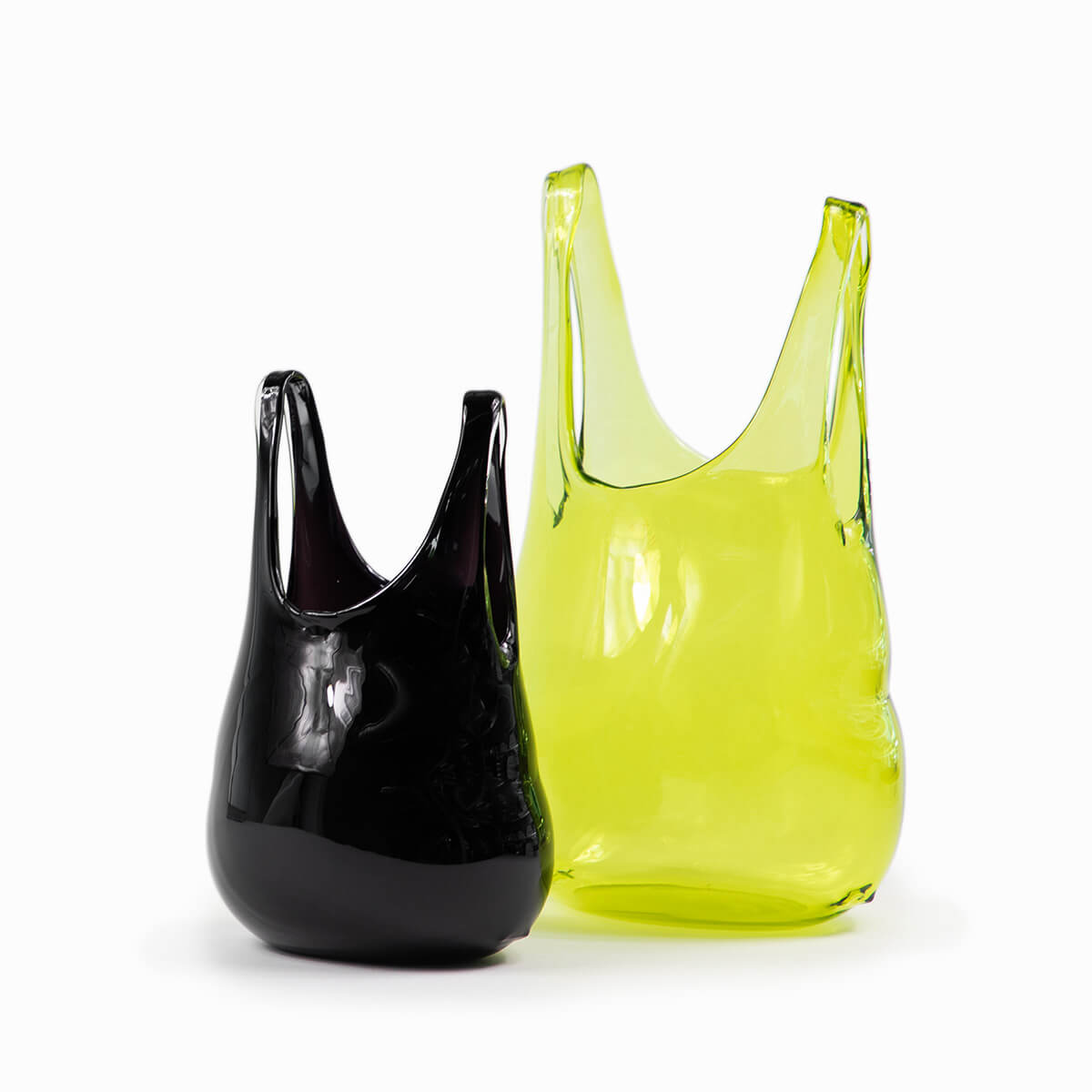 Elegant, statuesque and extraordinary, Atelier de Verre ANVI translates the everyday carrier bag into an object d’art.  Made of blown glass, the Glass Bag straddles both the steadiness of solid matter and the translucent fluidity of the liquid from which it is made.