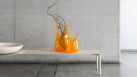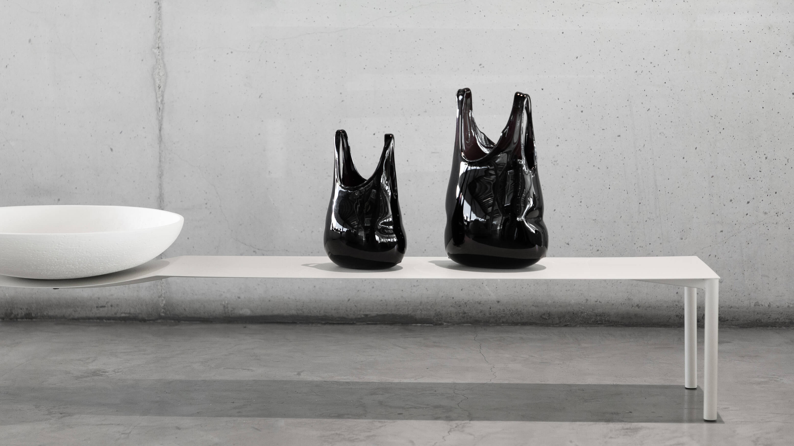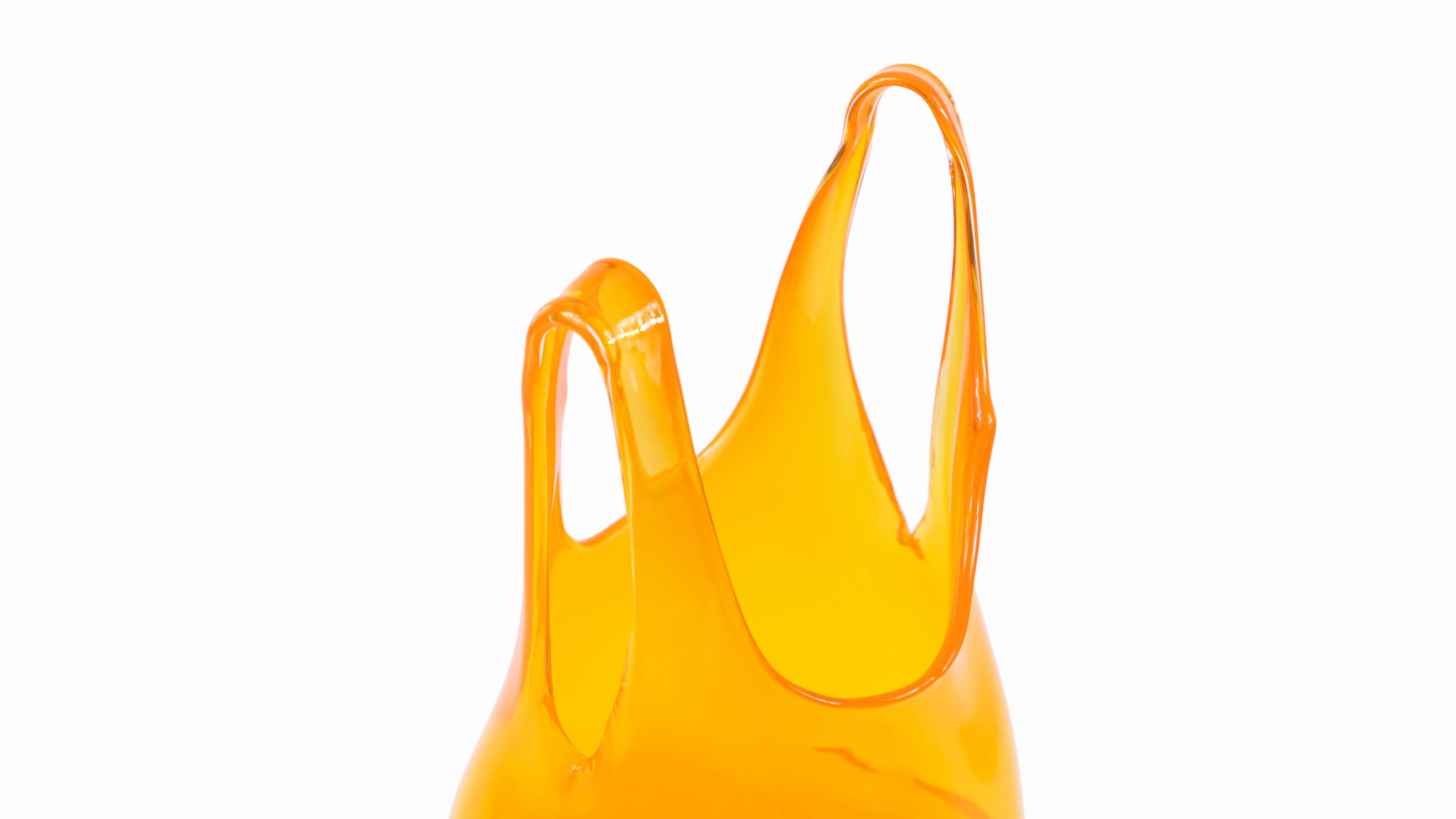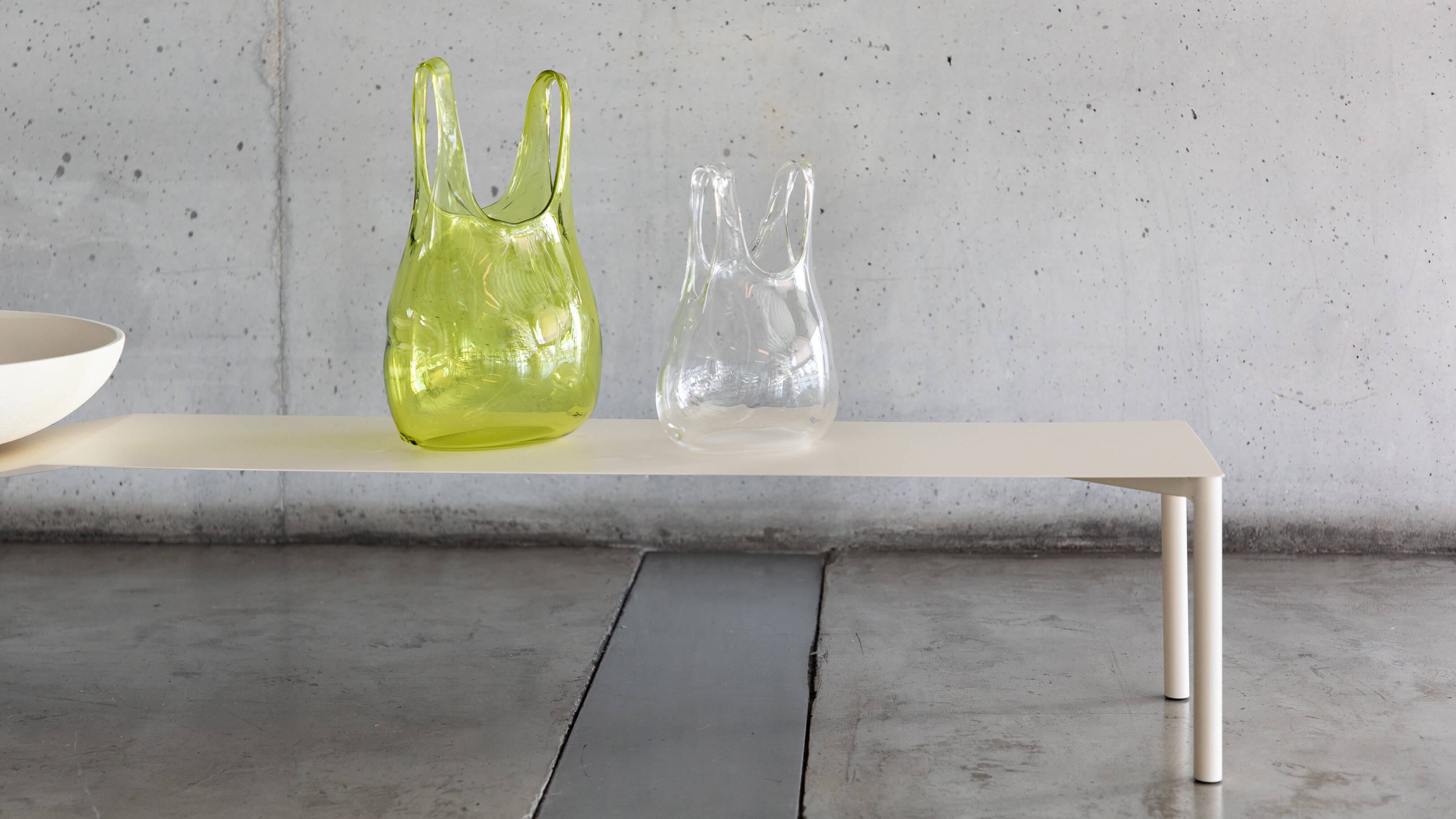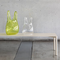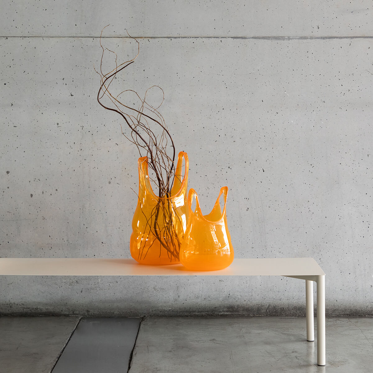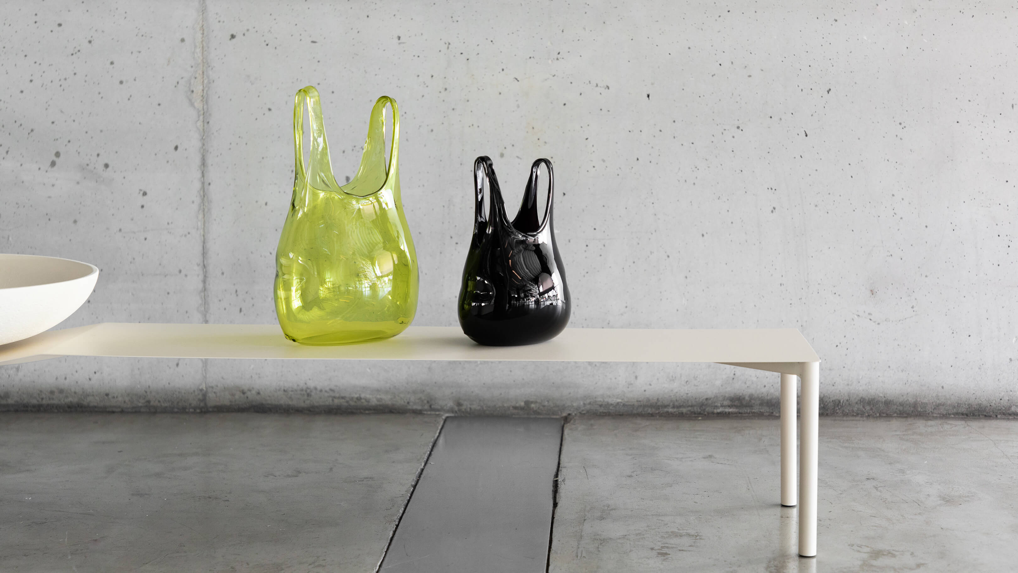 Elegant, statuesque and extraordinary, Atelier de Verre ANVI translates the everyday carrier bag into an object d’art.  Made of blown glass, the Glass Bag straddles both the steadiness of solid matter and the translucent fluidity of the liquid from which it is made.