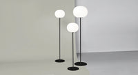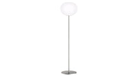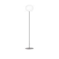 Created by highly skilled craftsmen, the floor lamp's opaline glass diffuser is externally acid-etched and flashed for a pristine surface that evenly diffuses warm, glowing light. The slender aluminum stem is visually light, giving the glass sphere the appearance of floating on its own. Available as a floor lamp in three sizes, the Glo-Ball collection also includes table and suspension fixtures as well as a mini version.