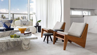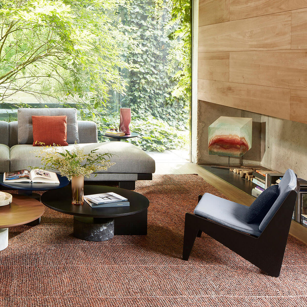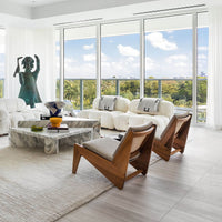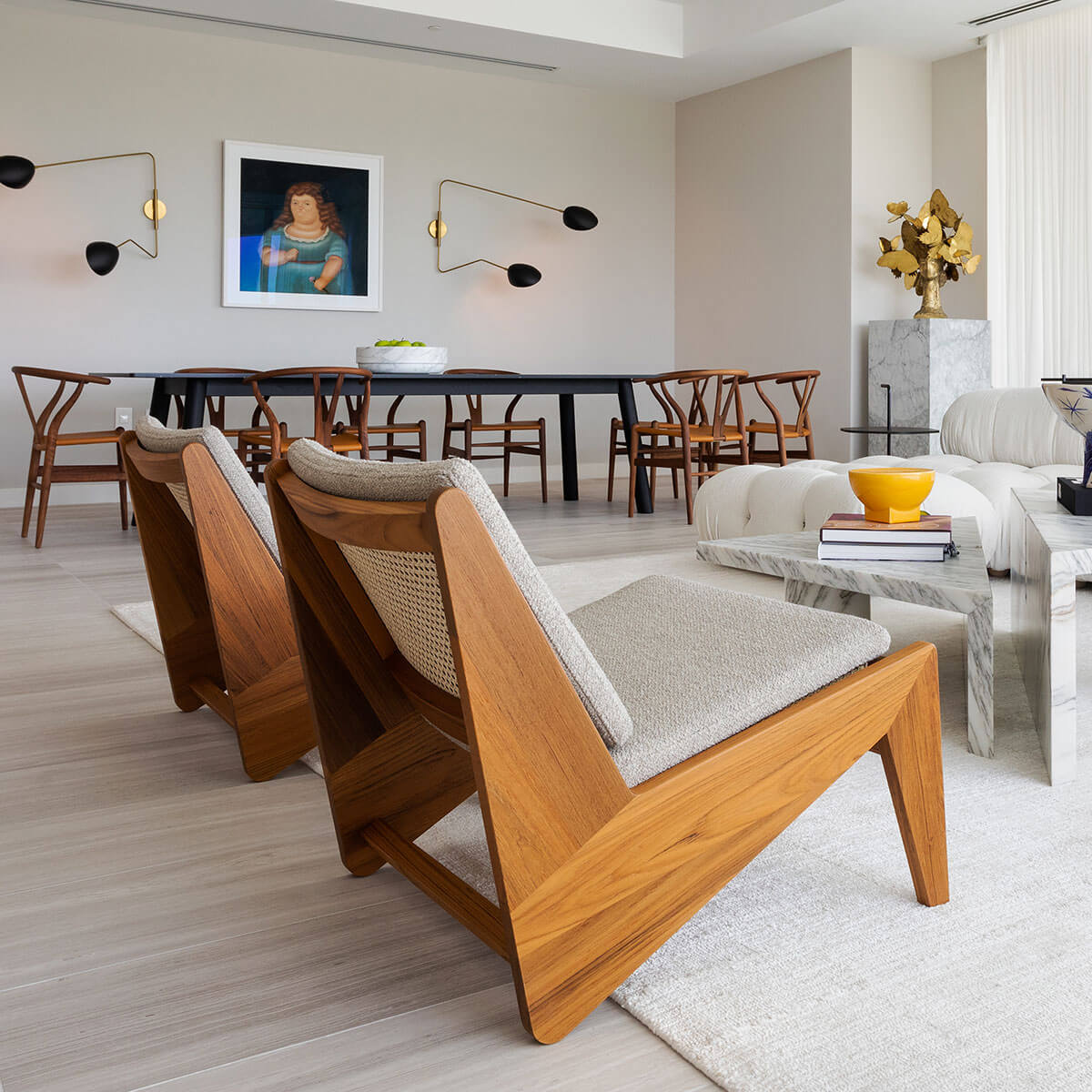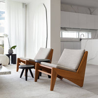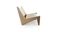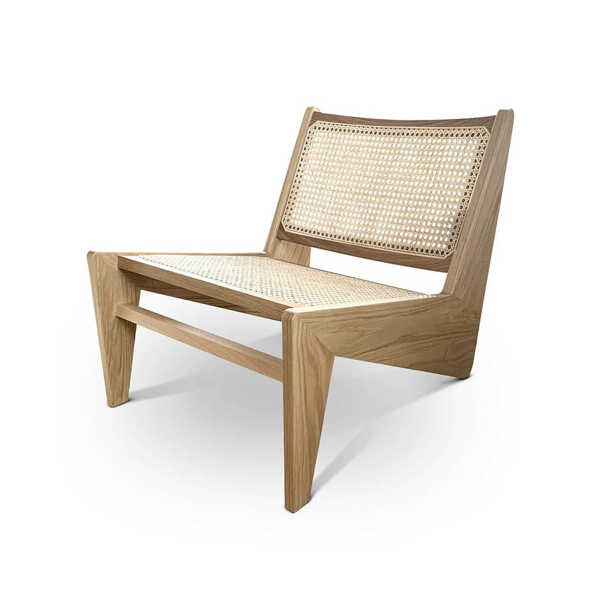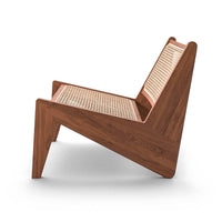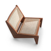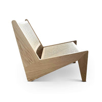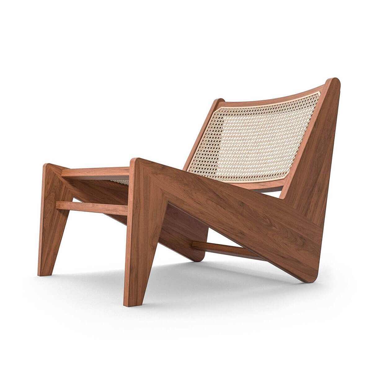 Cassina has extended its investigation into Chandigarh's furniture and introduced the Kanga-roo low armchair to its Hommage à Pierre Jeanneret Collection. This collection is noteworthy for its fundamental shapes and uncomplicated materials, a harmonious blend of modern European principles and traditional Indian culture. The low chair was initially designed for the General Hospital Hall in the city but has since found a place in numerous private homes. Its distinct "Z" shape is formed by a series of three nearly triangular co-planar elements placed in a continuous sequence. The wooden frame is woven with a typical pattern on the seat and backrest.