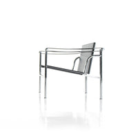 Characterized by its minimalist form, the iconic LC1 Sling Chair by Cassina is reduced to its most essential elements to create a functional yet avant-garde sculpture of polished stainless steel tubing and leather. The classic chair was designed in the late 1920s by celebrated architects Le Corbusier, Pierre Jeanneret, and Charlotte Perriand, who reimagined the potential of industrial materials to create forward-thinking objects for the modern home.