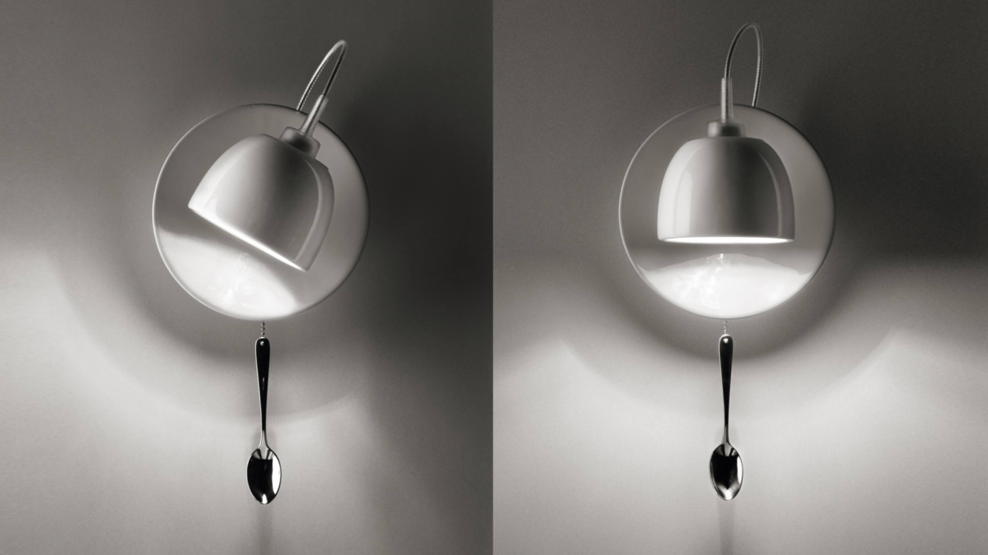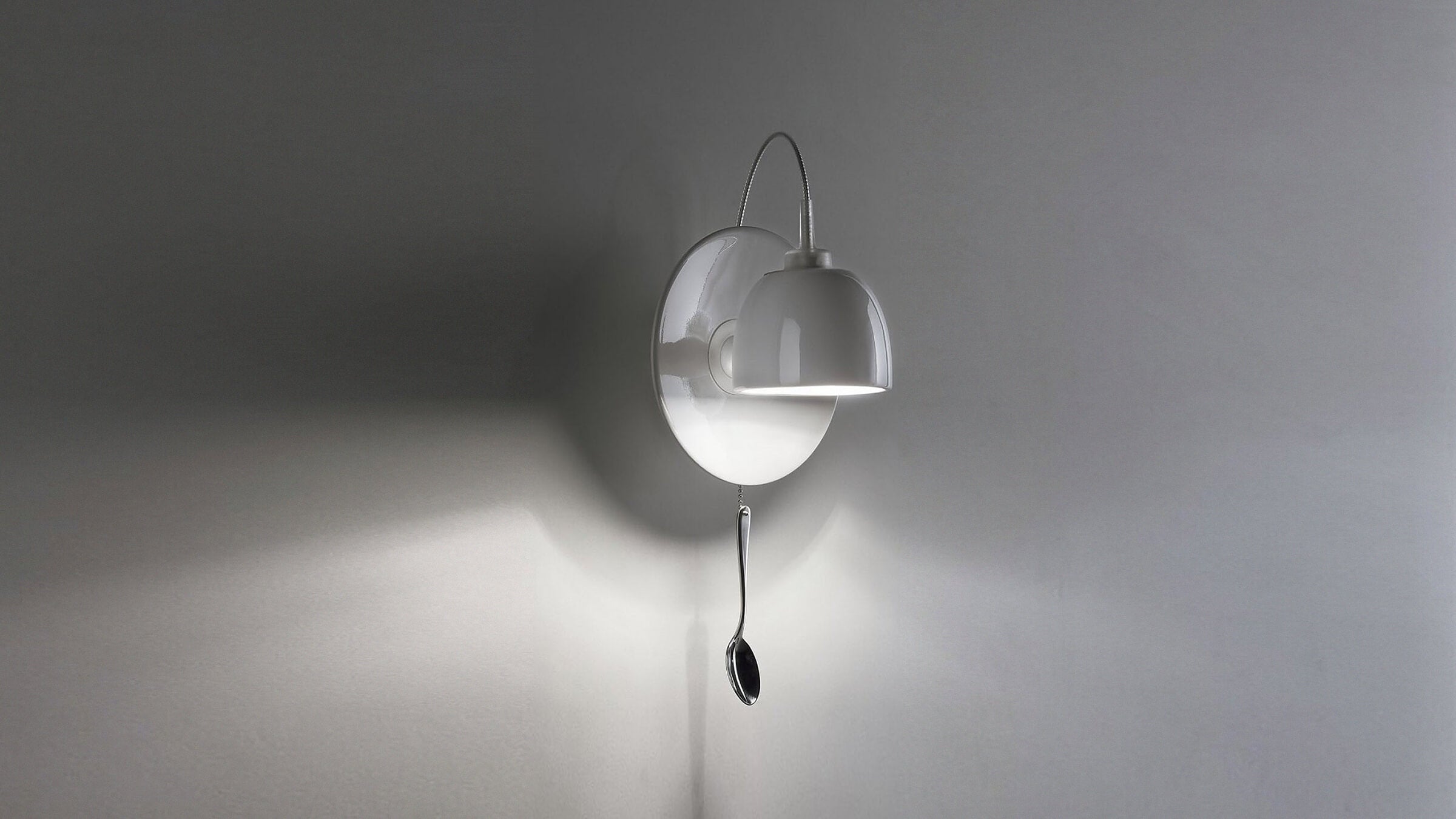 • Light au Lait is a humorous andwhimsical wall lamp made from a cup, saucer and spoon
