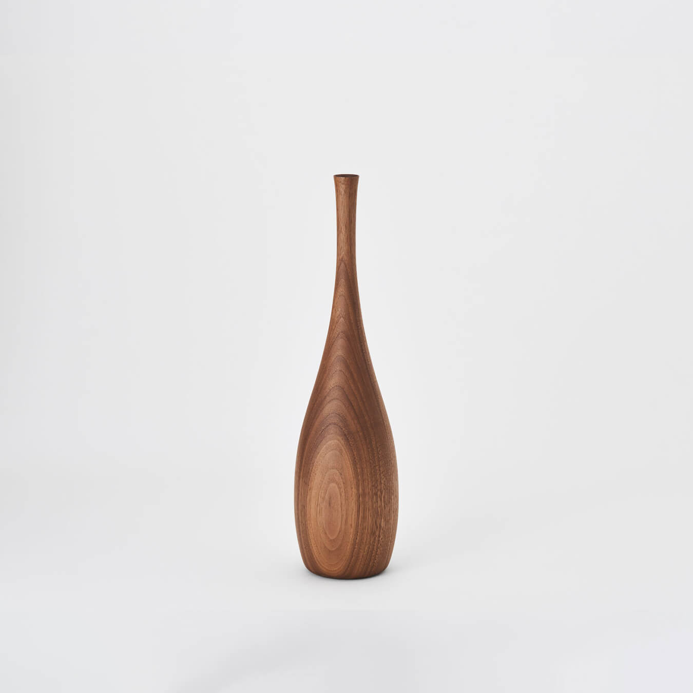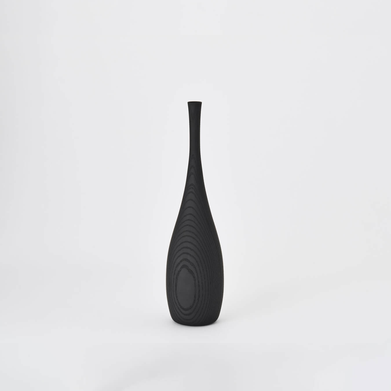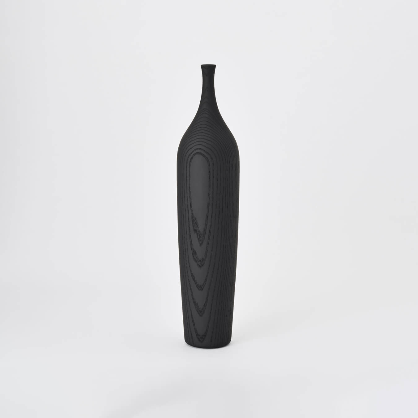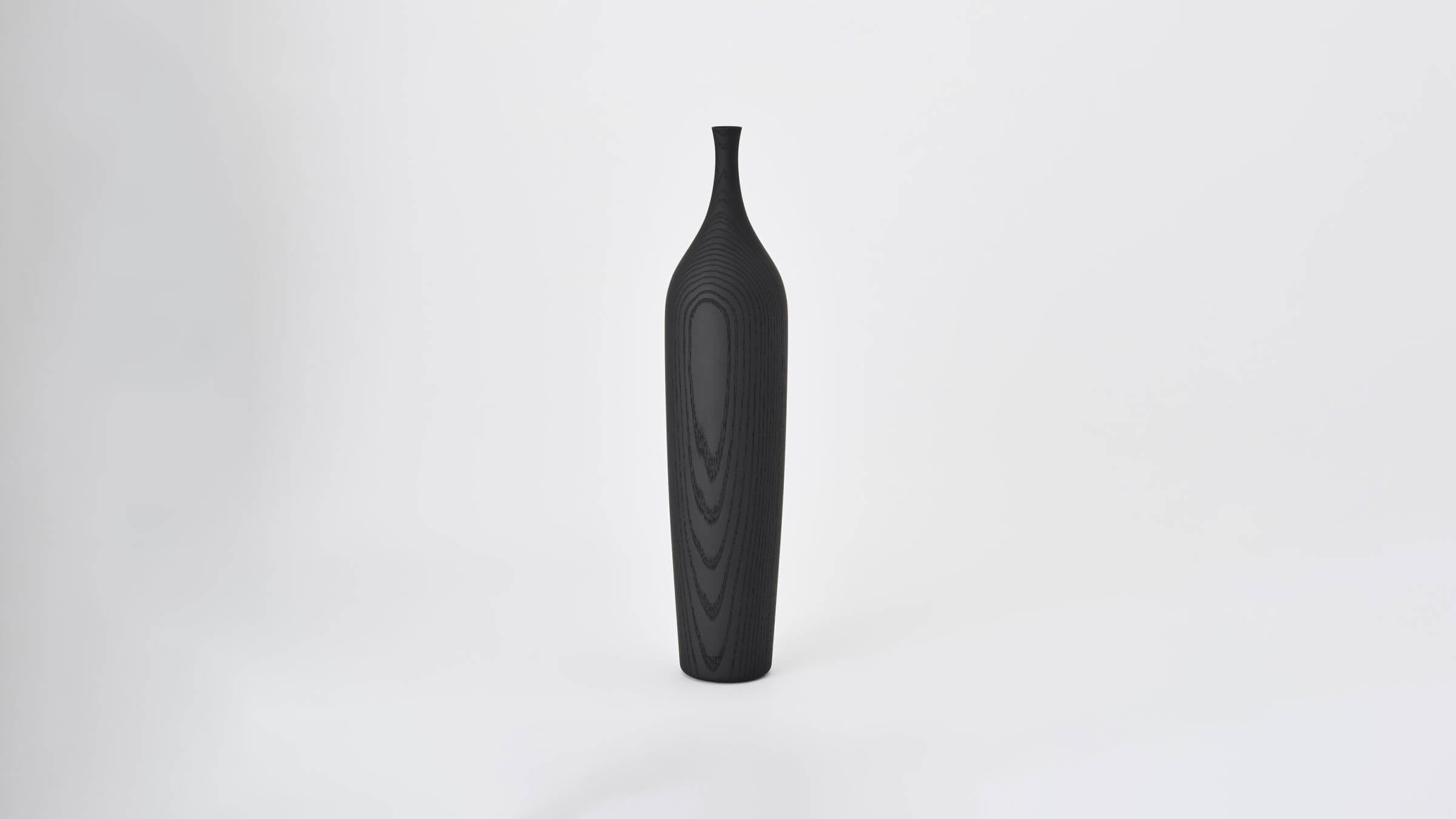 The Linea Vases by Mugen Mosou combine classic shapes with rich, grained wood and smooth curves. Available in both black ash and walnut, the vases come in three shapes and sizes.