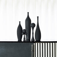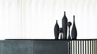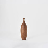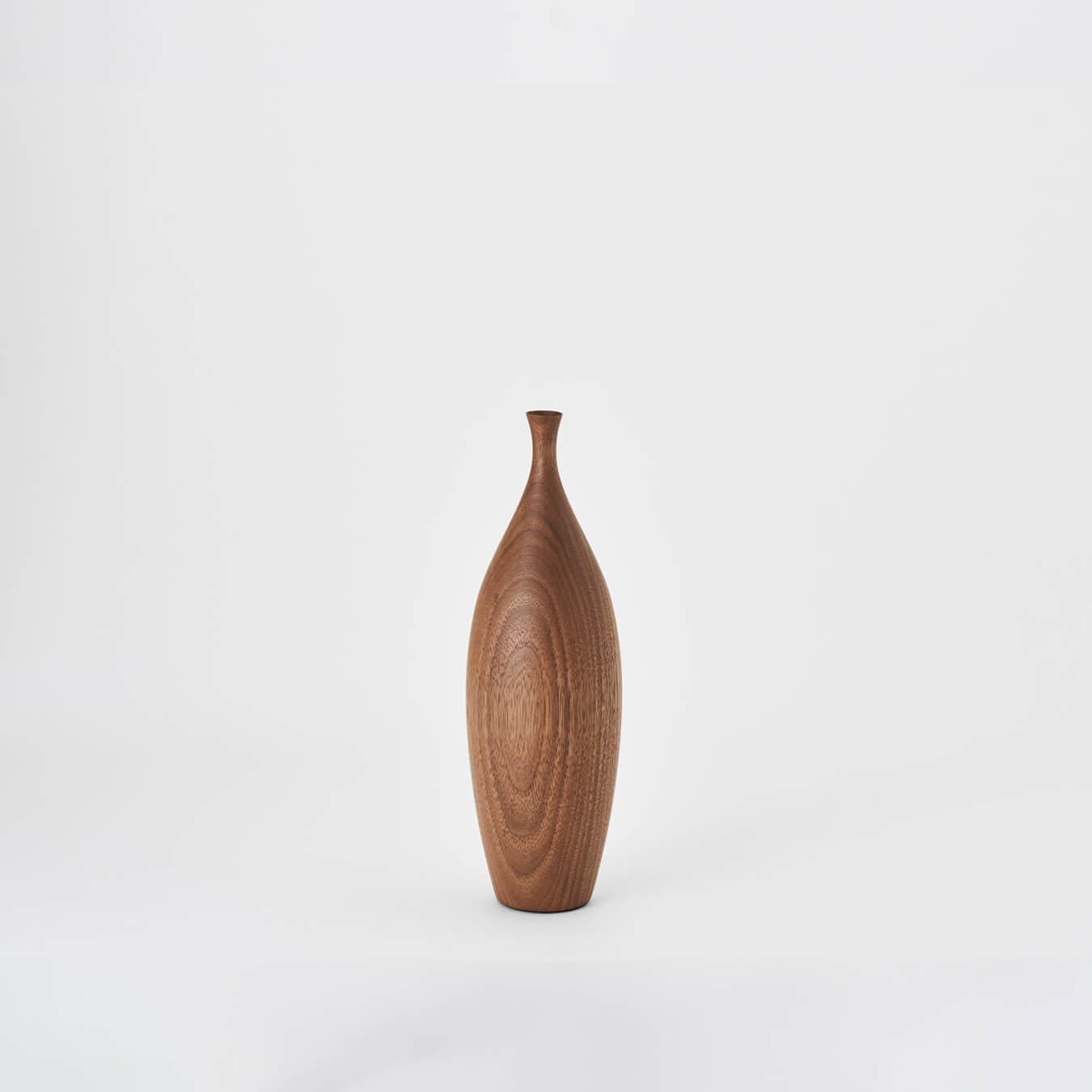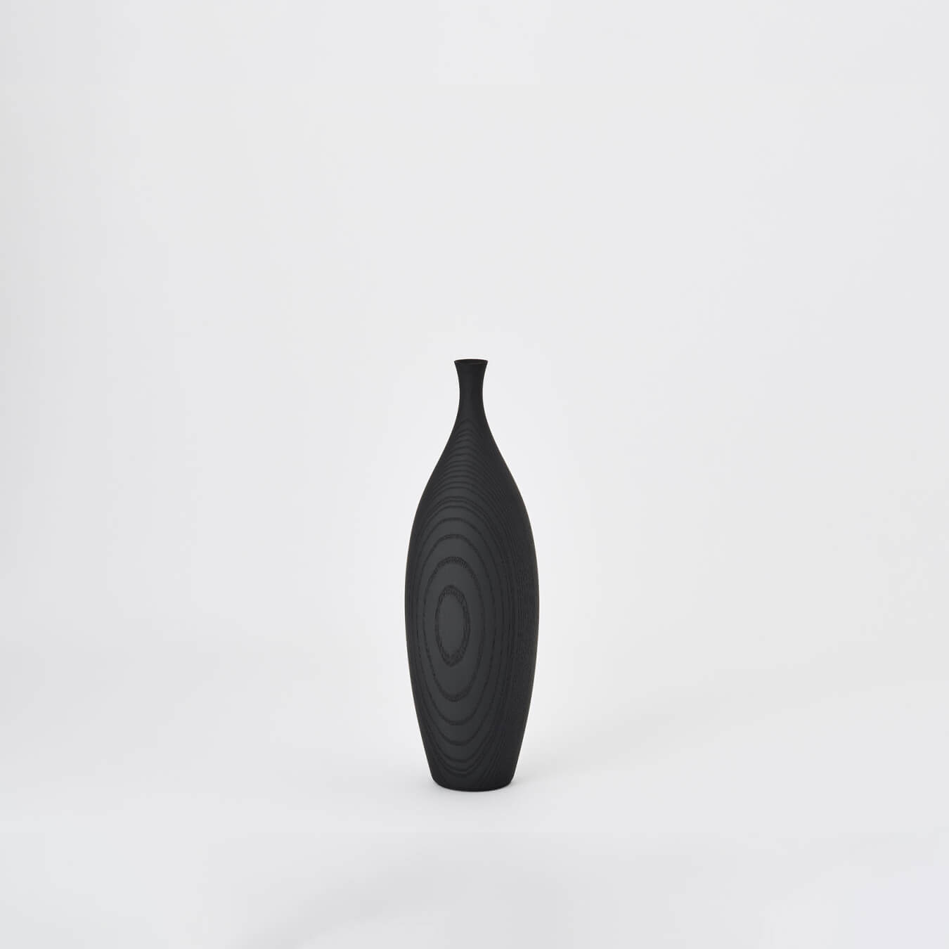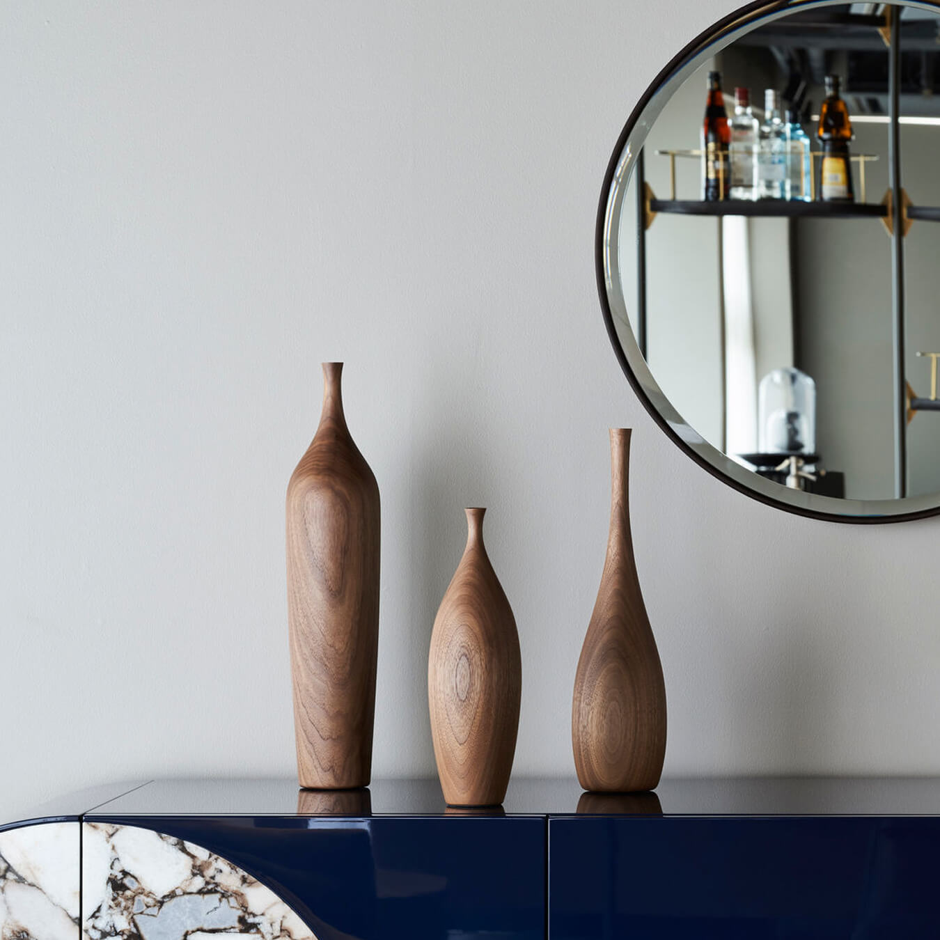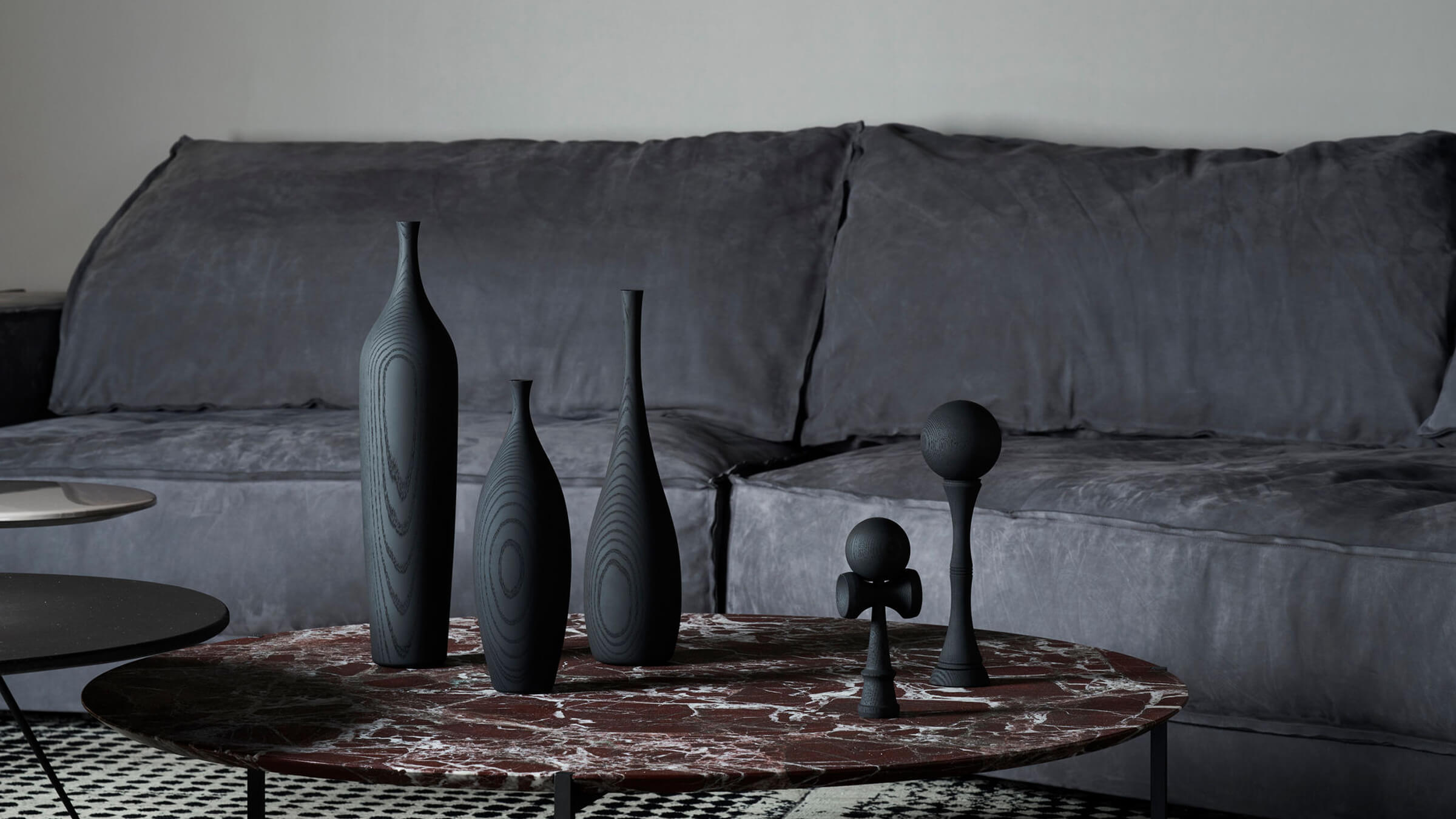 The Linea Vases by Mugen Mosou combine classic shapes with rich, grained wood and smooth curves. Available in both black ash and walnut, the vases come in three shapes and sizes.
