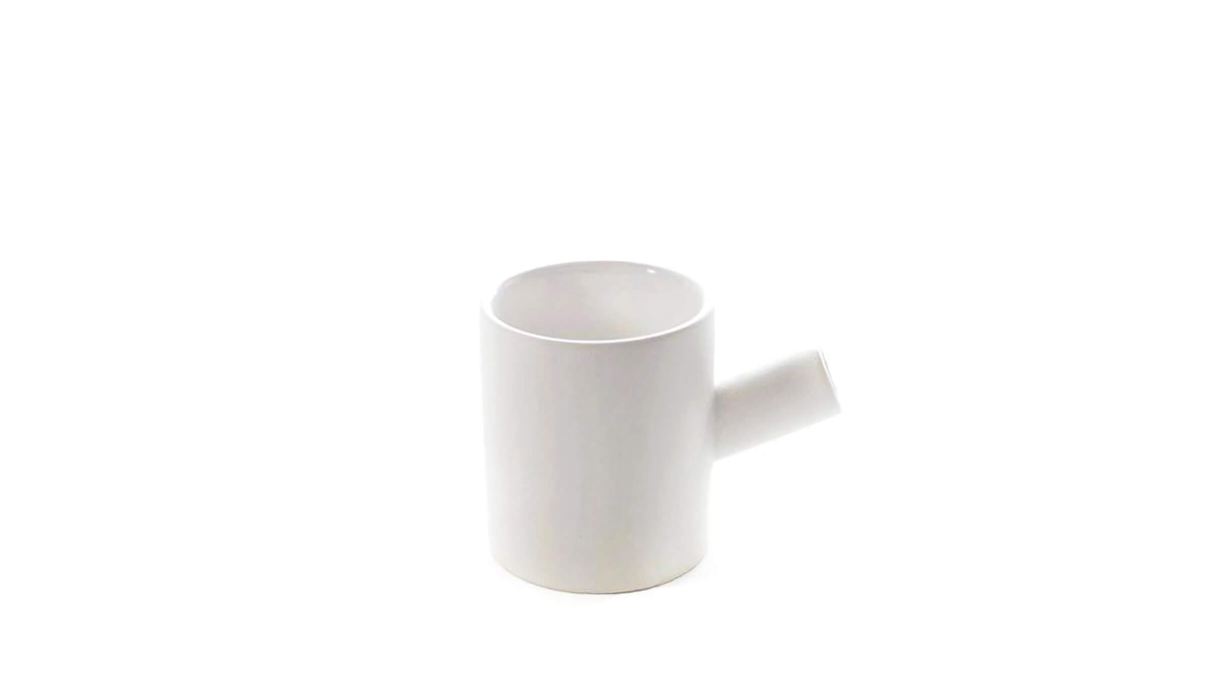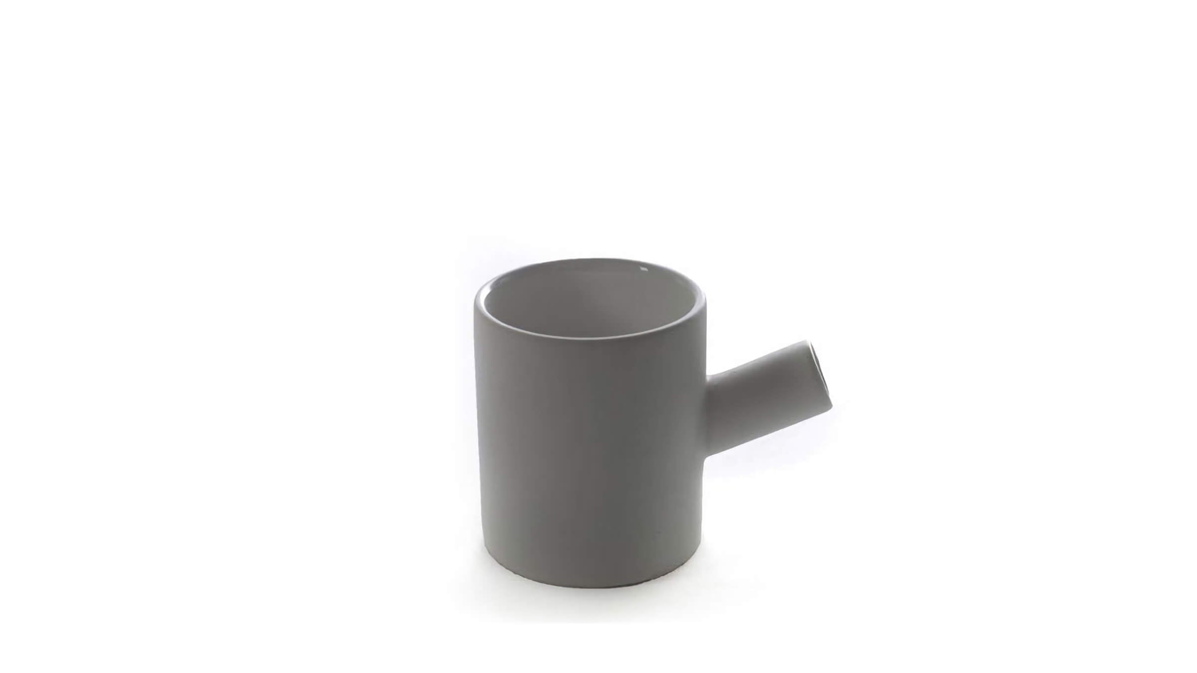 The cup eschews the superfluous to focus on the core elements of the object: the round - yet cylindrical - container and a most unique interpretation of handles realized in tubular forms.