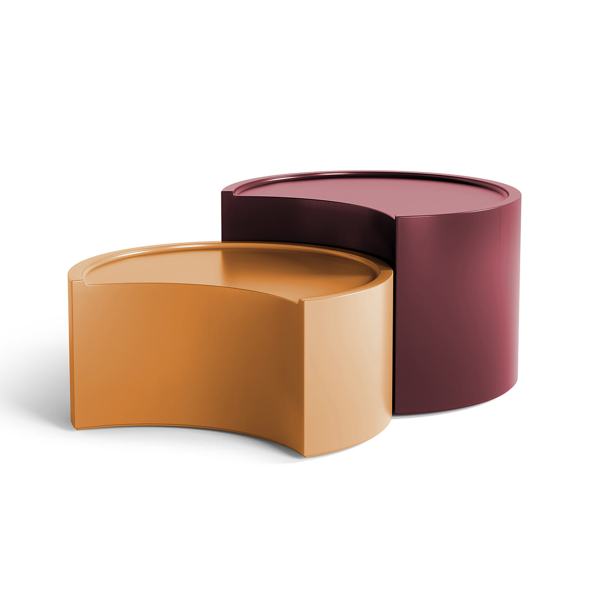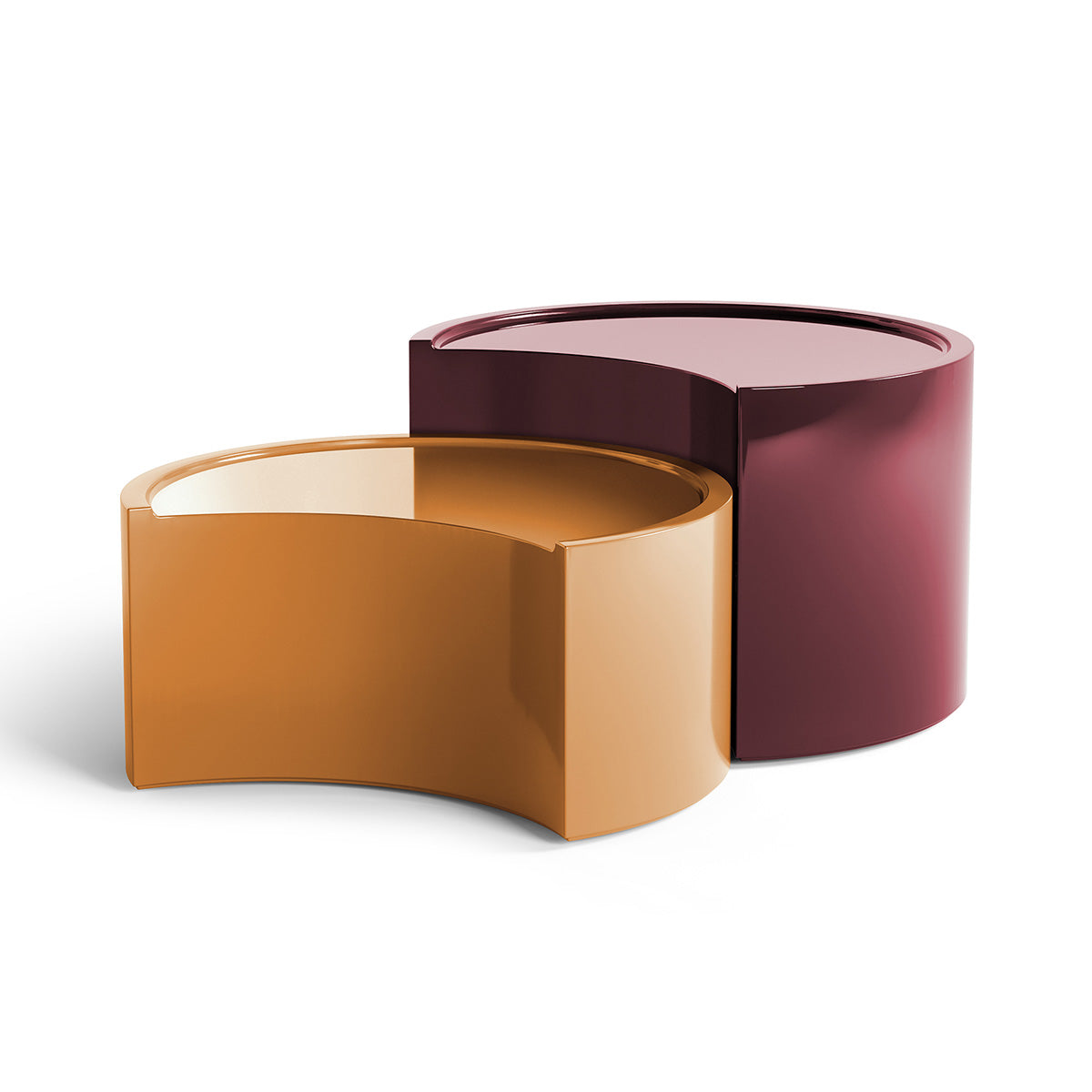 The Low Bol is a sculptural small table introduced in 2025 by Zaven for Zanotta, reinterpreting the signature concave leg motif of the Bol collection into a monolithic form. Crafted from rigid polyurethane with a matt or glossy lacquered finish, it is available in tactile tones like talc, hemp, caramel, amaranth and espresso. Offered in two heights (60 × 38 cm and 60 × 28 cm), Low Bol tables can be used alone or composed together to create dynamic groupings. These versatile forms bring both functional surface and bold presence to modern interiors.