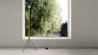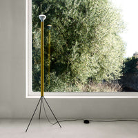 The Luminator Floor Lamp, designed by Achille and Pier Giacomo Castiglioni in 1954, is a true example of minimalist elegance. Featuring a slender painted iron stem, it provides beautifully indirect light, supported by galvanized metal tripod legs that offer stability while maintaining a sleek profile. Staying true to the Castiglioni brothers' philosophy of functional simplicity, the Luminator is available in its original anthracite as well as vibrant color options like yellow, red, white, and light blue. This iconic floor lamp includes an integrated switch and is fully compatible with LED bulbs, making it a timeless yet modern lighting solution.