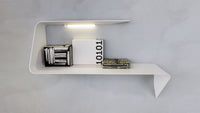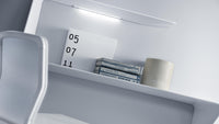 Available in left and right oriented versions, the shelf is perfect for use in small spaces.