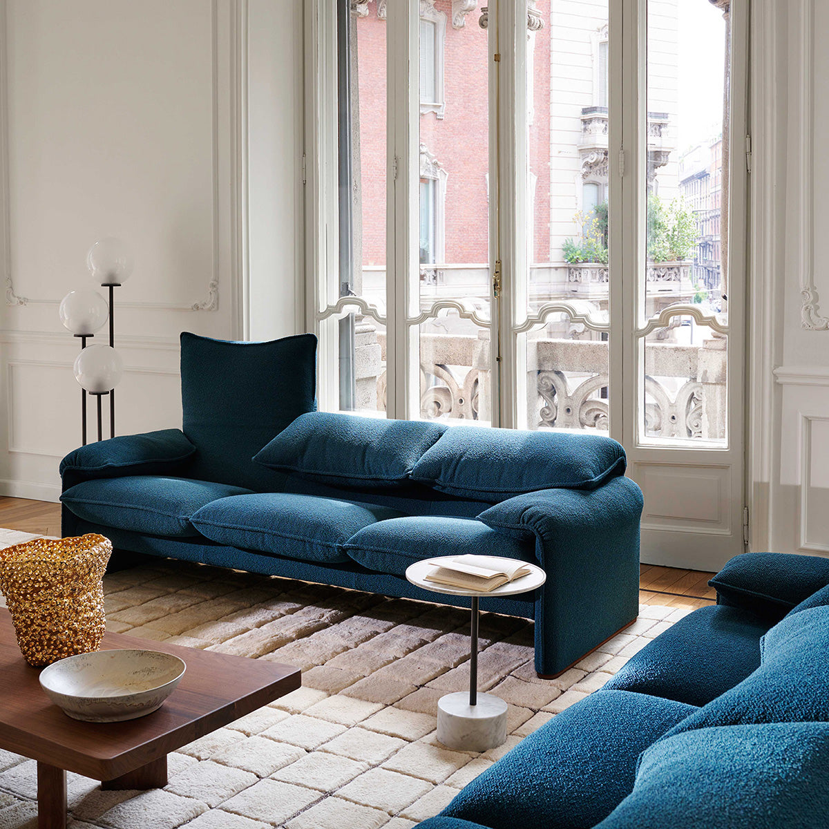 A true masterpiece of design and craftsmanship, this sofa embodies the perfect blend of Italian artistry and functional innovation. Its enveloping contours and soft padding provide exceptional comfort, while the integrated chain mechanism in the foam cushion allows for easy backrest adjustment. The subtle brilliance of the adjustable headrest and the sofa’s clean, reassuring aesthetic reflect the timeless elegance of Vico Magistretti's design. This internationally beloved piece offers both style and unparalleled comfort for any modern living space.