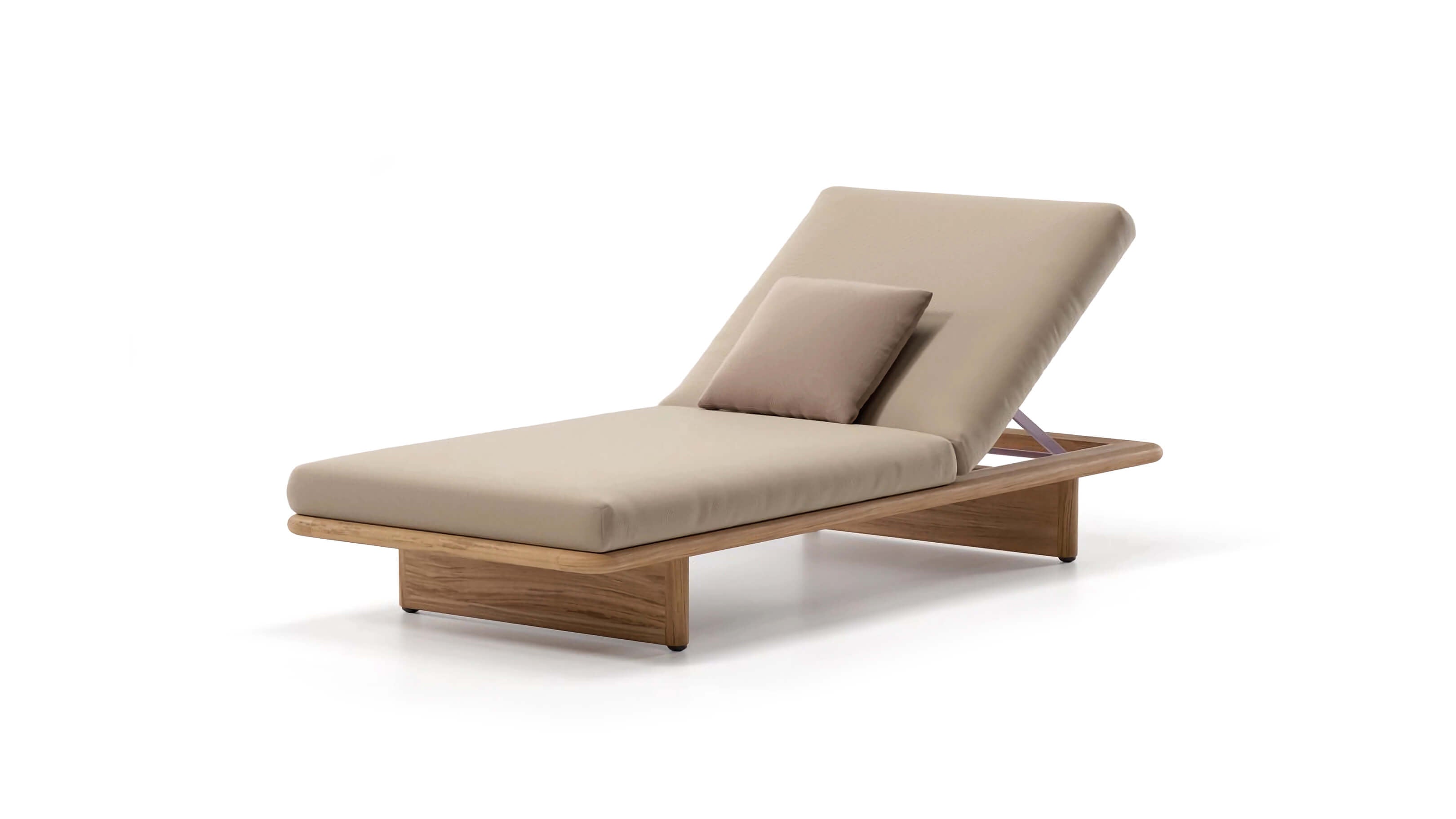With a frame available in natural, eco-friendly teak or in scratch-resistant, sturdy aluminum painted with the choice of a variety of colors, and cushions that come in 34 color options, the Mesh Deckchair is weather-resistant, durable, and visually charming, ready to arrest any outdoor living environment with the sophistication of clean lines and the steadiness of architecturally rich form, a unity of striking composition and enchanting tactility.