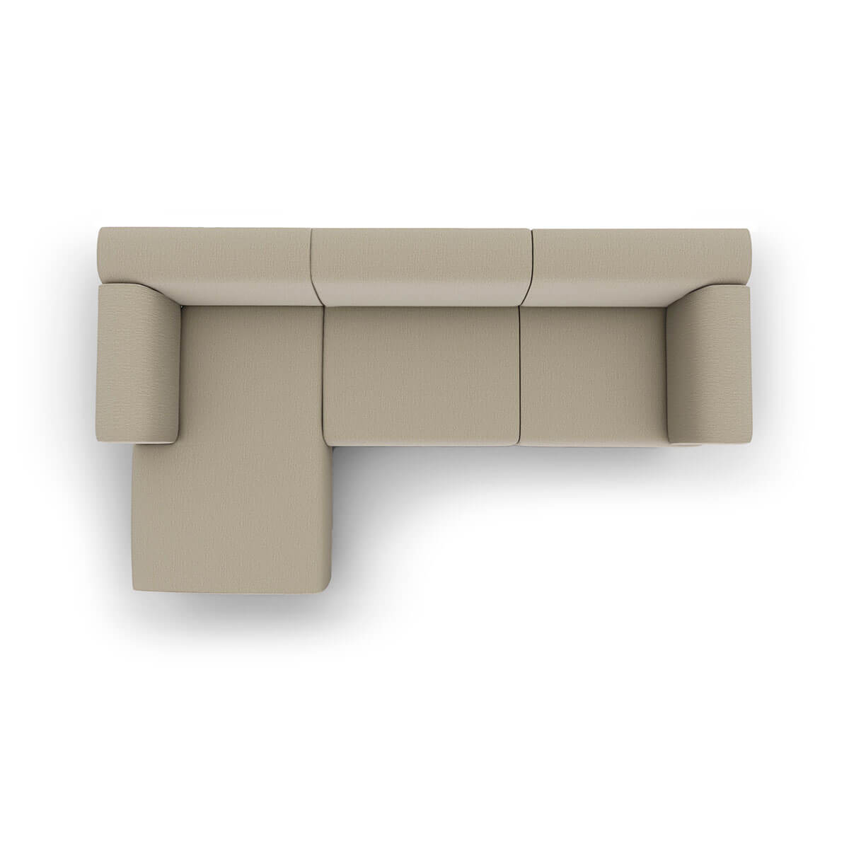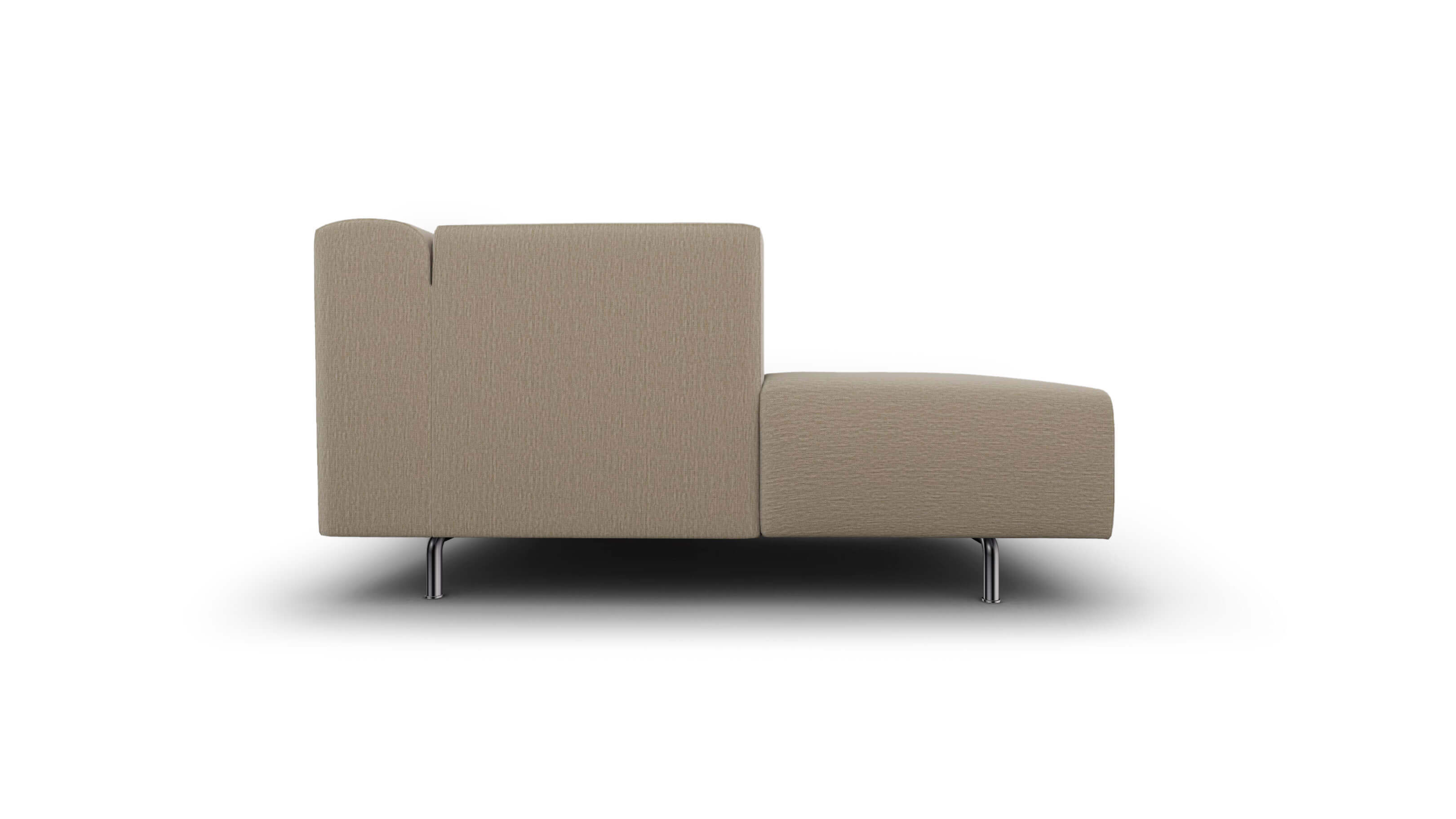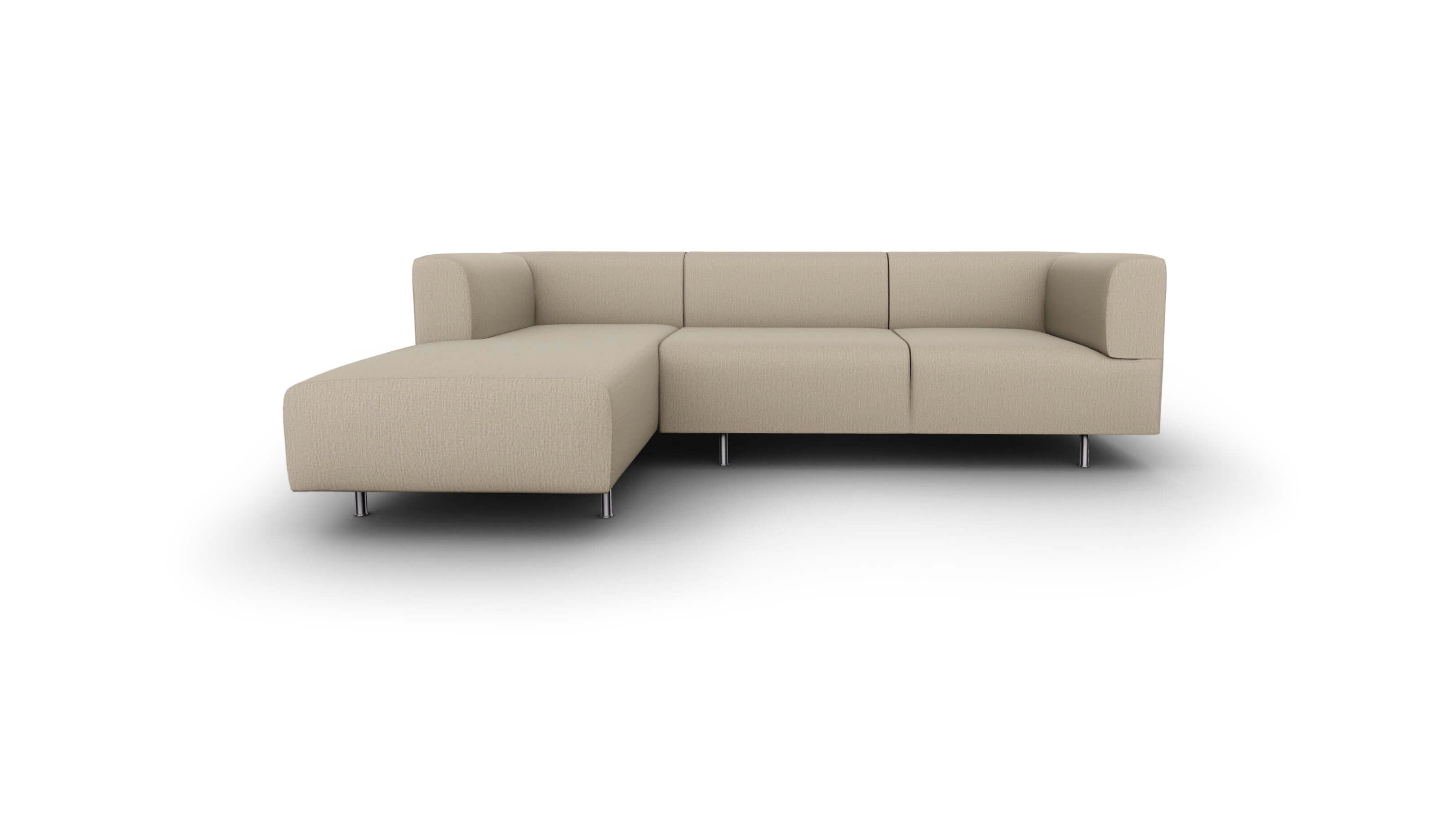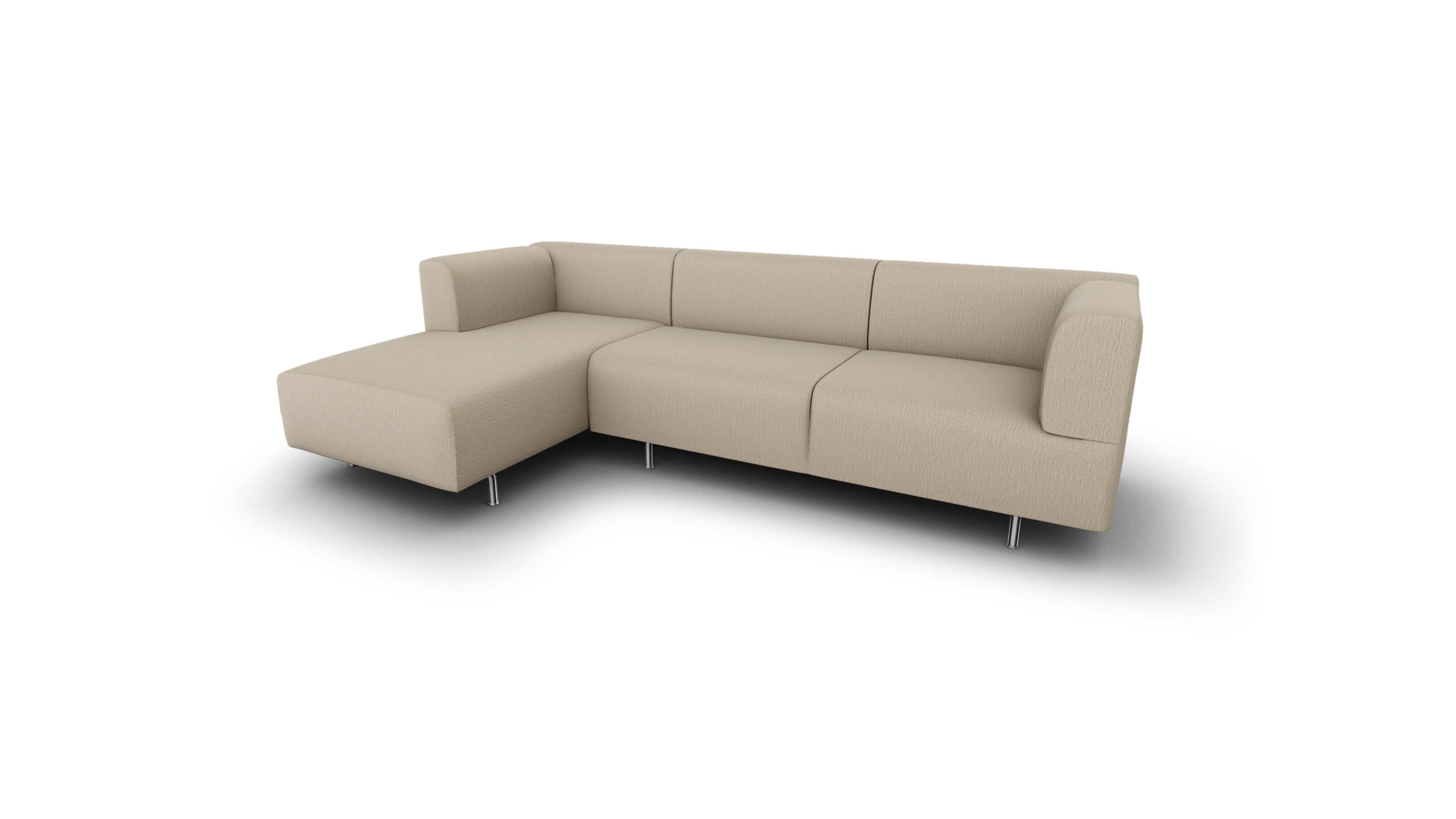 Currently available in a 3 seat composition with chaise lounge right armrest in Savana 13E391 light grey fabric.
