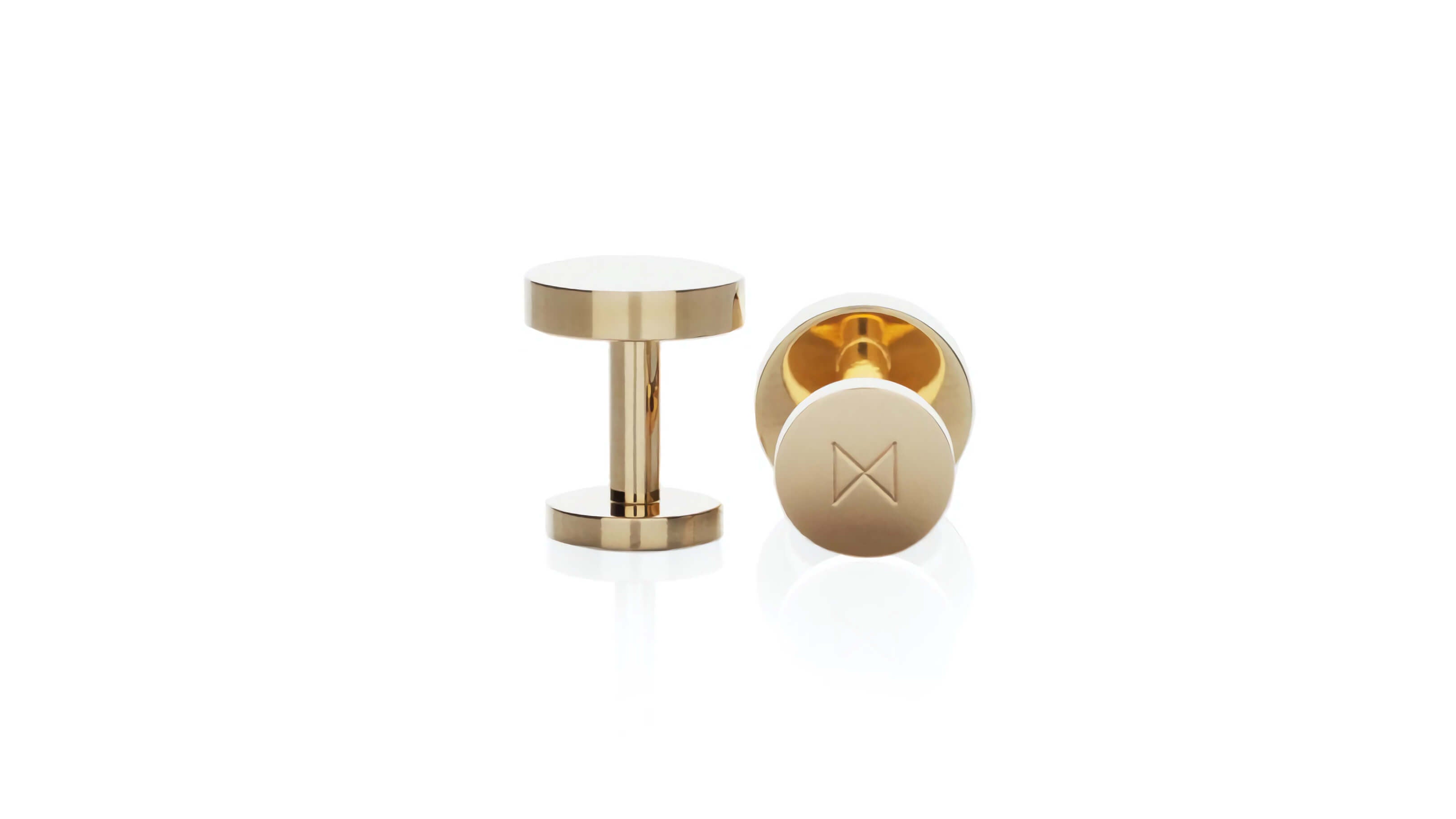 Stripped to the most essential form, these cuff links in polished brass or black nickel are a minimal version of the men’s wardrobe staple.