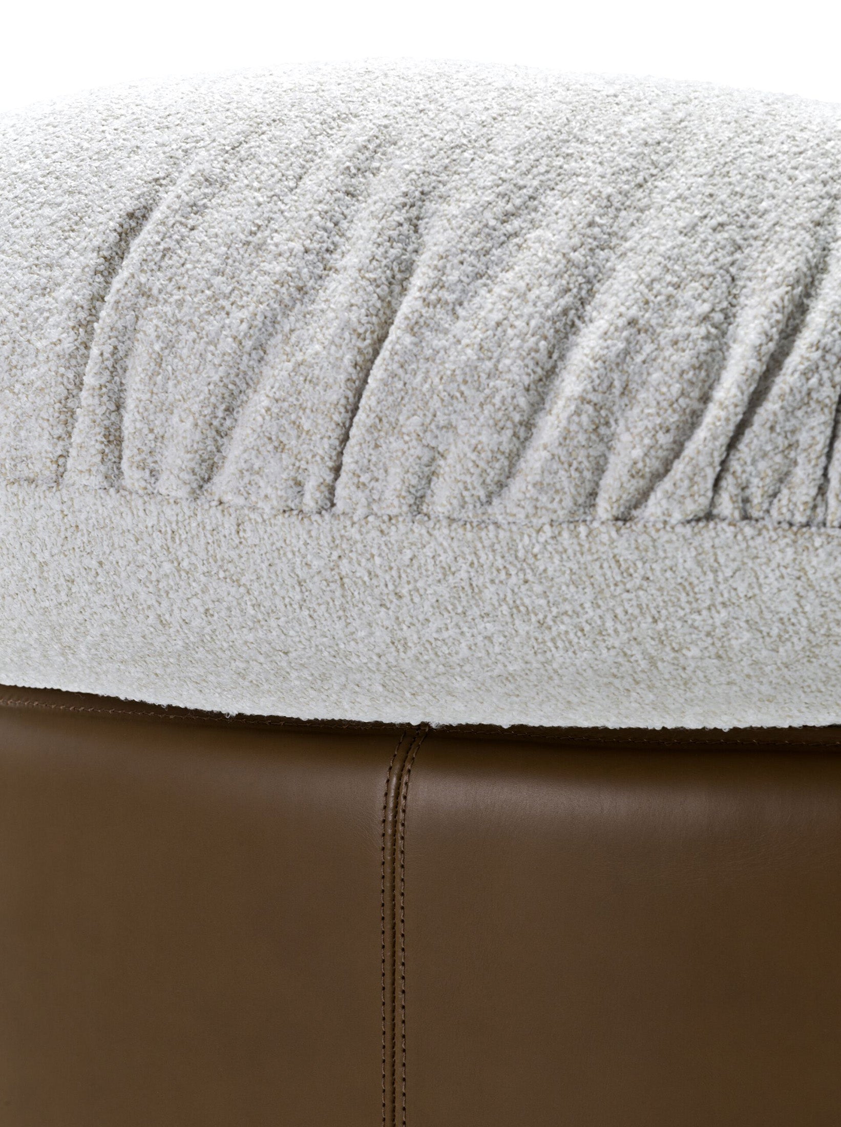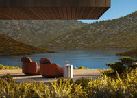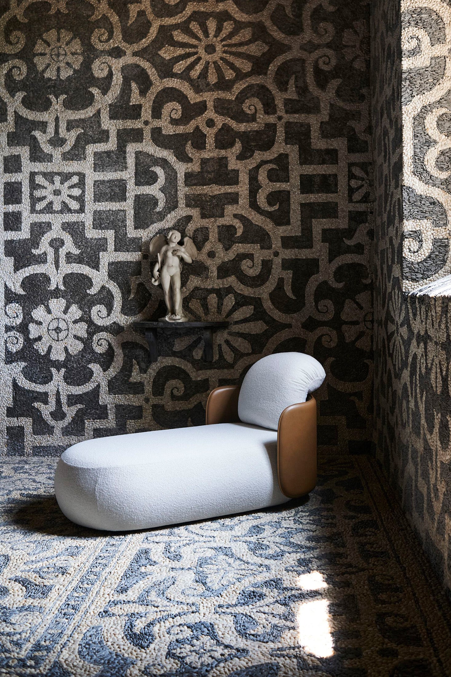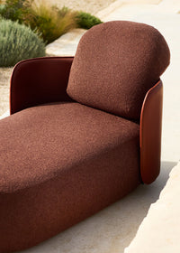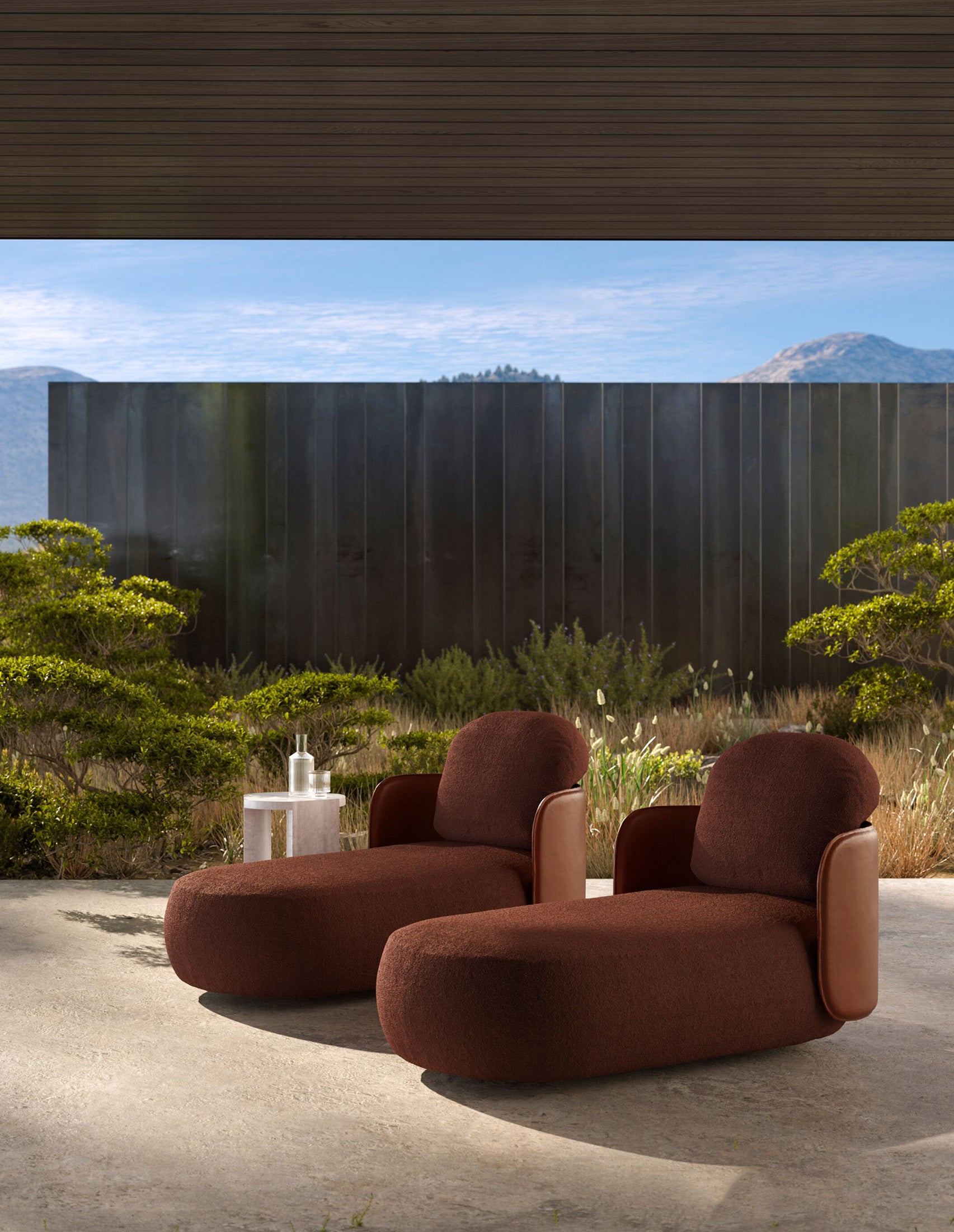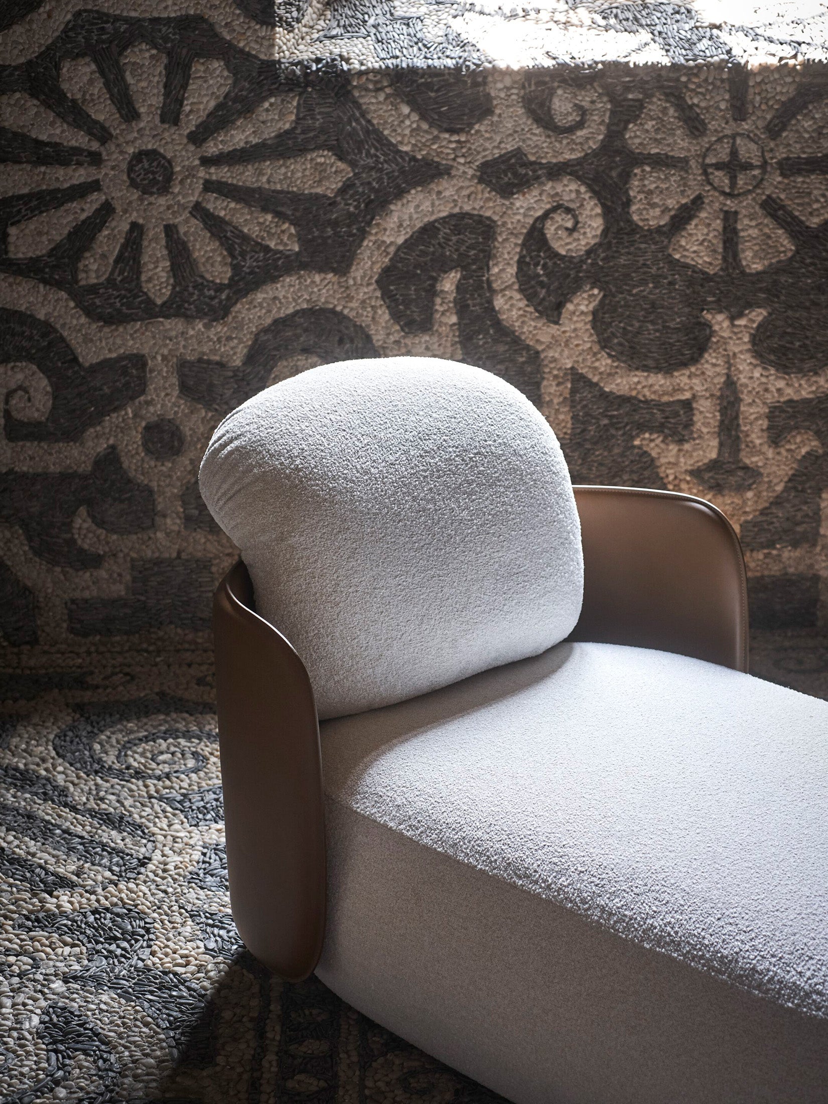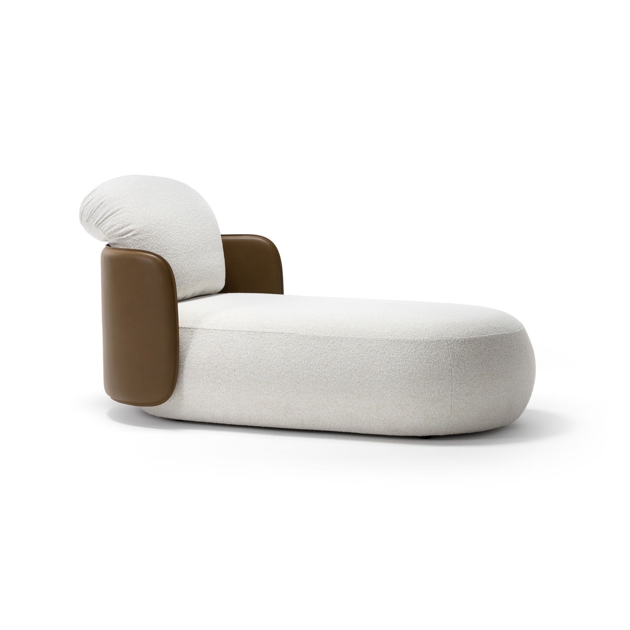 The Mochi Chaise Longue blends sculptural softness with refined outdoor luxury. Inspired by its namesake’s gentle form, it offers generous comfort within a compact profile suited to terraces or yacht decks. A leather‑framed backrest embraces plush cushions, while its weather‑resistant build ensures lasting elegance and performance in sun and moisture.