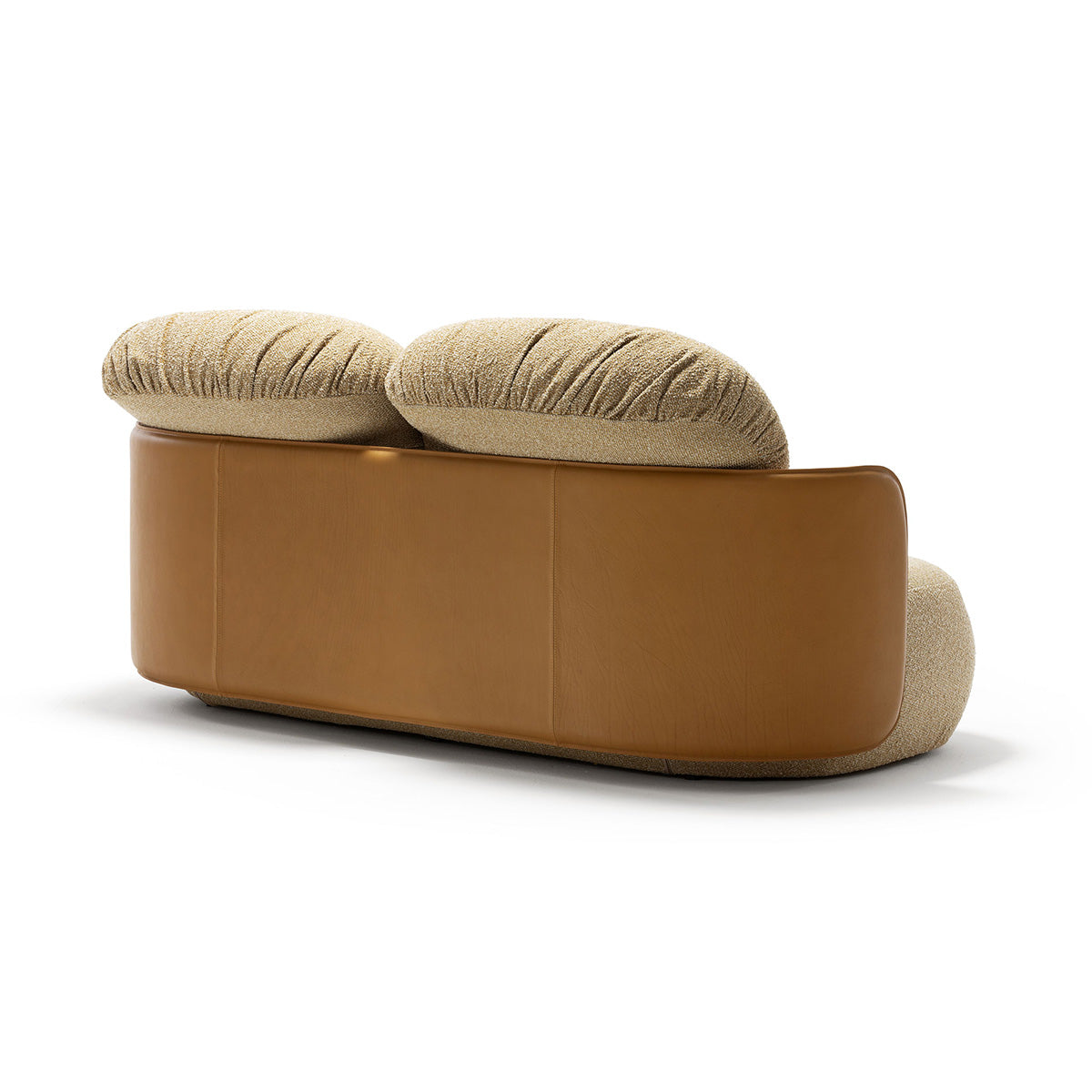 The Mochi Sofa by Exteta, a collaboration with design studio Studiopepe, transforms outdoor living with its distinctive sculptural form. Inspired by the delicate Japanese confection, this sofa features generously padded volumes that deliver exceptional comfort while maintaining an elegant aesthetic. The refined leather backrest provides sophisticated contrast, while weather-resistant materials ensure lasting durability in any climate. Perfect for terraces, gardens, and yacht decks, the Mochi Sofa seamlessly merges playful design with refined craftsmanship for discerning spaces that demand both style and substance.