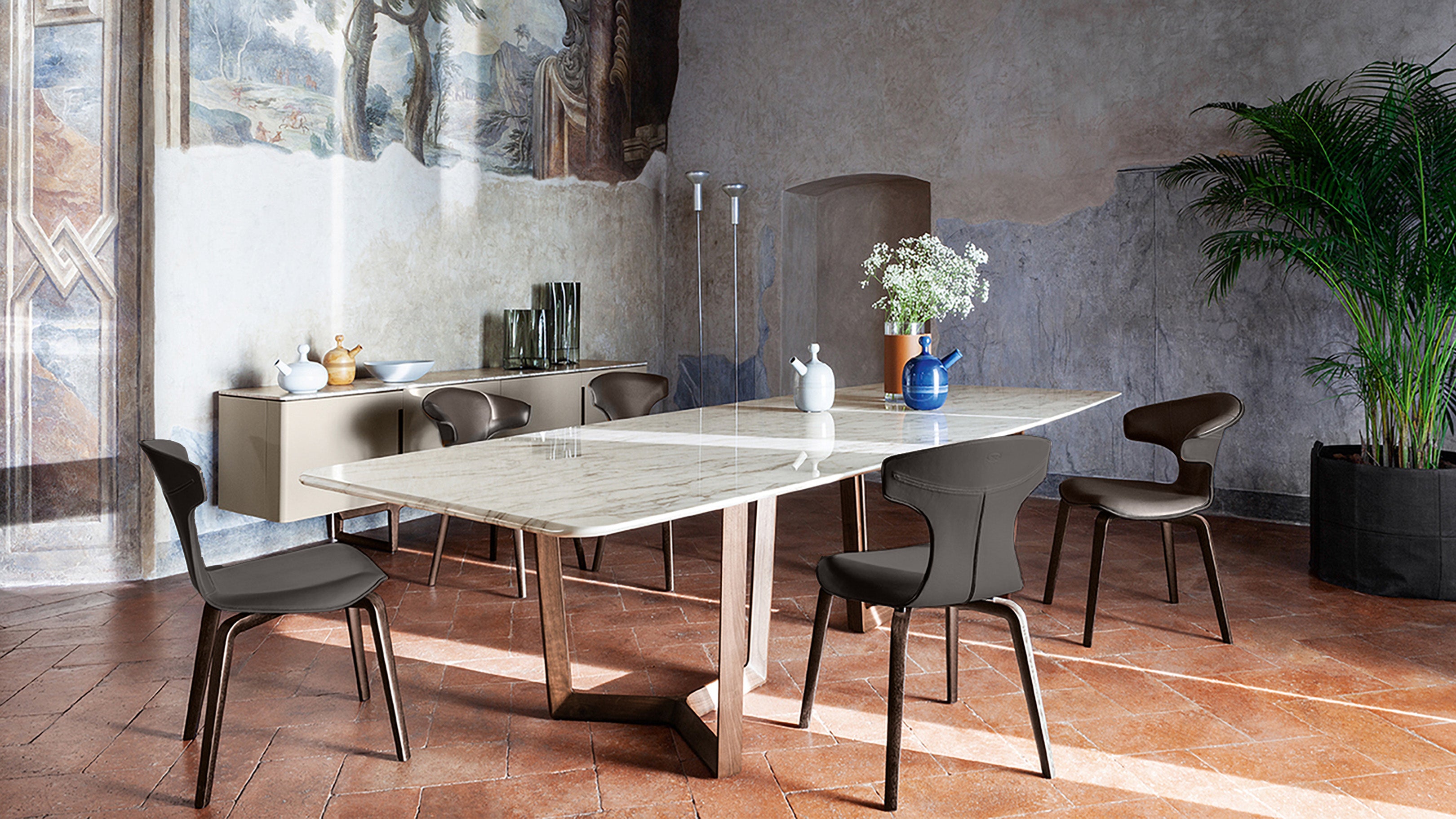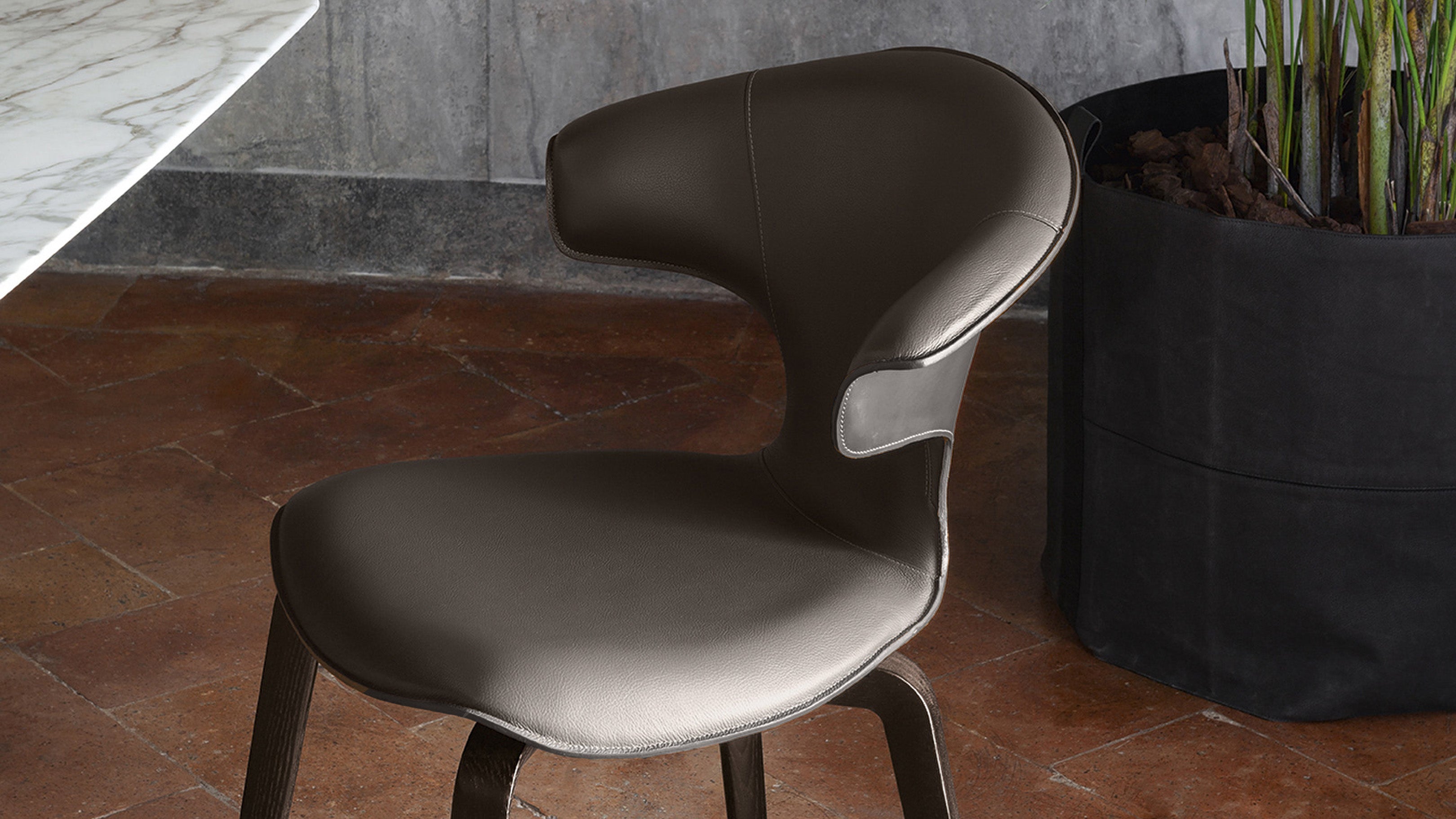 The Montera Small Armchair in Seppia Leather, designed by Roberto Lazzeroni for Poltrona Frau, is a refined blend of graceful curves and tailored craftsmanship. Its sculptural shell seamlessly unites the backrest and armrests, creating a flowing, ergonomic form that offers both style and comfort. Fully upholstered in tone-on-tone Seppia leather, the chair exudes quiet sophistication with a contemporary edge. Ideal for dining or accent seating, the Montera Small Armchair brings artisanal elegance to any space.