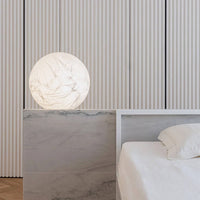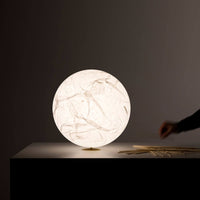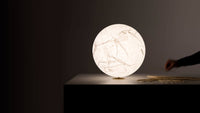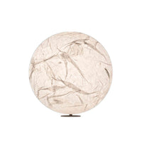 A dream brought to life. Davide Groppi uses the poetry of reduction and the magic of lighting to realize a dream he had: to bring the moon into the home. In his Moon T Table Lamp, the Italian designer captures the essence of the moon in the night sky, creating a poetic meditation on the glowing orb hovering above. The pure, spherical lamp uses Japanese rice paper as a means to create the textural appearance of the surface of the moon. This materiality provides shadows and highlights, giving richness and depth to the minimal light. The paper also acts as a diffuser, radiating a warm glow for a dramatic presence in the home. A showcase of artistic metaphors, the Moon T Table Lamp is a striking way to bring the surreal beauty of the moon into the home.