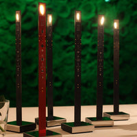 The flickering light is captured from video footage of a real candle and a smart random algorithm makes sure the sequence of movements never repeats to recreate the natural behavior faithfully. With its metal base containing rechargeable batteries, the light may be used without a cord allowing it to be placed anywhere in the home.