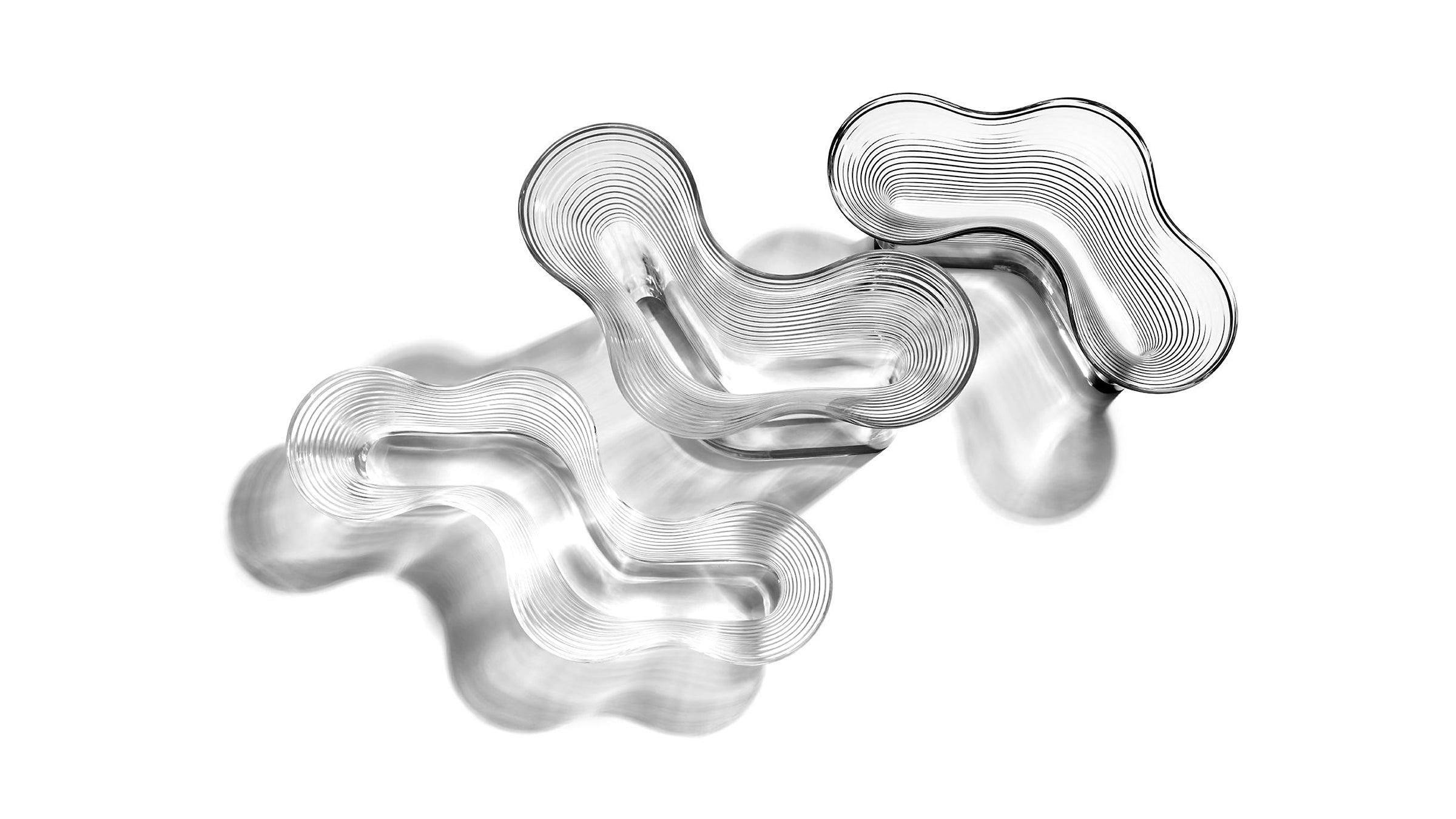 Inspired by cellular structures and the creative possibilities of acrylic as a contemporary material, the three vessels in the limited-edition range are designed to be versatile. From above, the three pieces appear to fit together organically, yet in profile the differences in height and scale emerge and they stand apart as a composition.