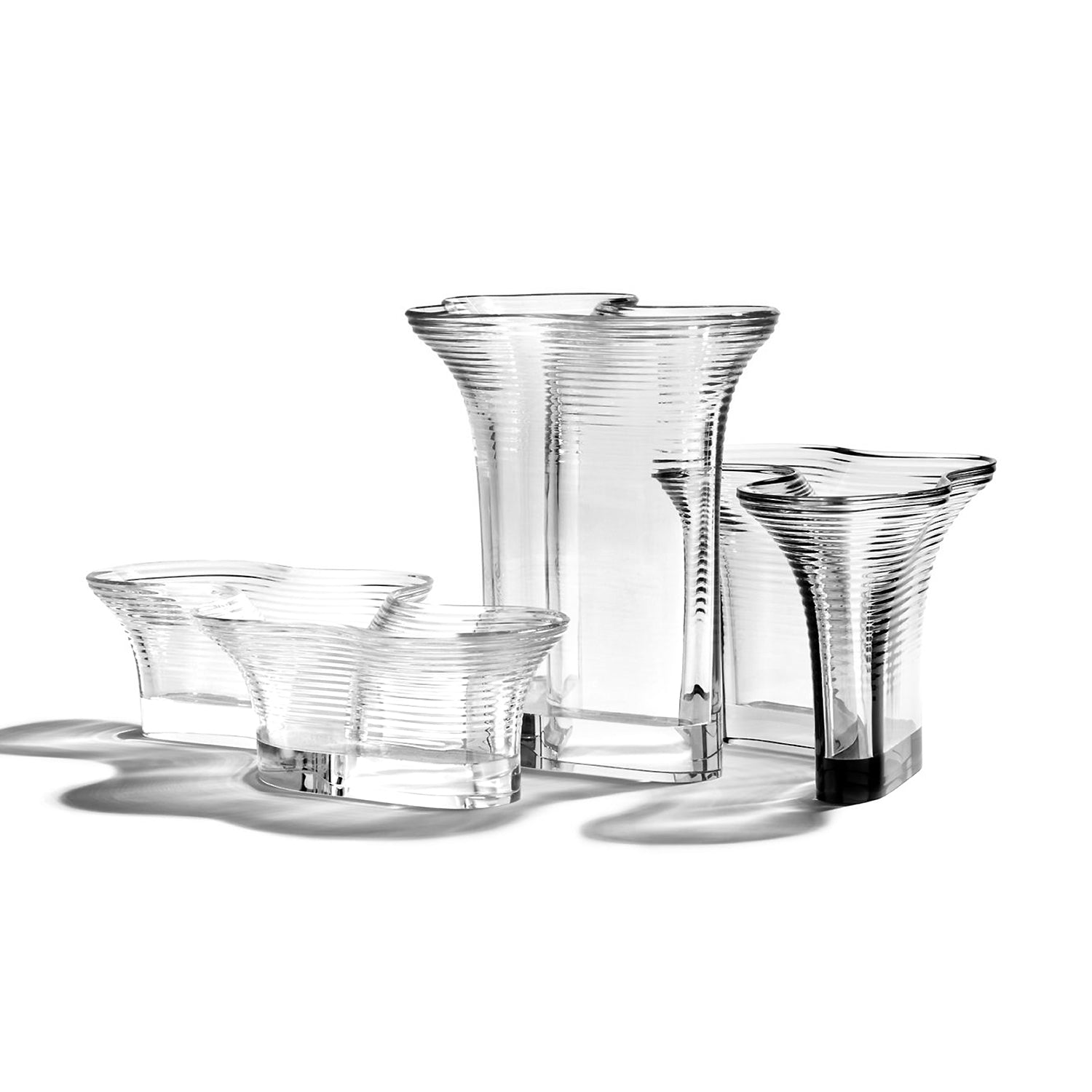 Inspired by cellular structures and the creative possibilities of acrylic as a contemporary material, the three vessels in the limited-edition range are designed to be versatile. From above, the three pieces appear to fit together organically, yet in profile the differences in height and scale emerge and they stand apart as a composition.