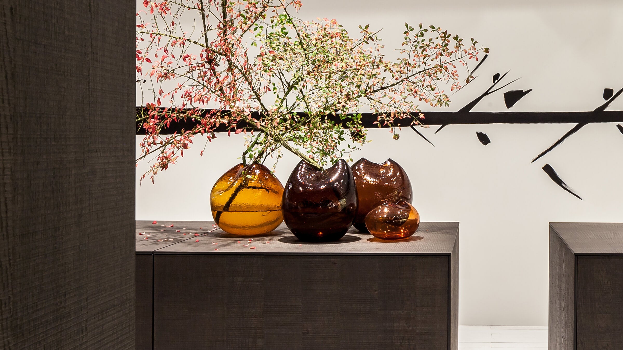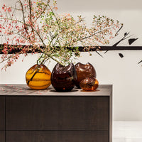 Each vase is handmade and features an obvious "touch" of the hand in its gentle form. The one of a kind glass vessels have been exhibited internationally and give a finishing touch to interior spaces.