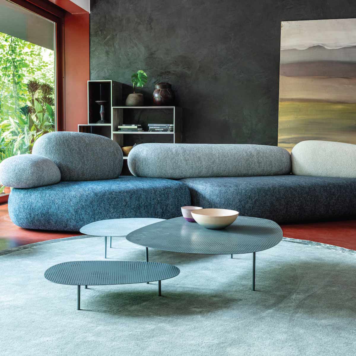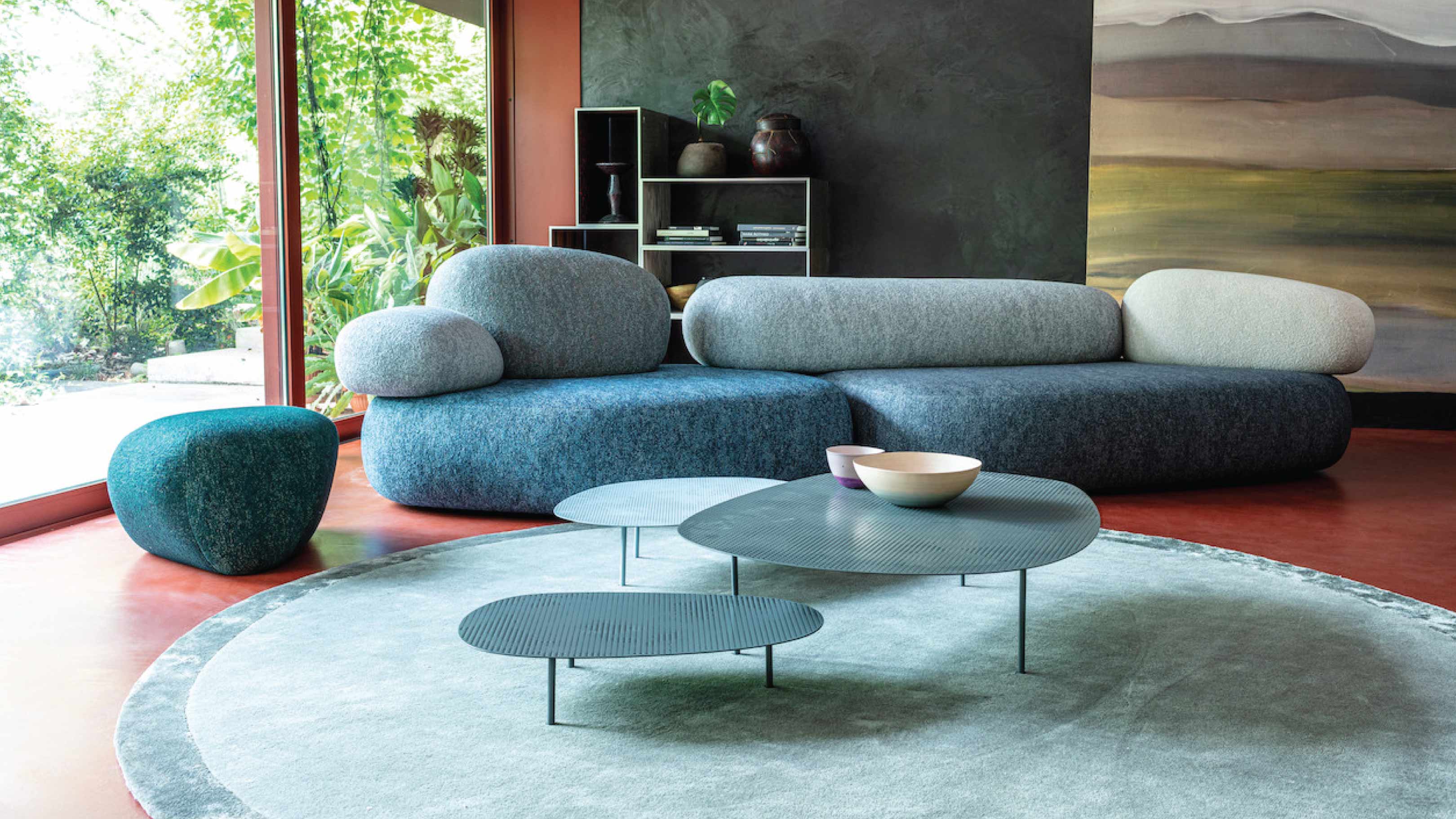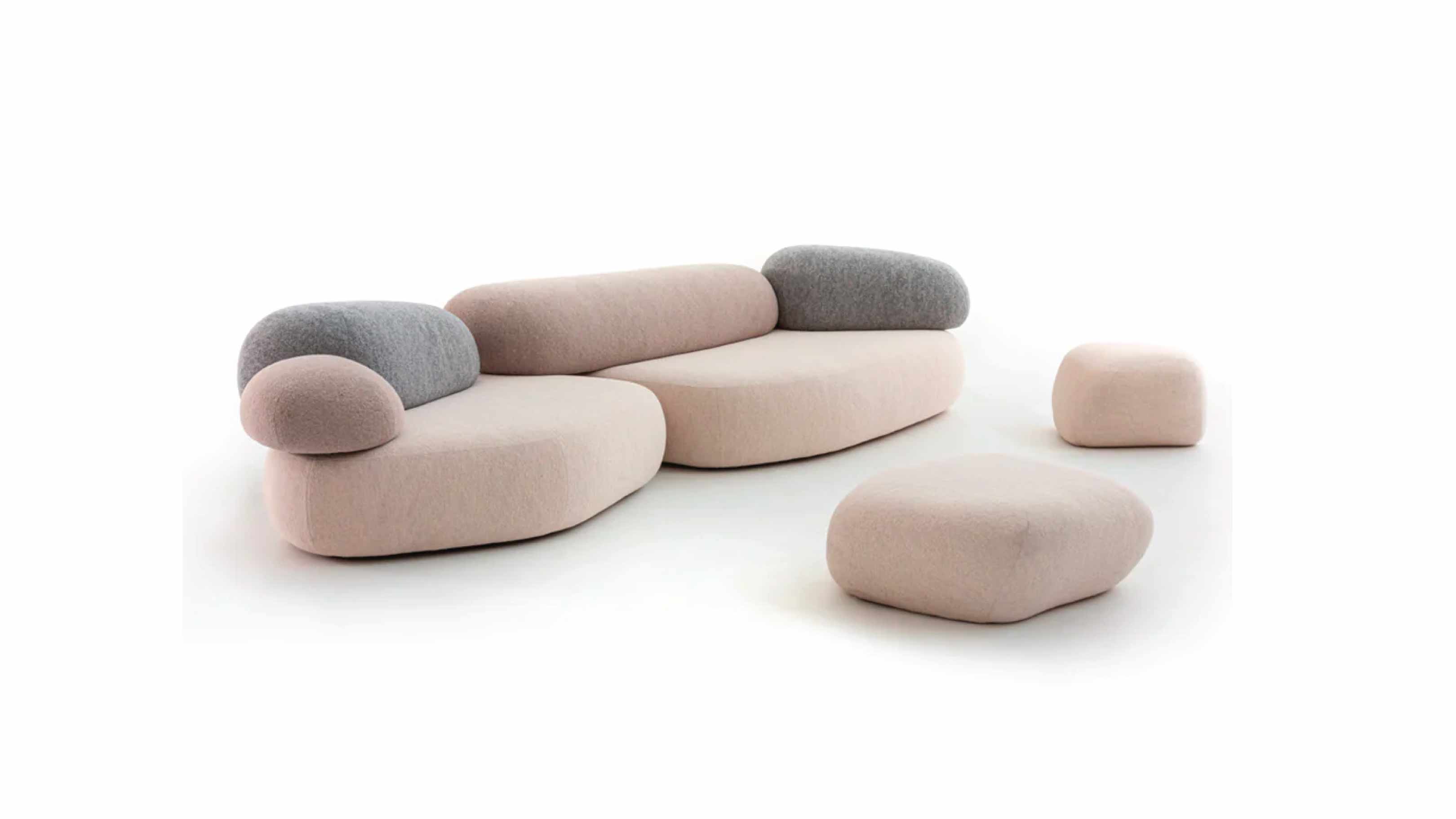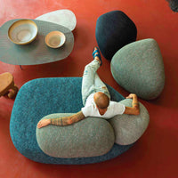 As we approach the surface of the stone, we are taken aback by its unexpected softness. This is the essence of Pebble Rubble, a creation of the Swedish design duo Sofia Lagerkvist and Anna Lindgren of Front Design for Moroso. It is a sensory experience that lures us in, captivating our attention and altering our perception of time. It transports us from the frenetic pace of our daily routine and into the slow and boundless rhythm of nature.